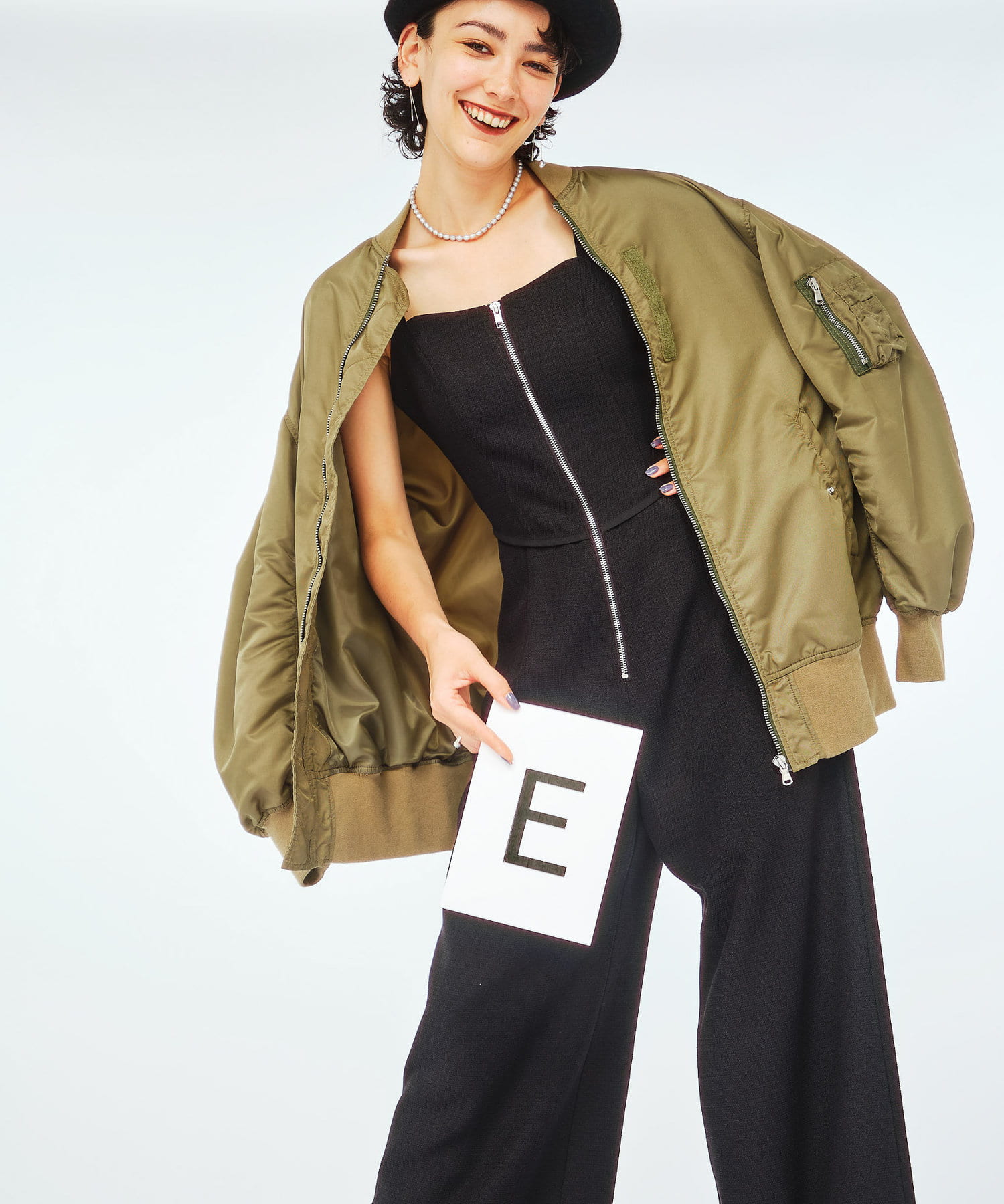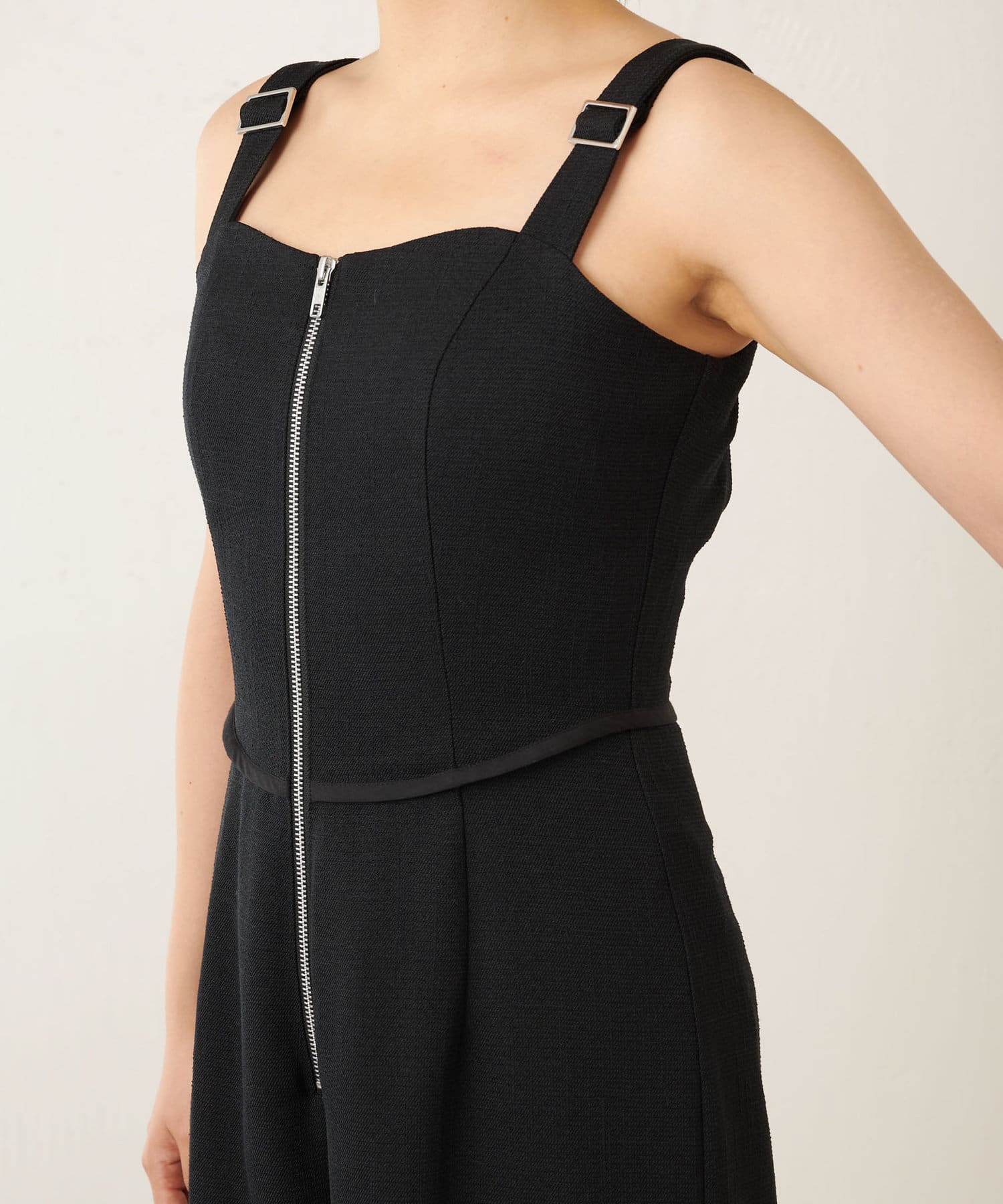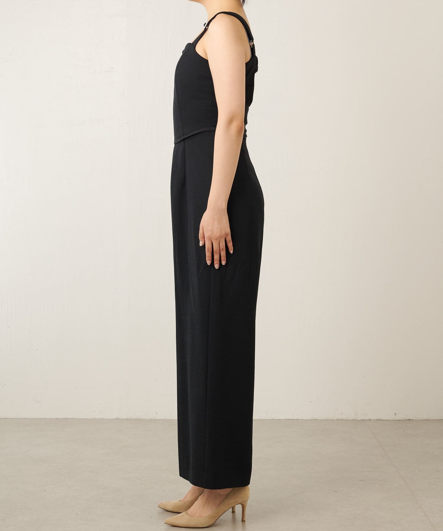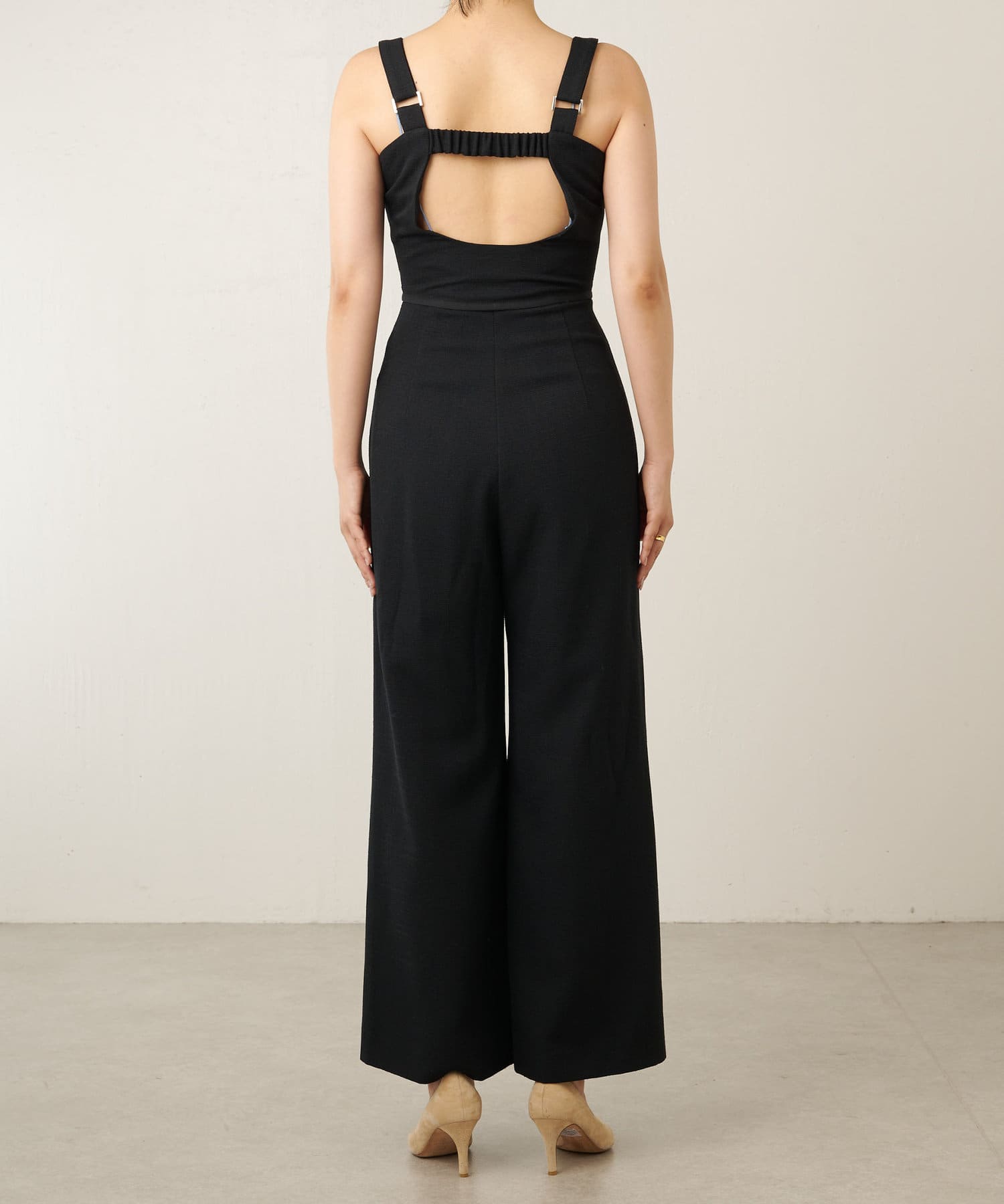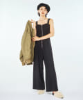 デザイン性が際立つサロペット。上半身はビスチェのようなデザインで女性らしいタイトめのシルエット。パンツ部分は程よい太さなので、メリハリを楽しめます。背中の抜け感も素敵ですよ。