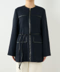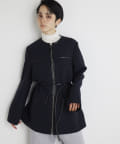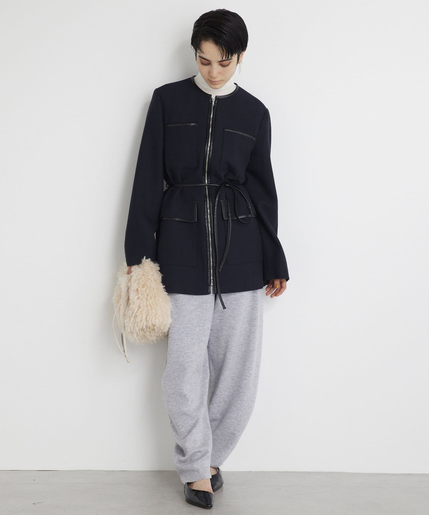フロントにはジップアップを施し、抜け感をプラス。開閉によってシルエットに変化を加えられます。ブルーデニムなどカジュアルなアイテムと合わせたスタイリングもおすすめ。程よくゆとりがあるのでインナーも入れやすいです。ウエストマークでガラリと印象が変わります。