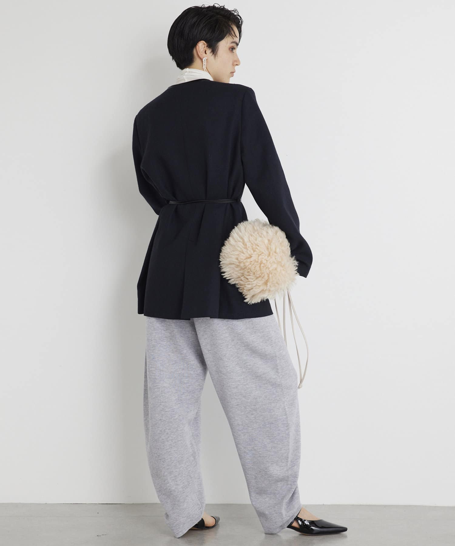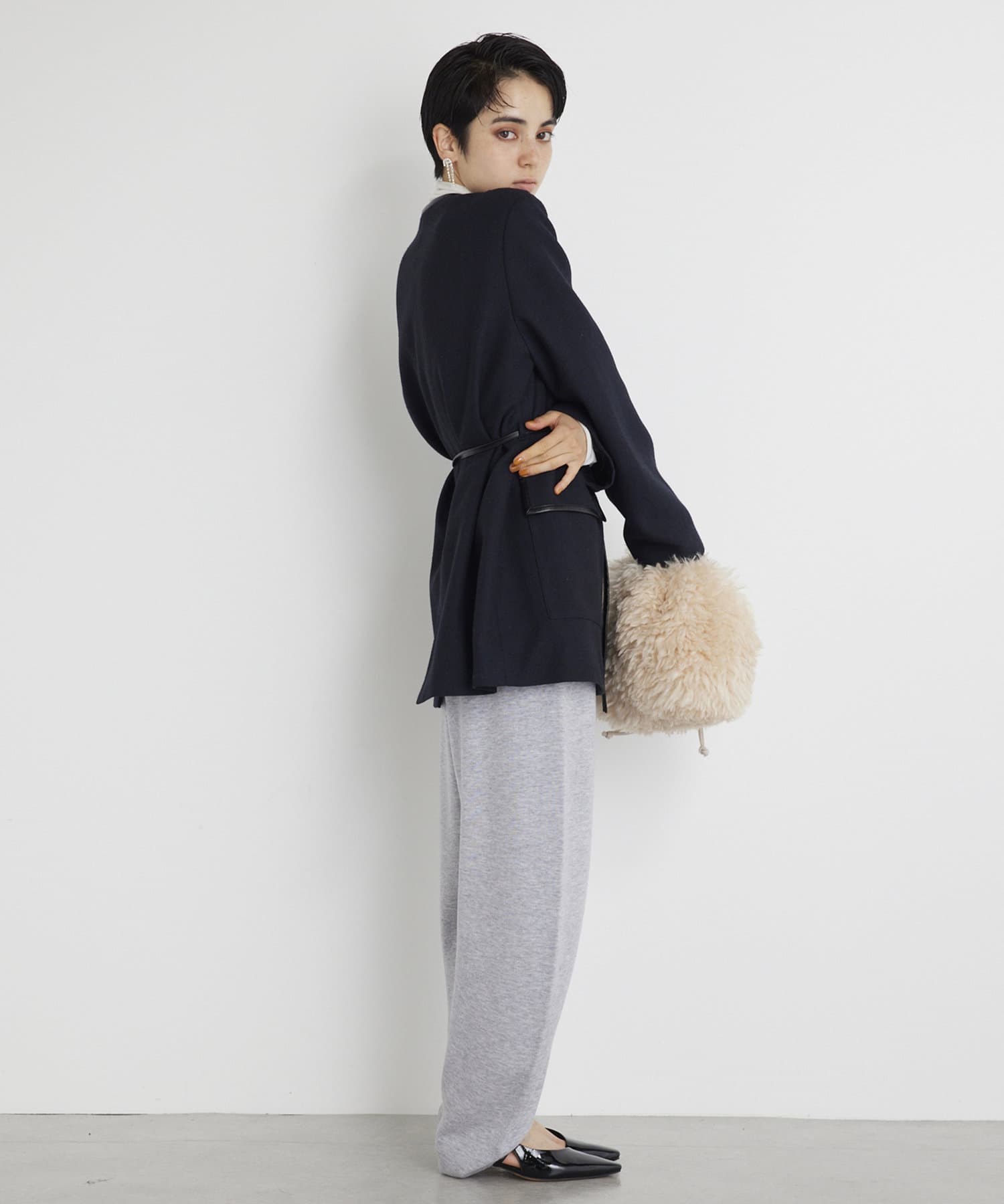 ■ノーカラーデザインでタートルネックや襟付きシャツなども合わせやすく、着回しの効く一着。