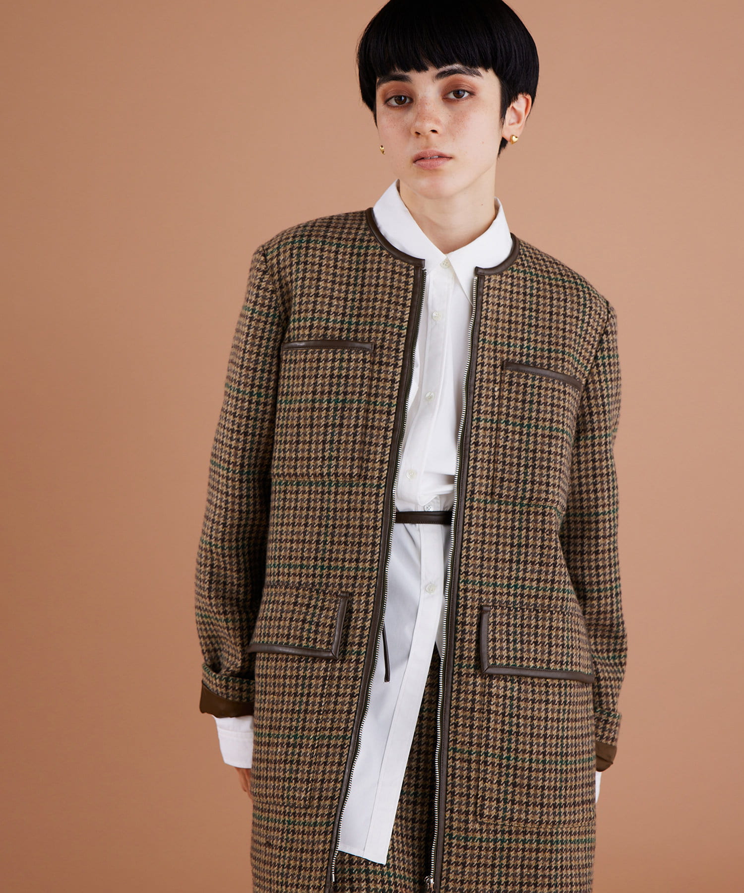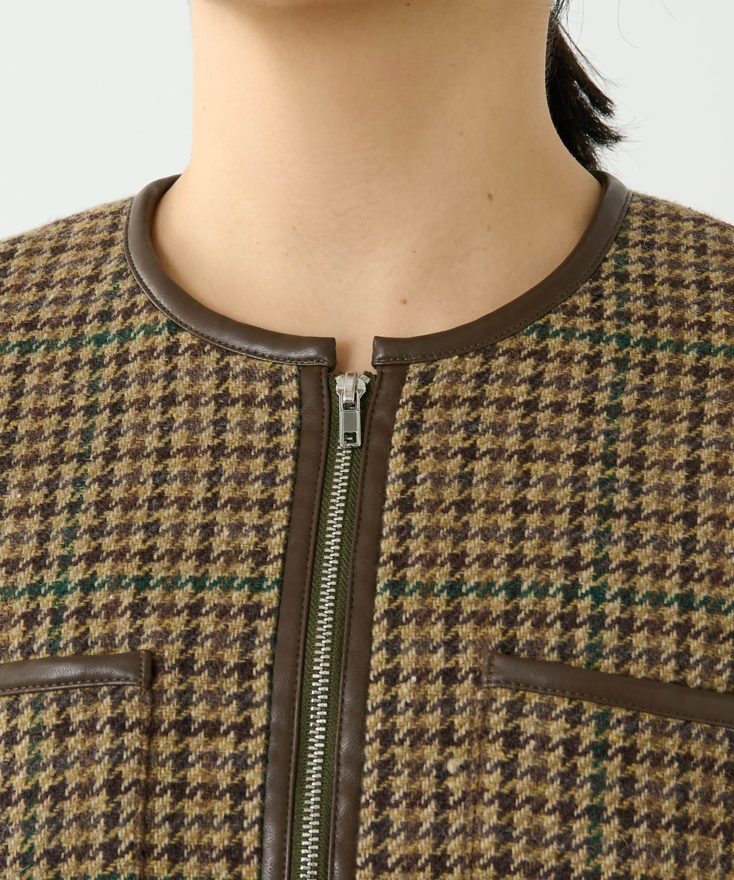 ■ウォーム感のあるウール混のツイード素材を使用したジャケット。