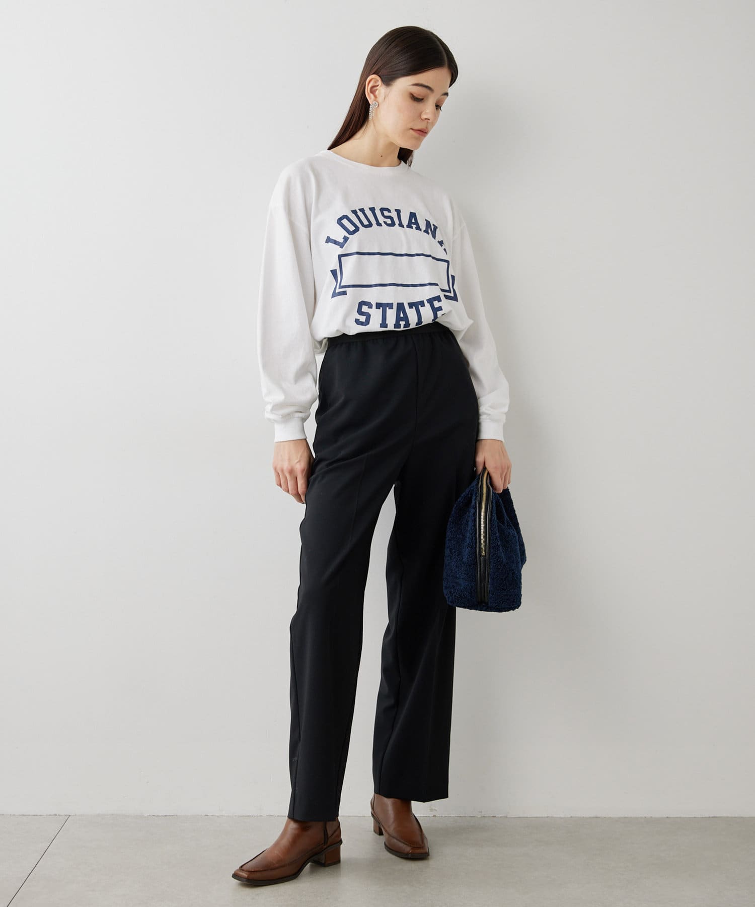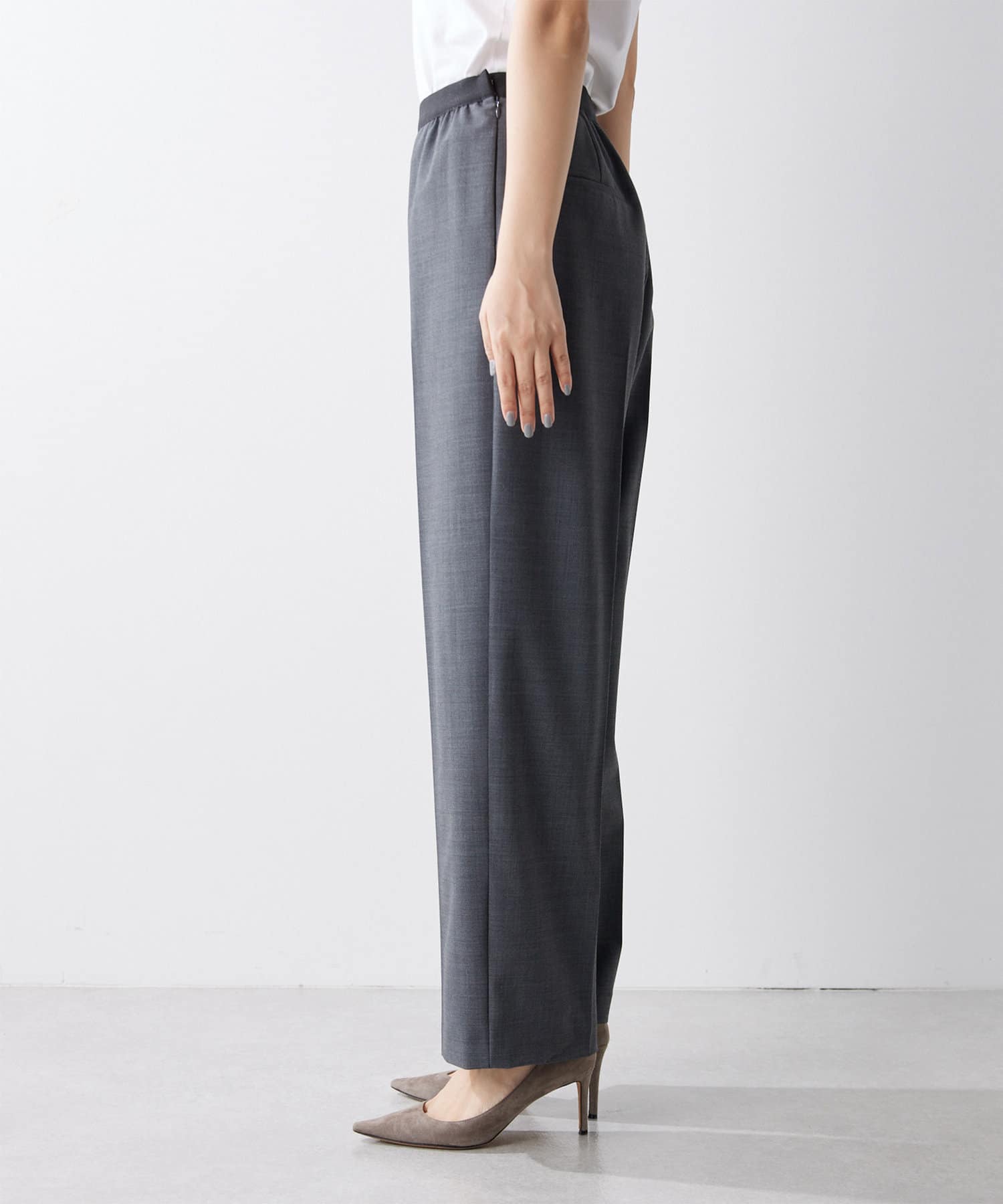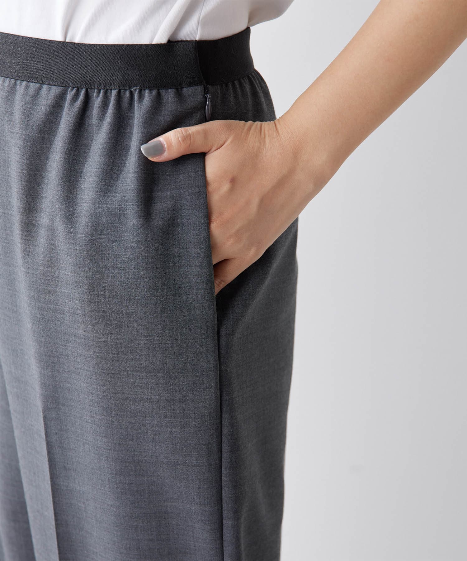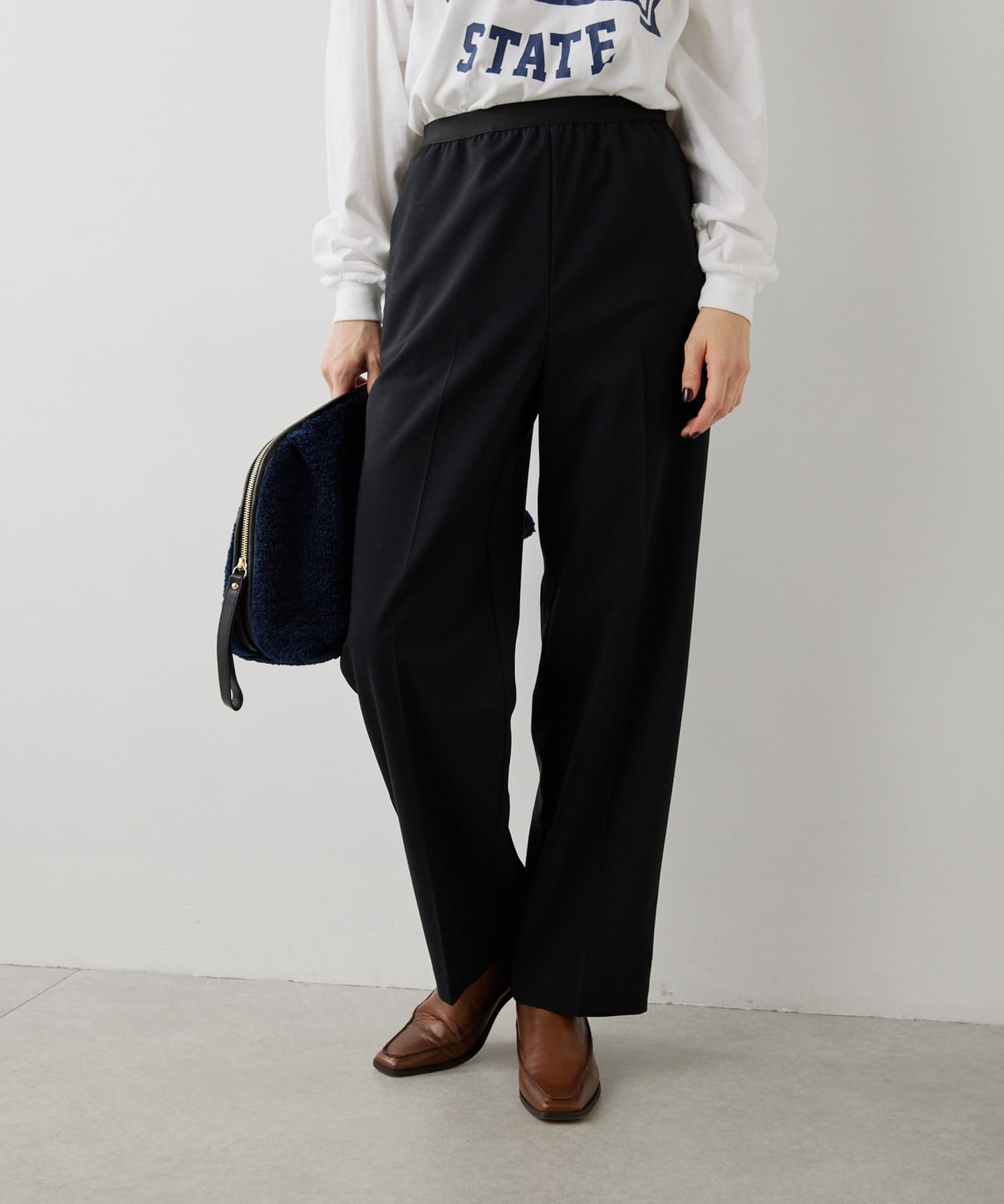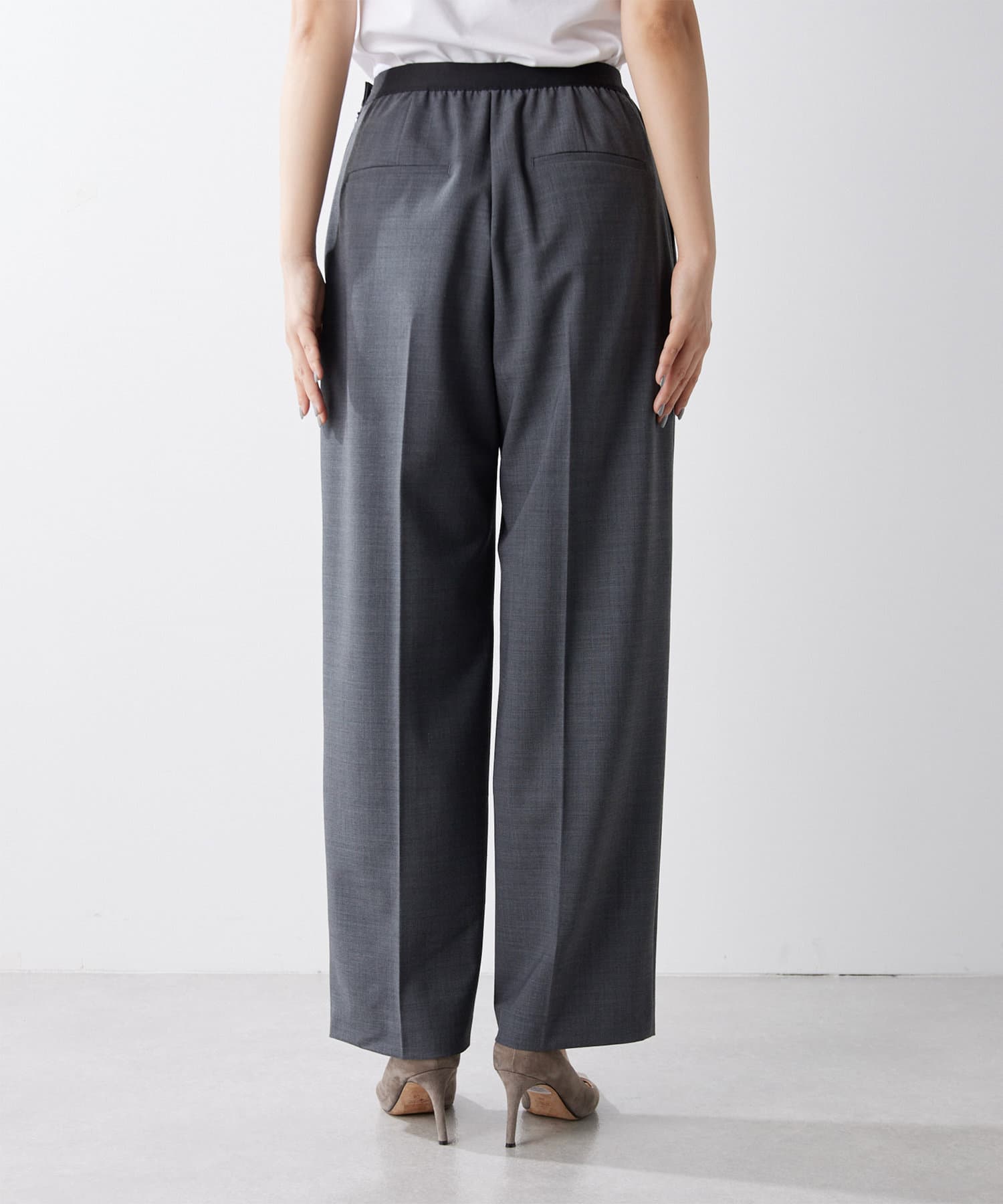 ■ゴムにあえてきれいなウール混生地を合わせ、程よくワイドに仕上げたシルエット。