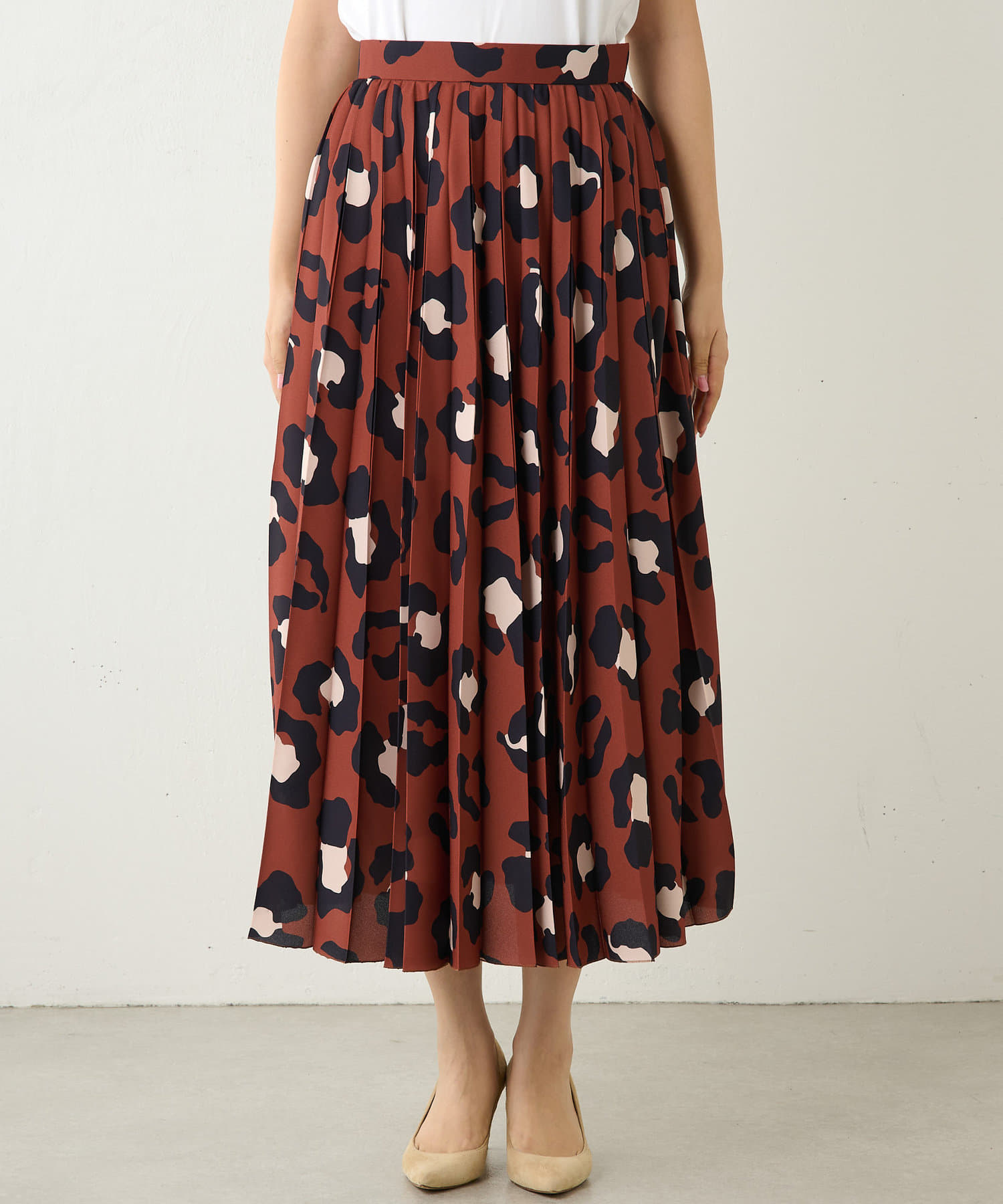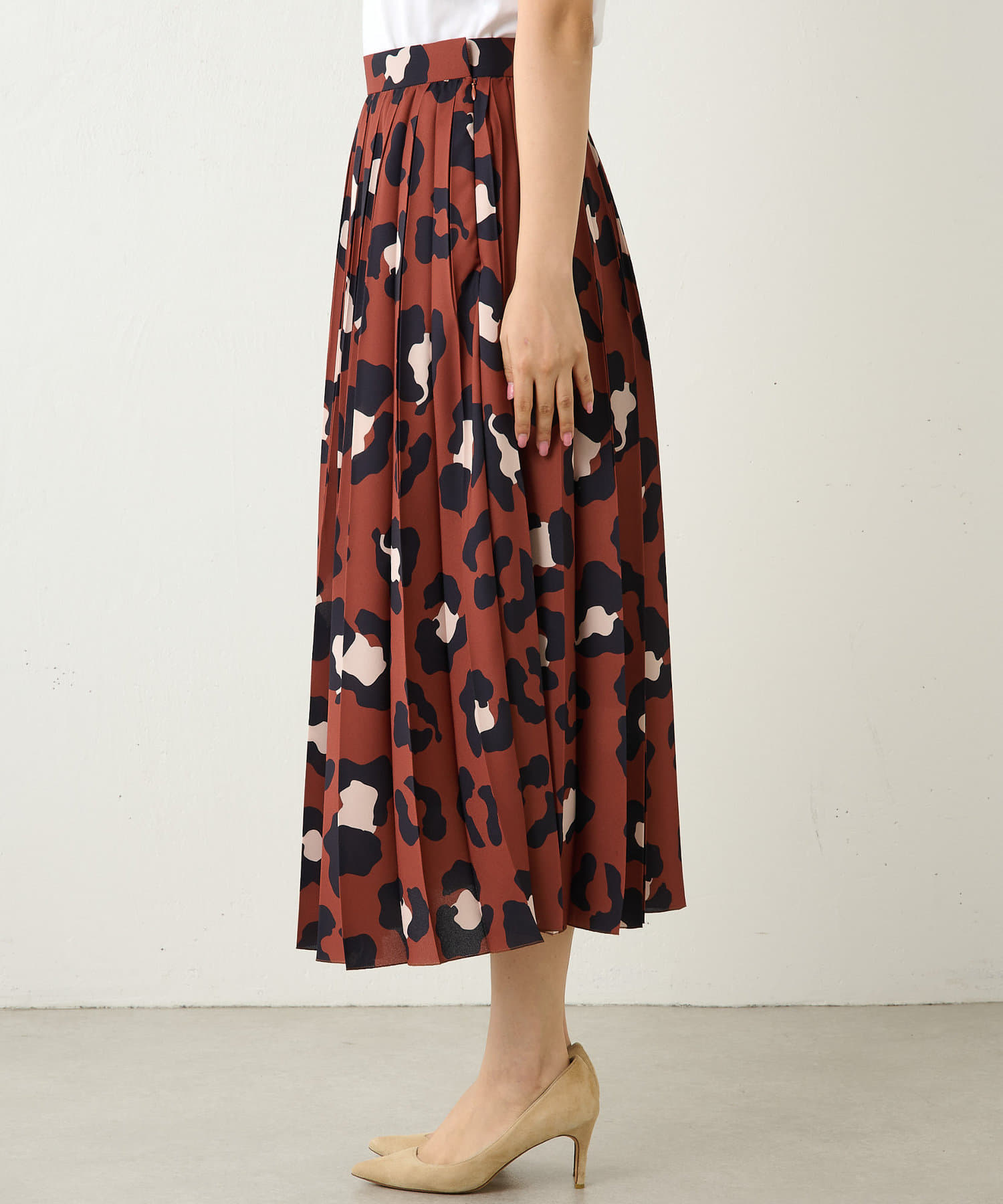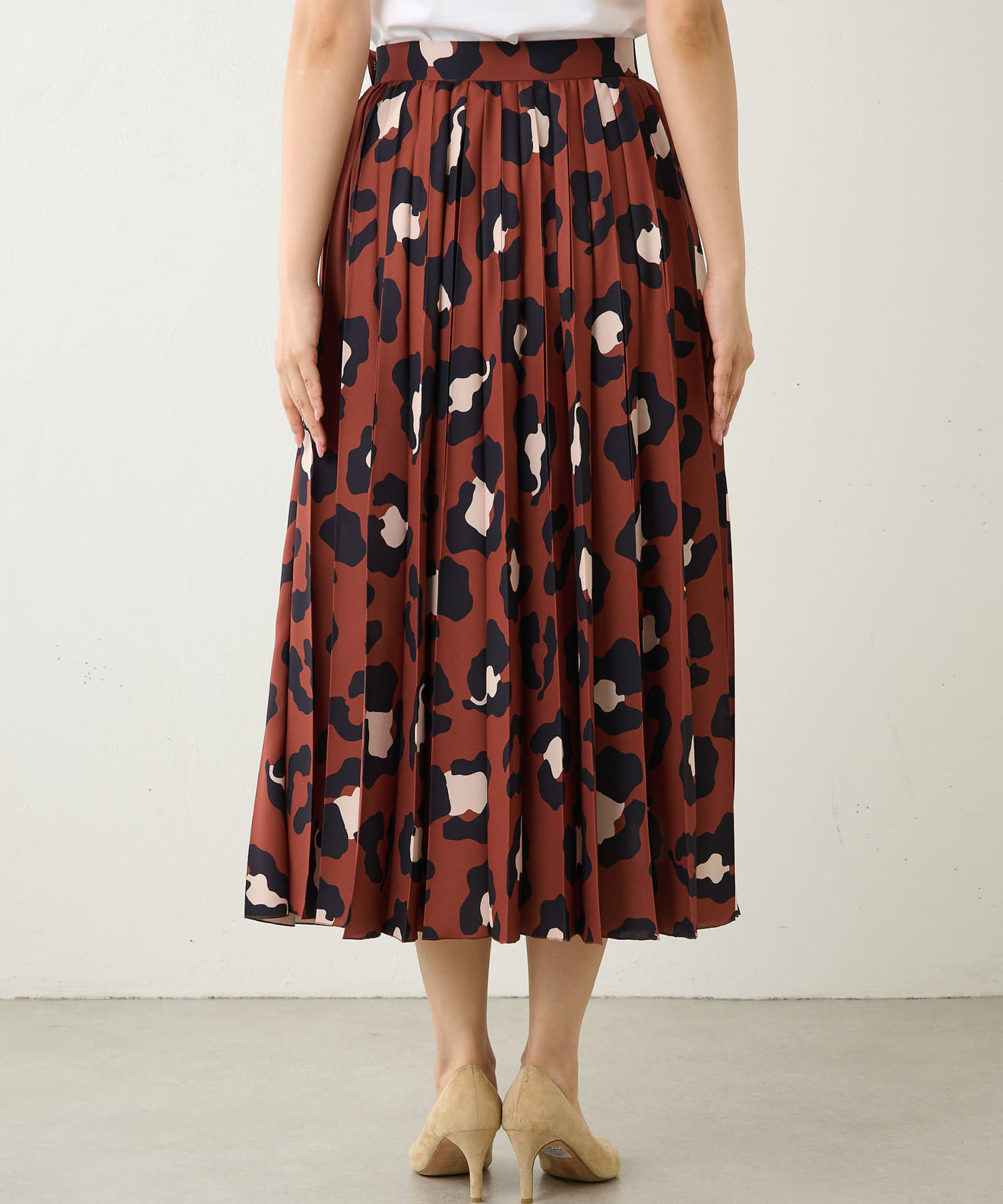 ■大柄のレオパード柄が目を惹くプリーツスカート。