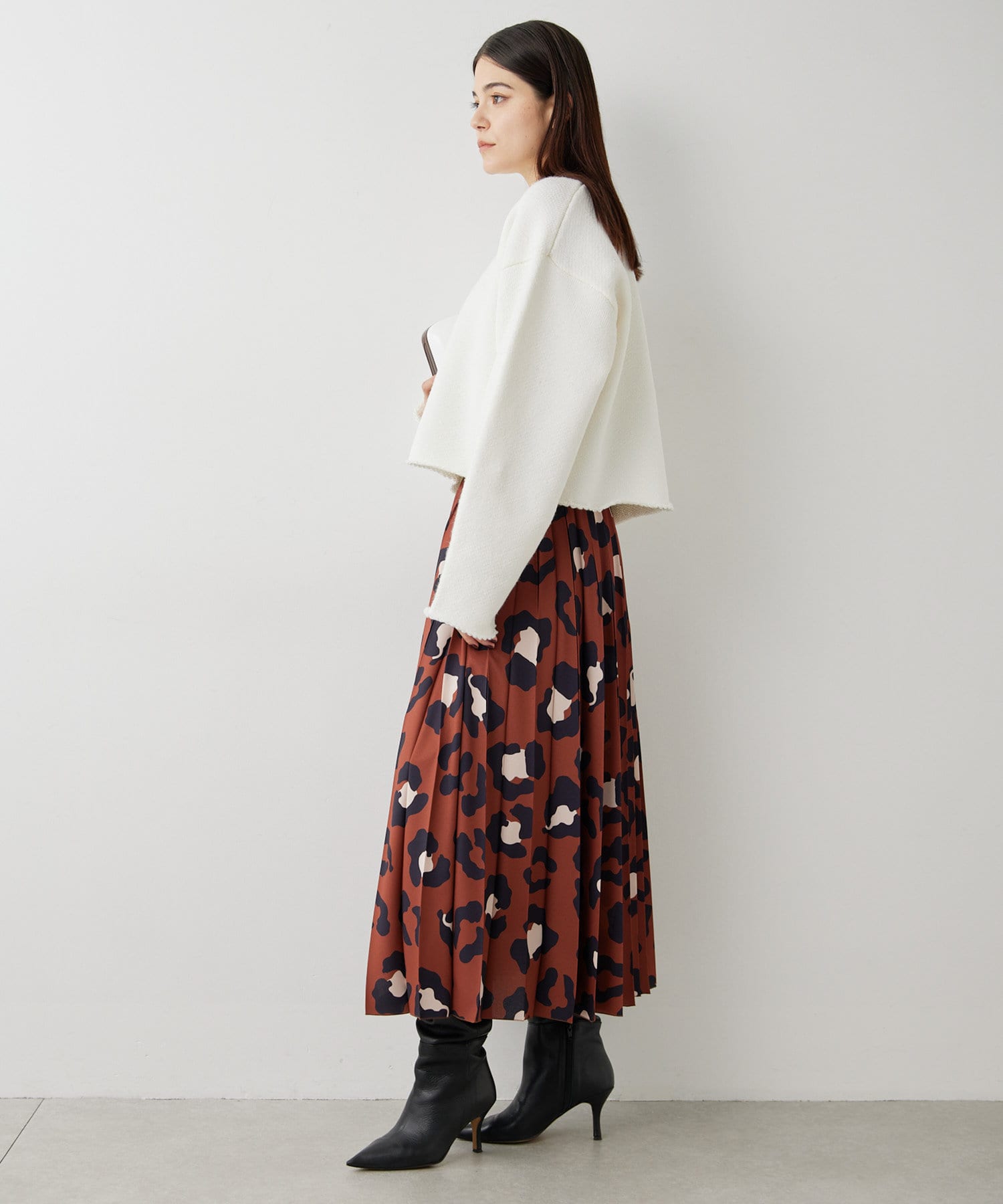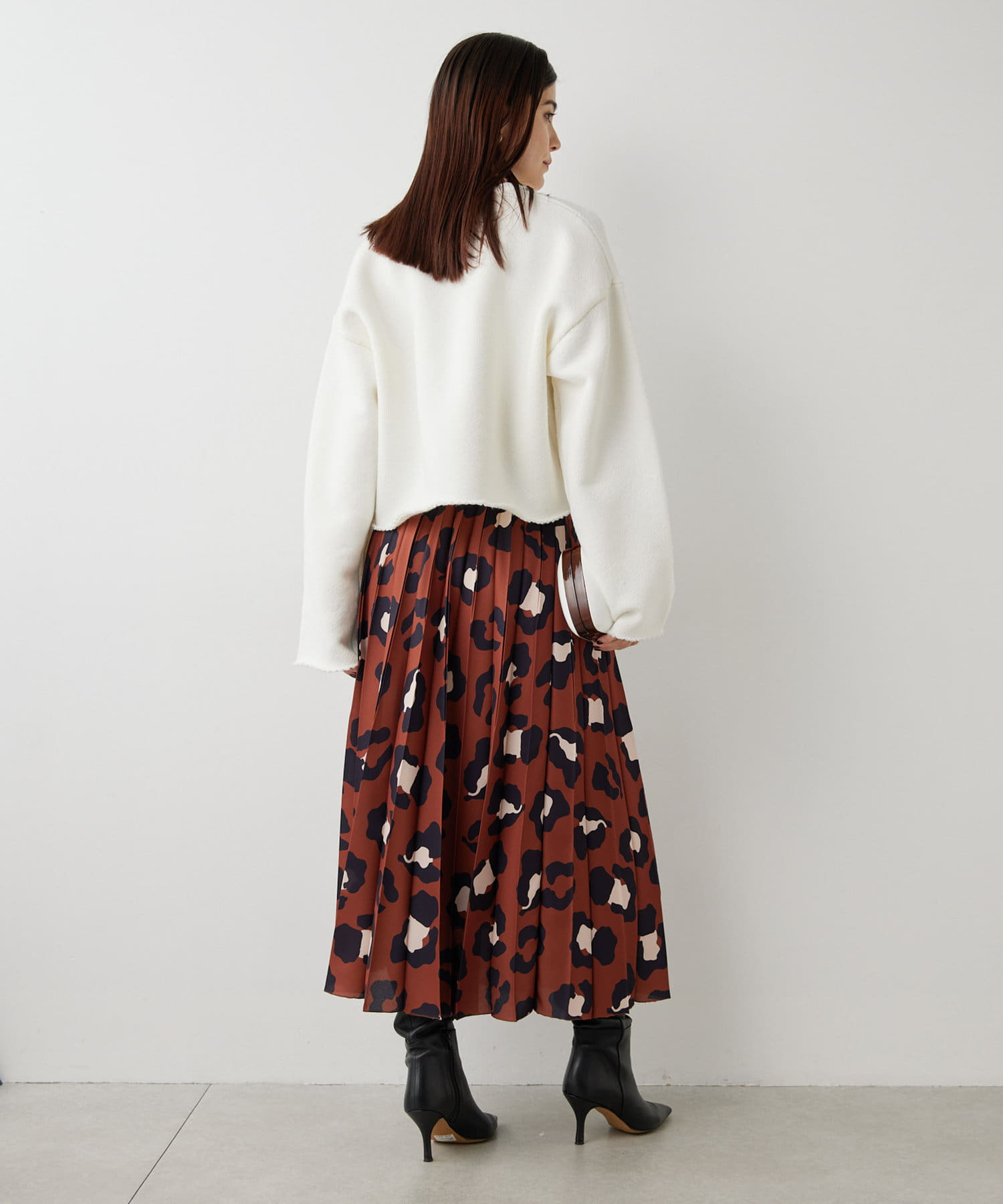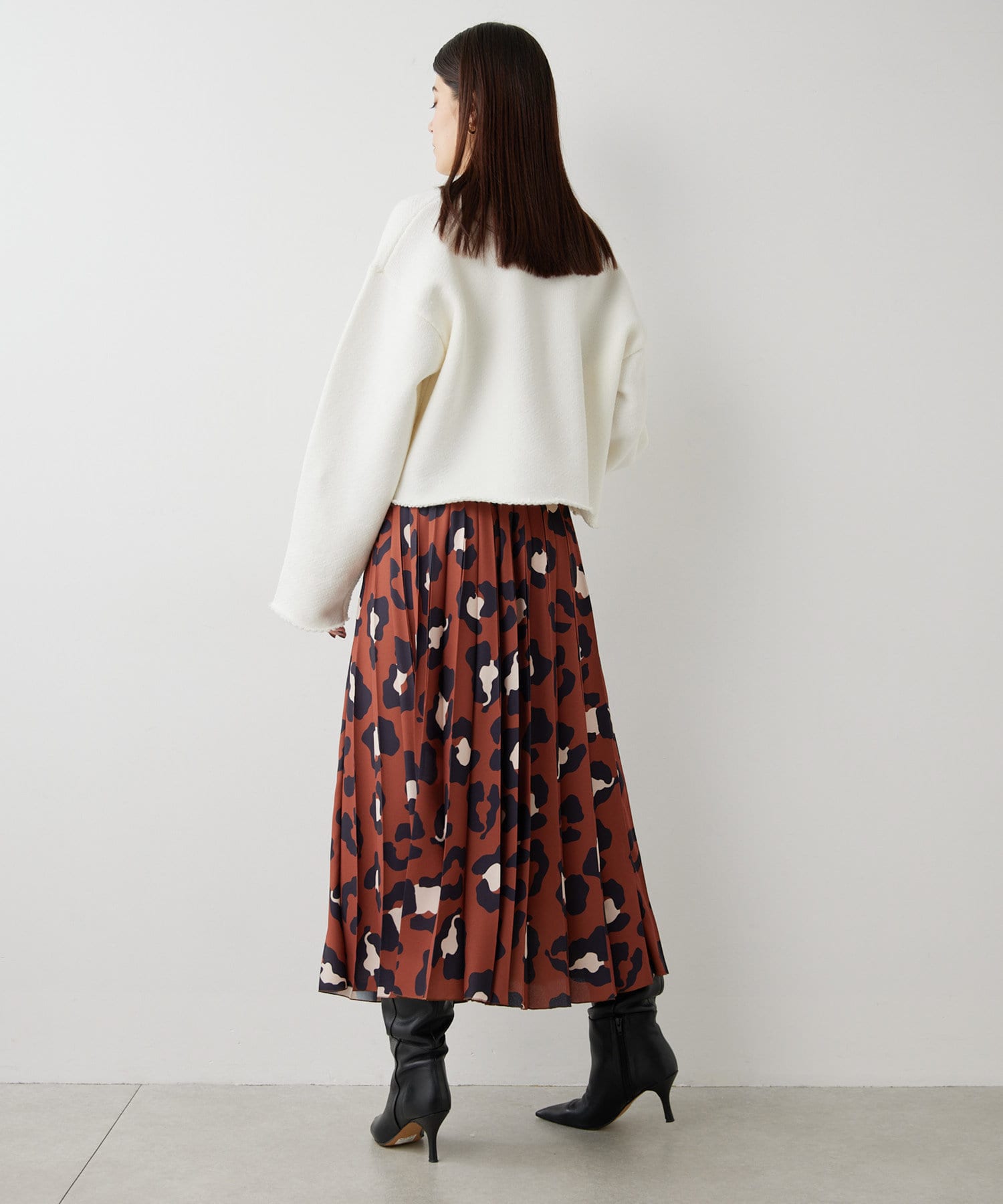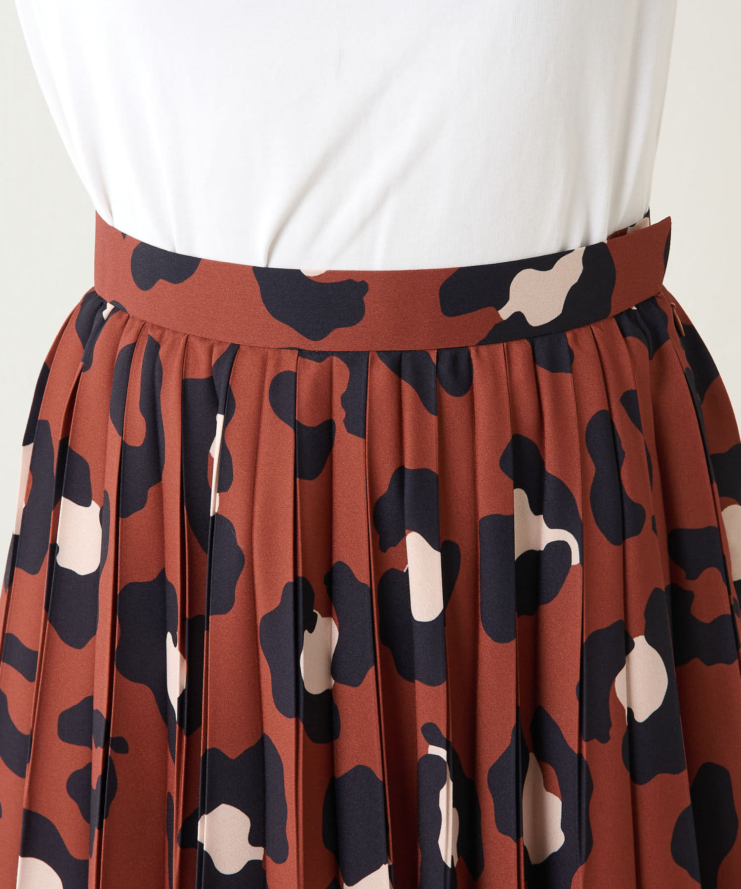 ■大柄のレオパード柄が目を惹くプリーツスカート。