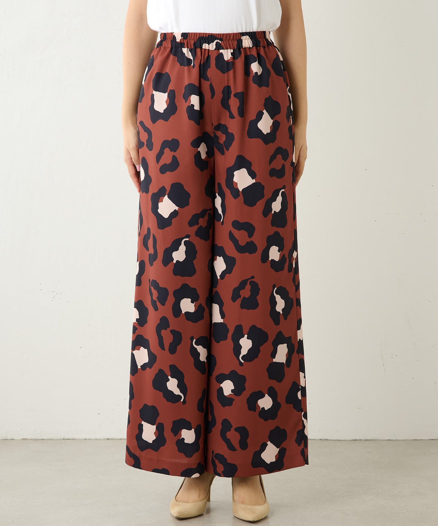 ■大柄のレオパード柄が目を惹くワイドパンツ。