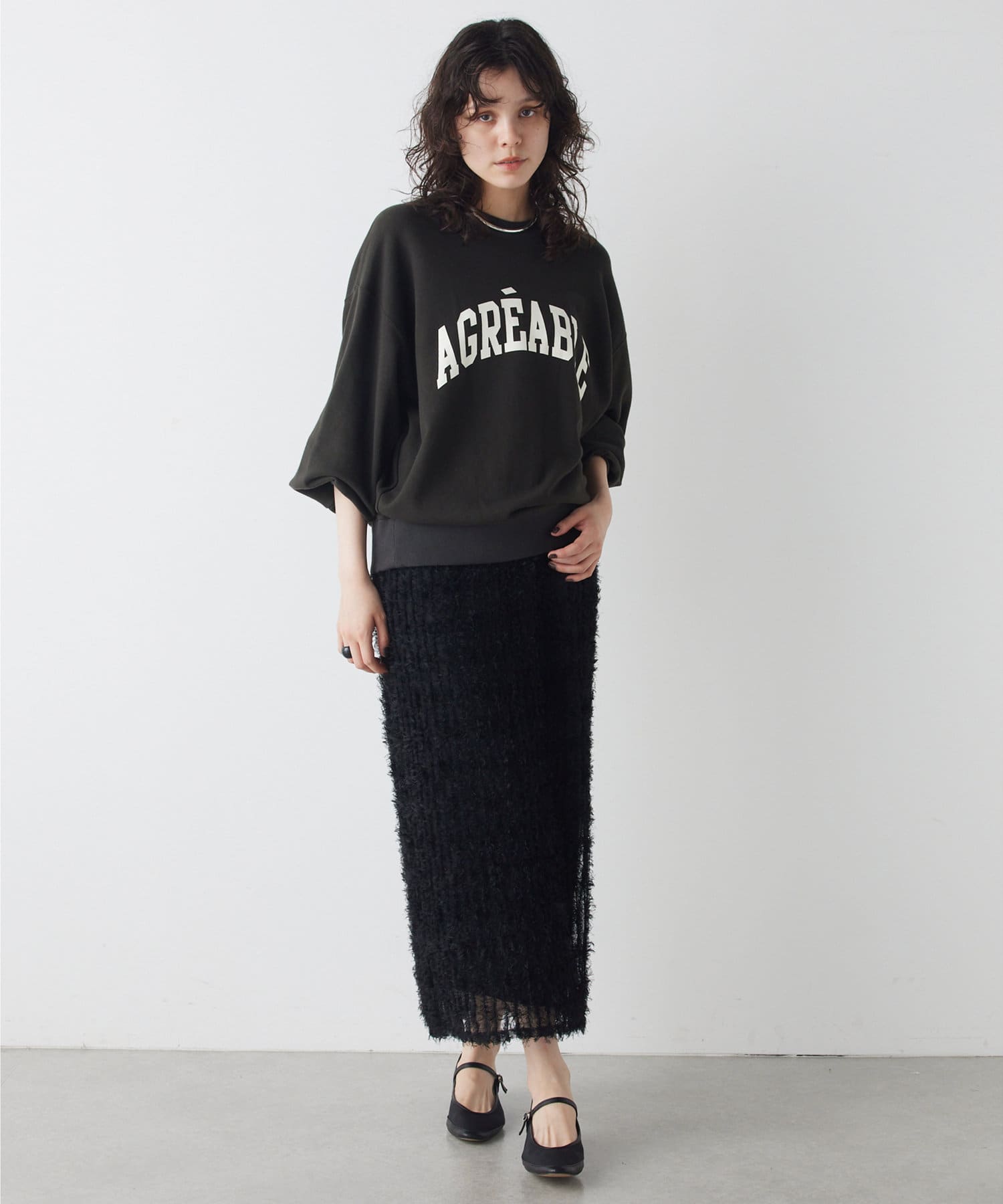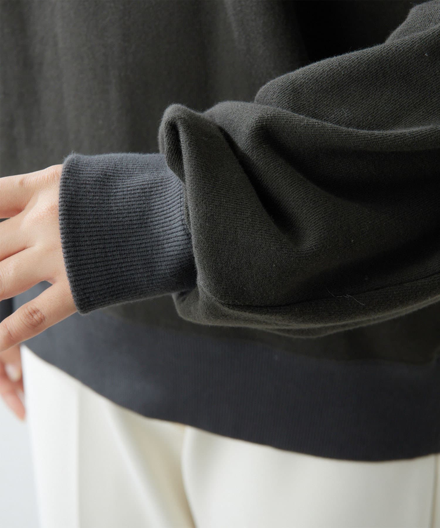 ■ゆったりとしたオーバーサイズとベーシックカラーで抜け感があり、大人が合わせやすい一枚。