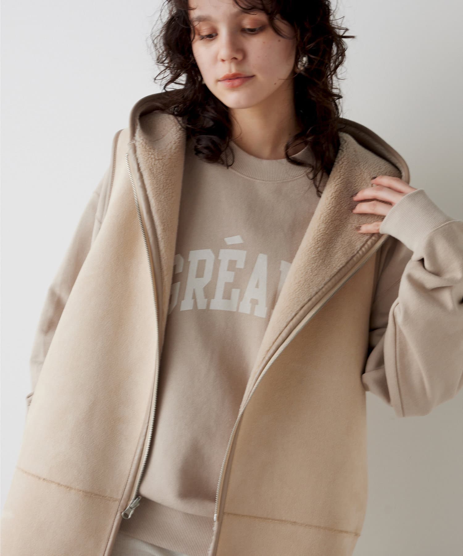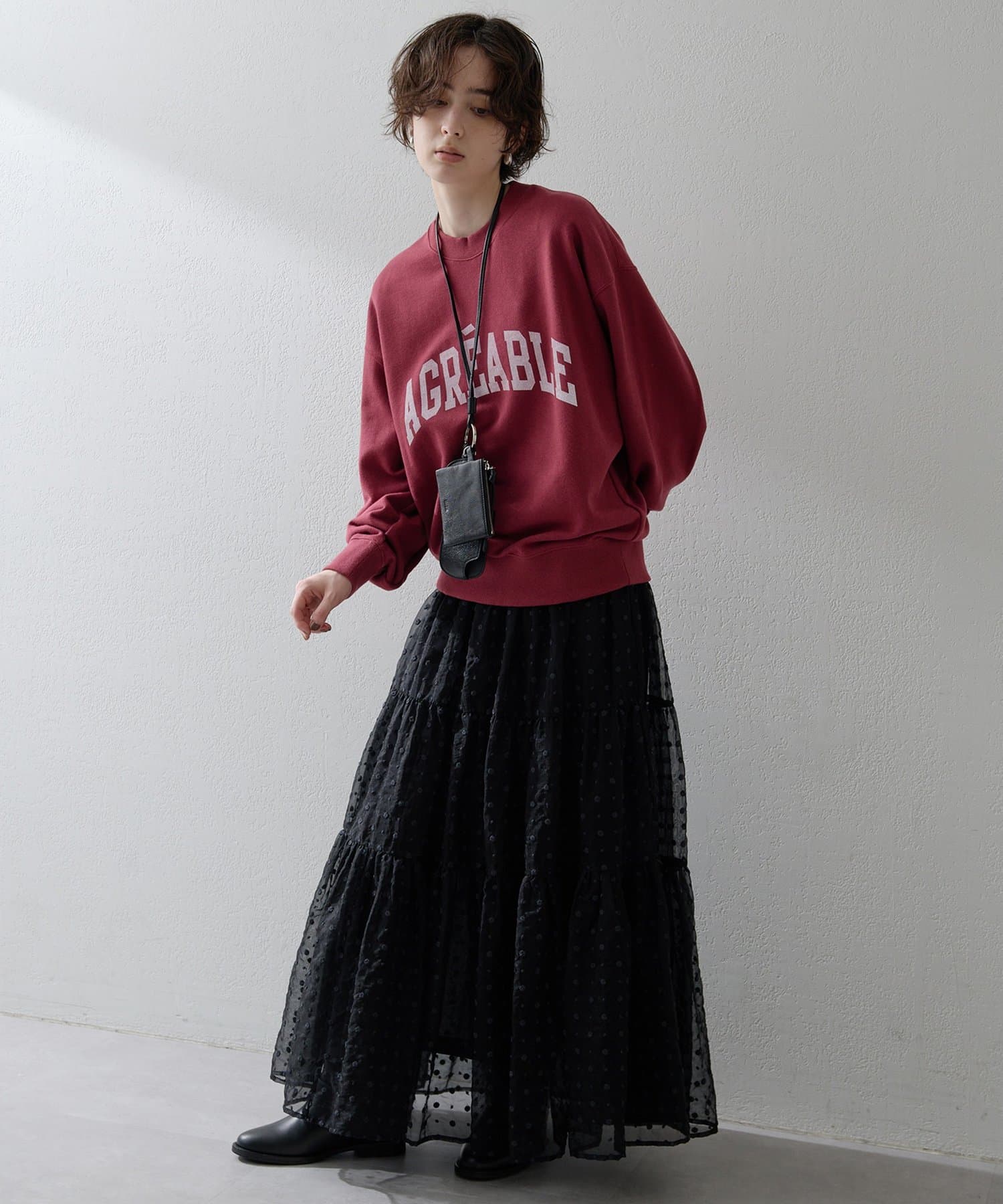 ■インナーを重ねやすいサイズ感で、カットソーやシャツとのレイヤードスタイルもおすすめ。