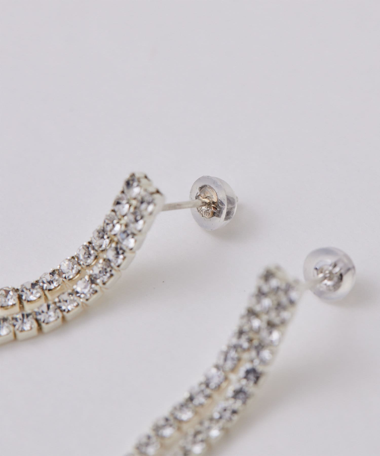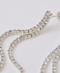 華奢なビジューパーツを使用したフリンジピアス。華奢ですがビジューの輝きで存在感のあるデザインです。キャッチがシリコン仕様でしっかり留まり、安心です。