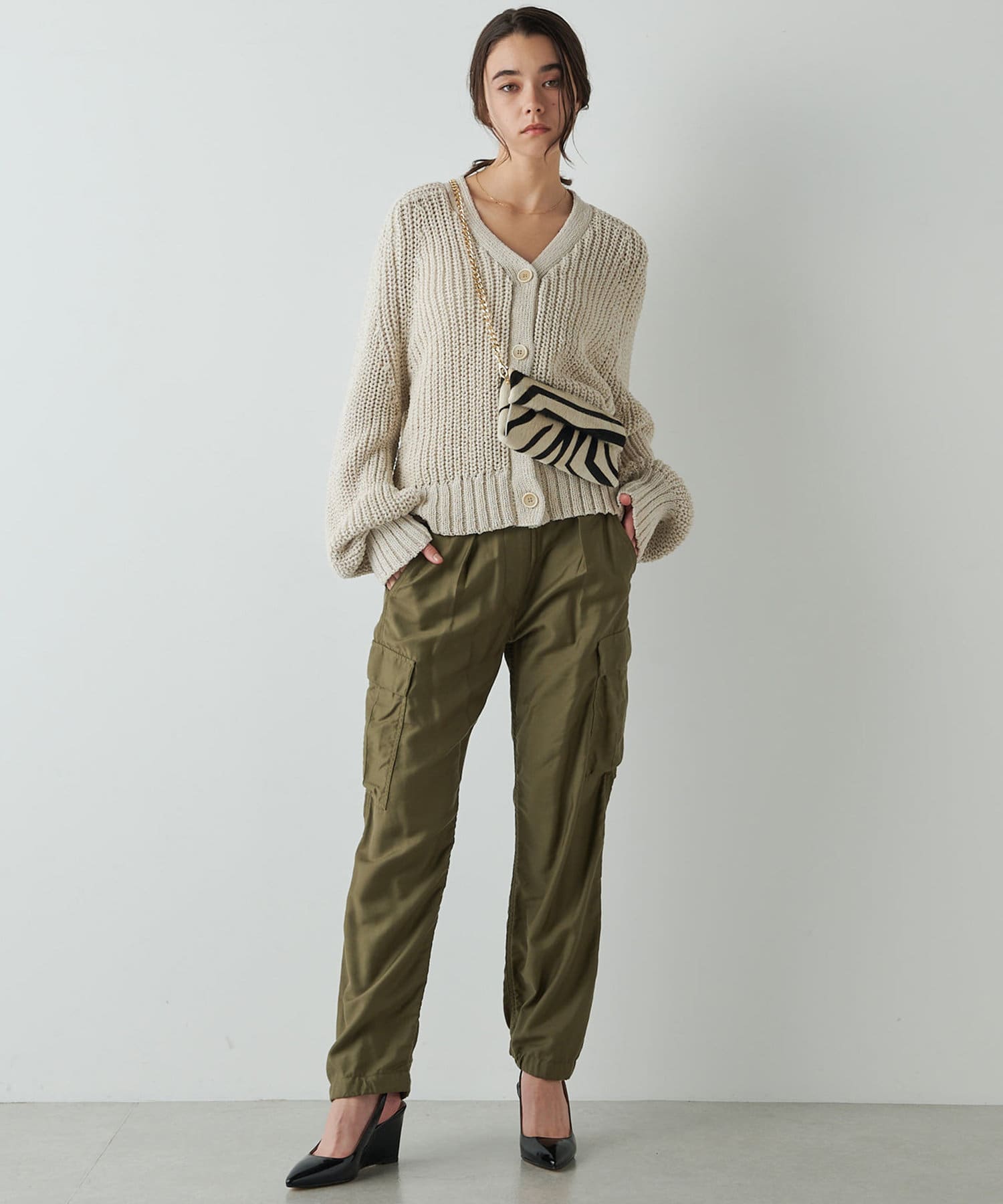 ホワイト:コーディネートのアクセントになるゼブラ柄。