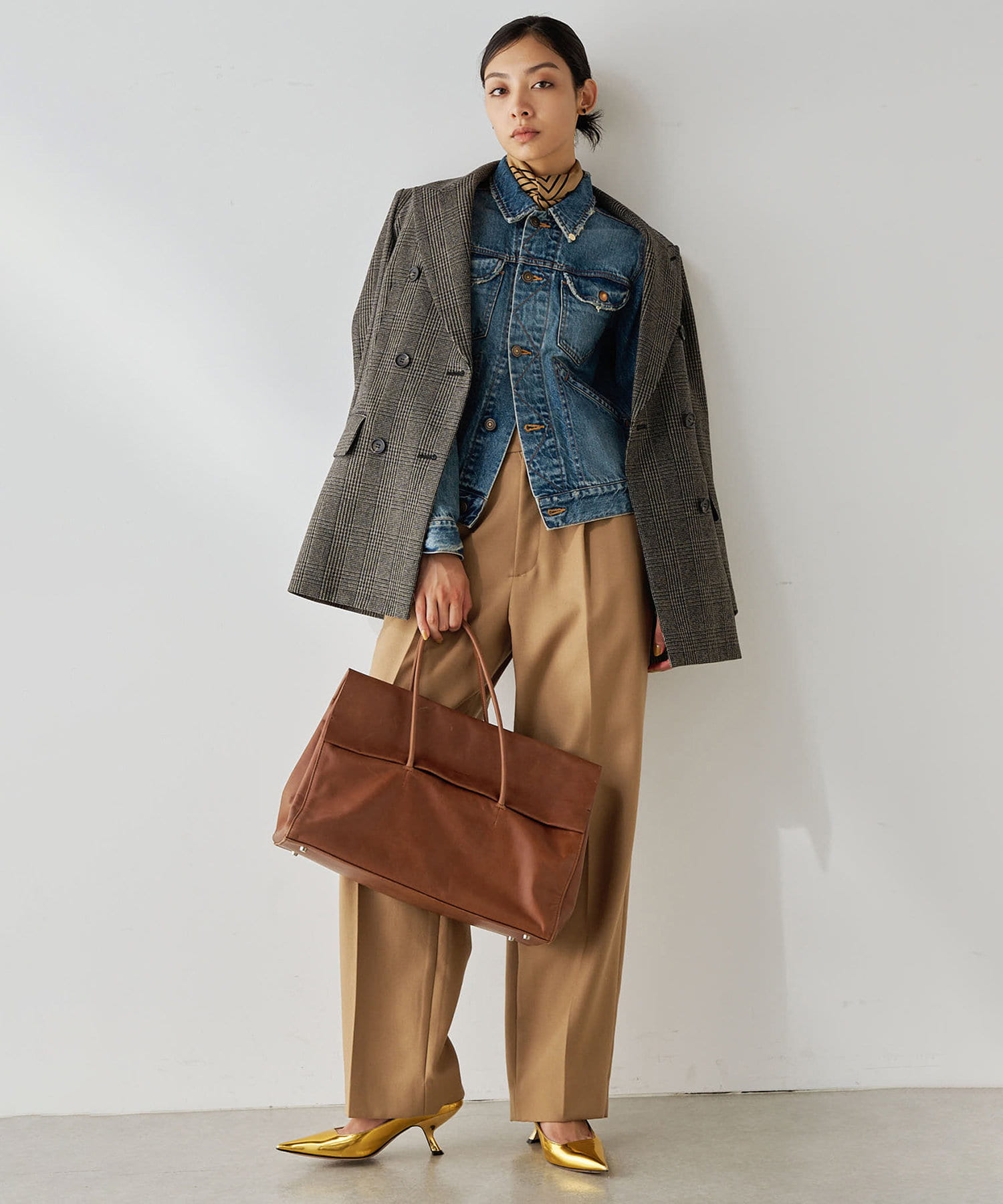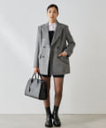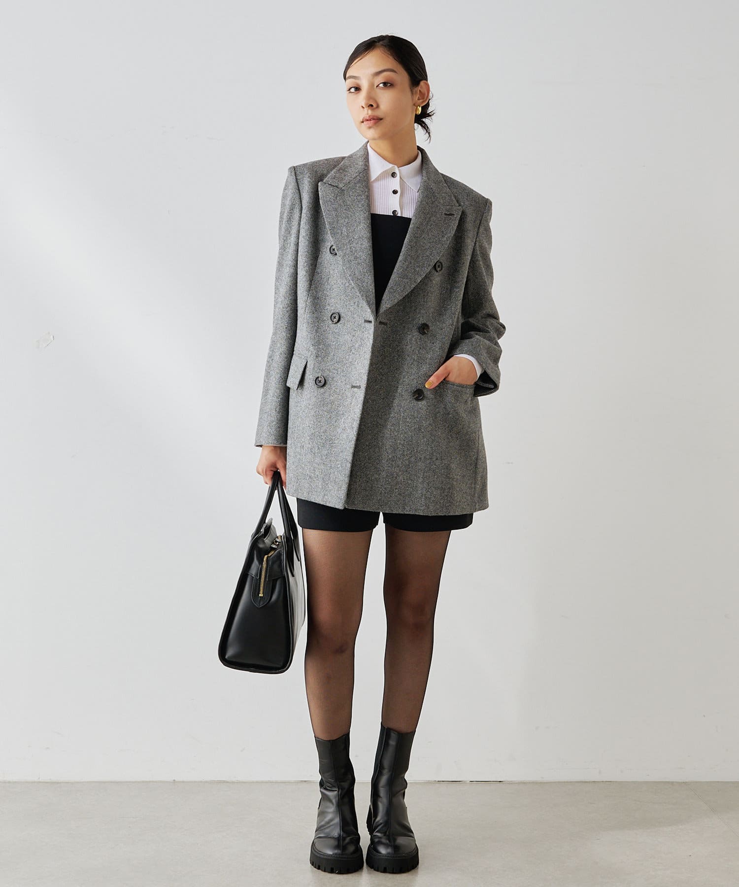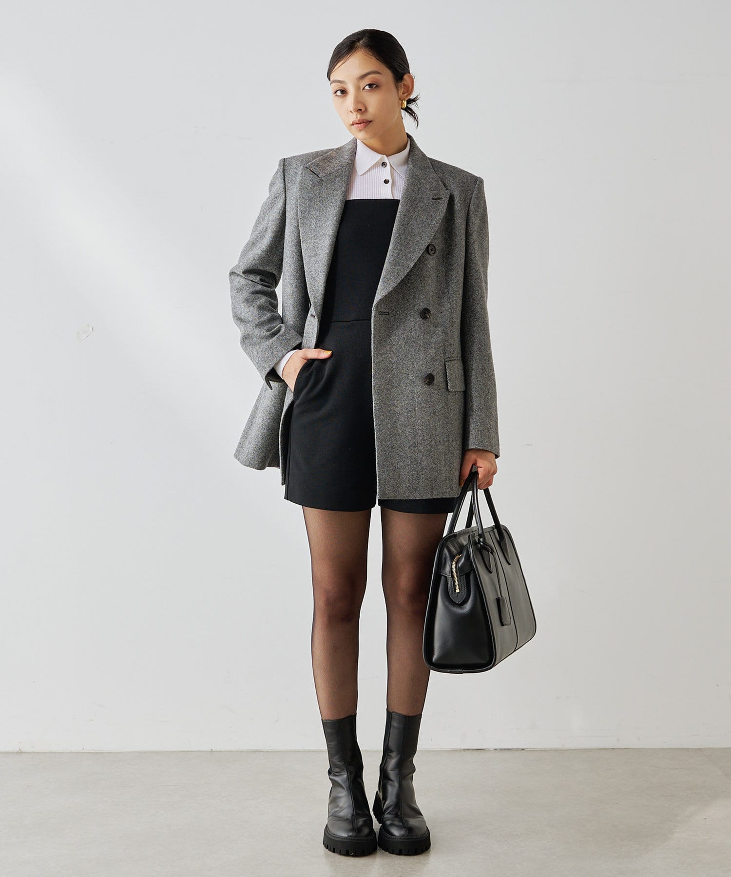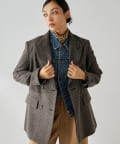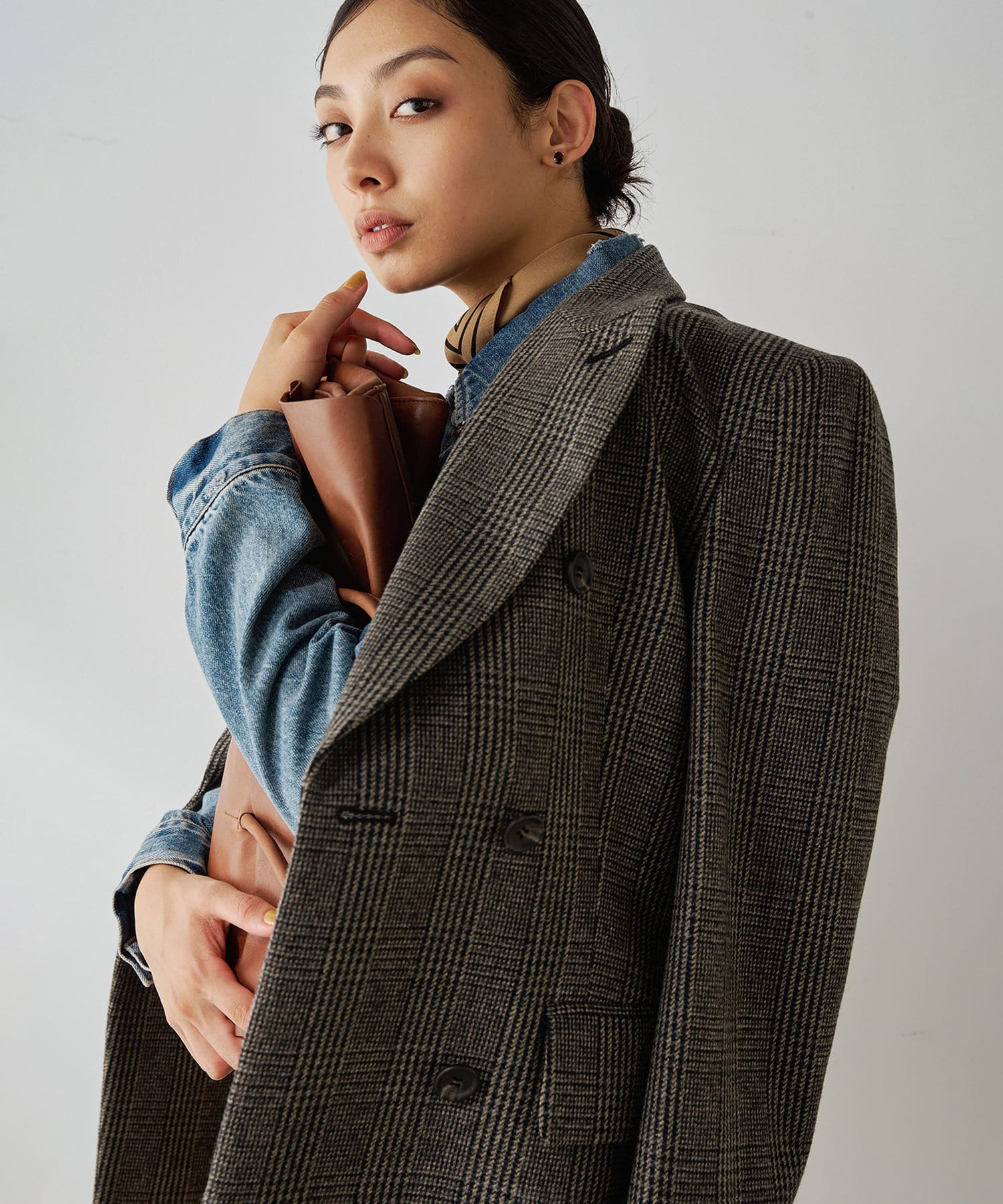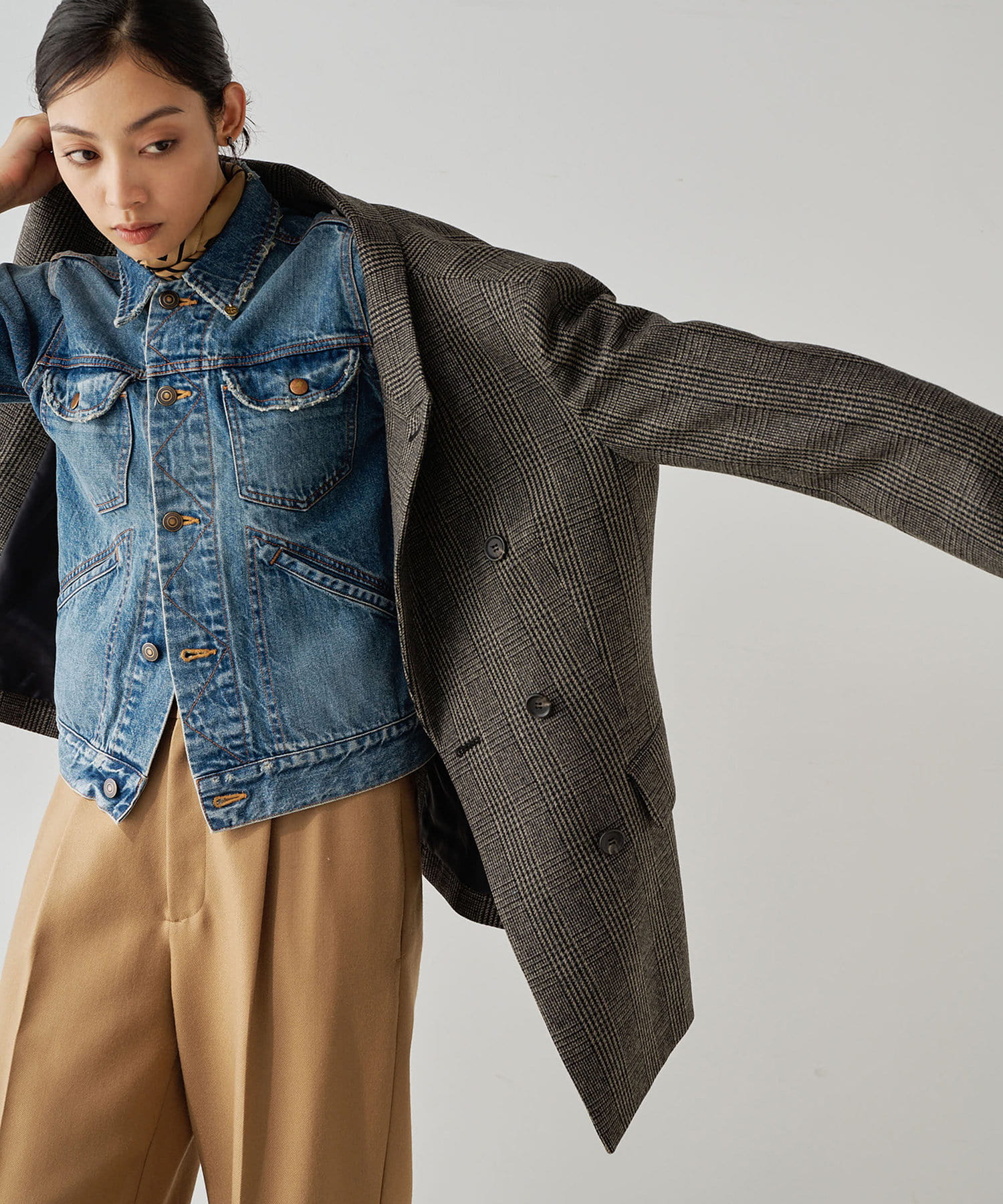 ■前を閉じてかっちりとした雰囲気を楽しんだり、オーバーなサイズ感を生かして前を開けてラフに羽織るスタイルもおすすめ。