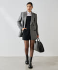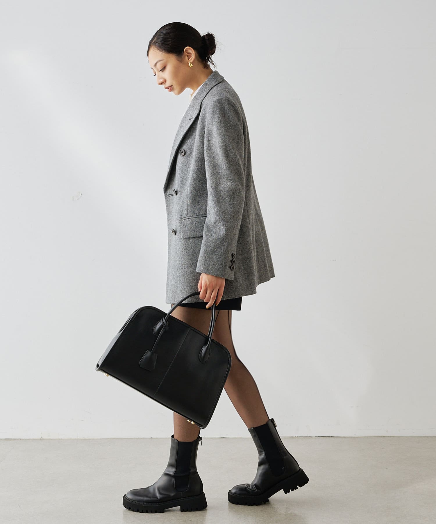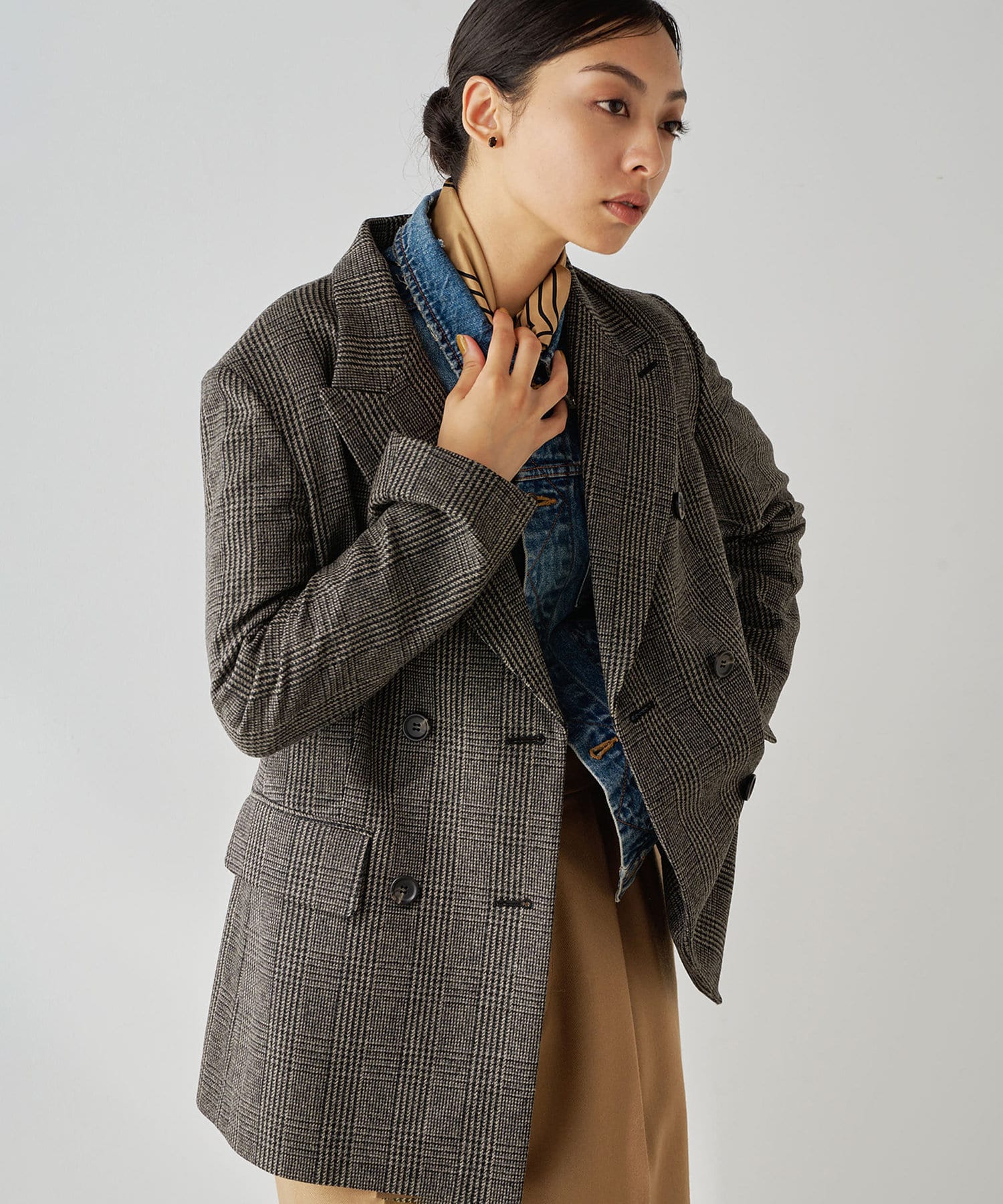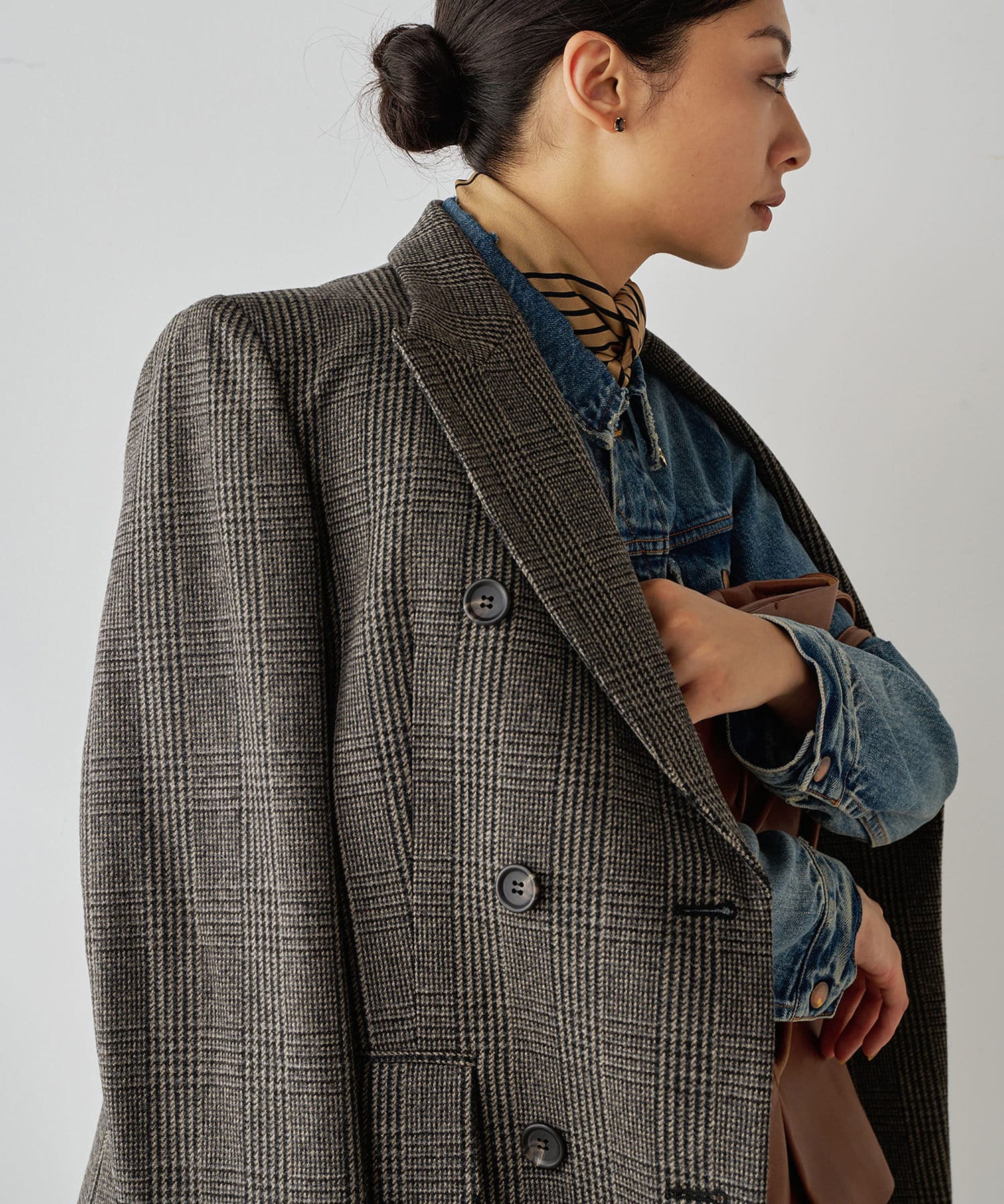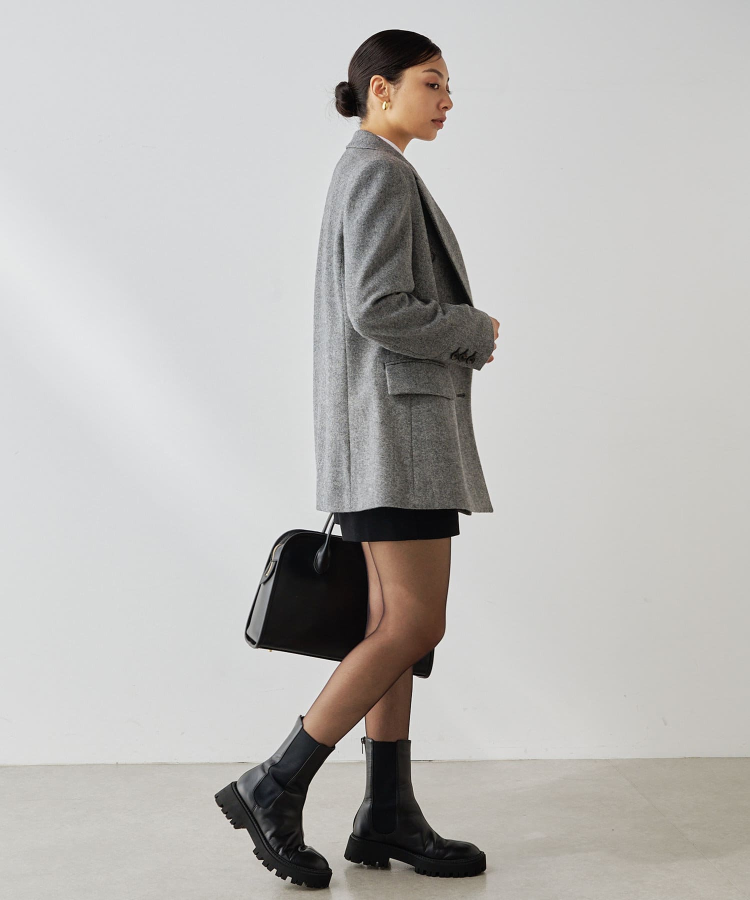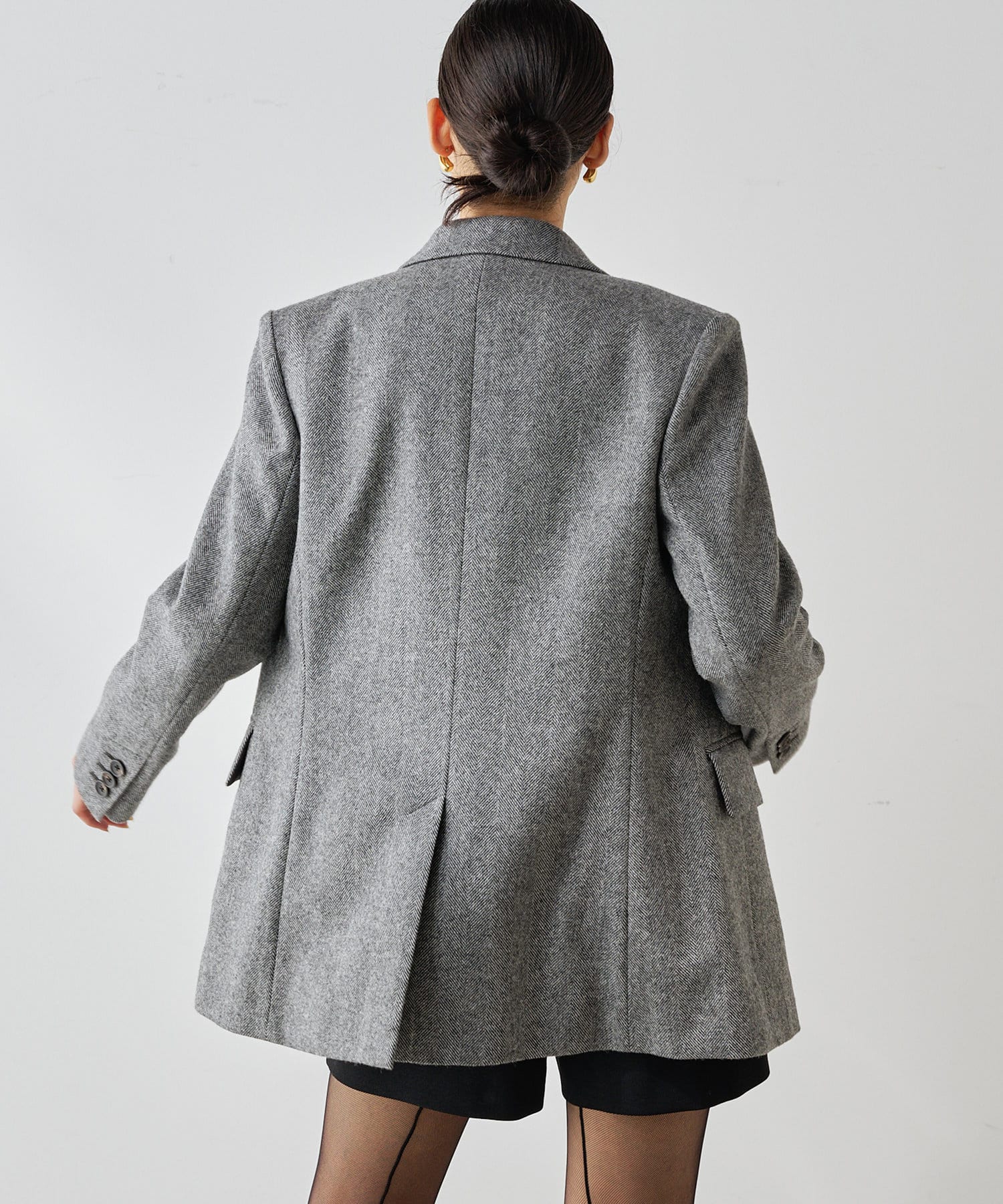 ■前を閉じてかっちりとした雰囲気を楽しんだり、オーバーなサイズ感を生かして前を開けてラフに羽織るスタイルもおすすめ。