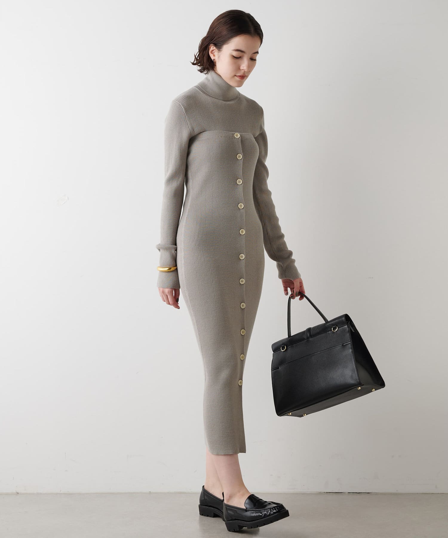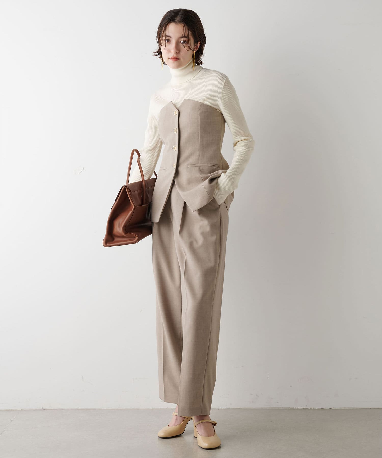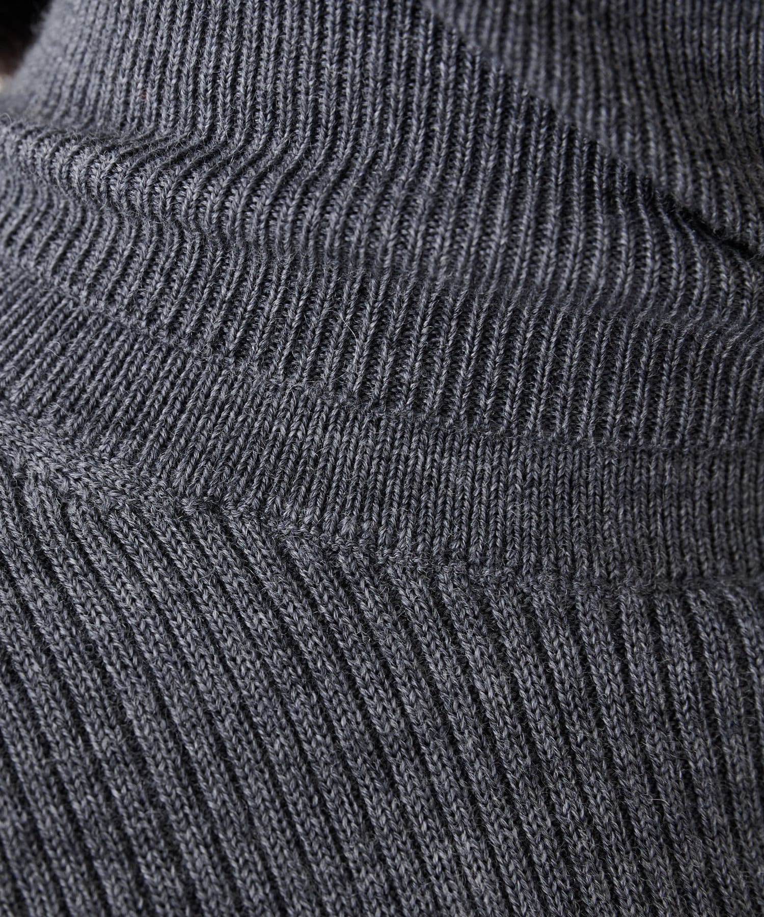 ■首元に沿う長めのタートルネックはお好みで折り返しても、あえてクシュクシュとたるませても◎。