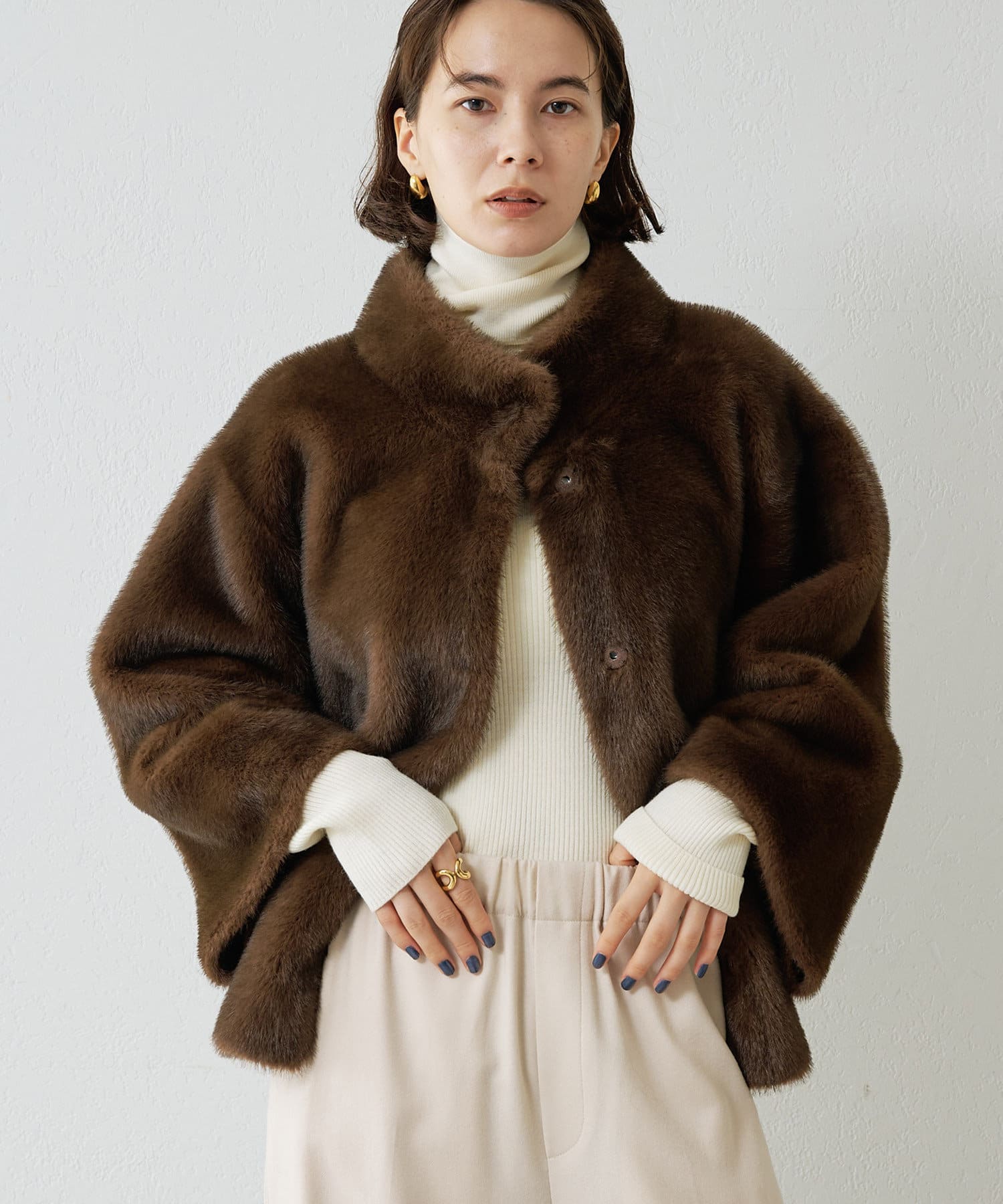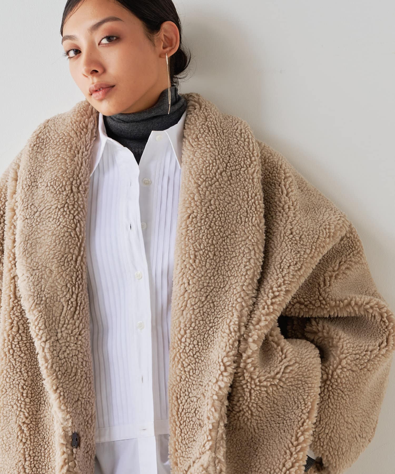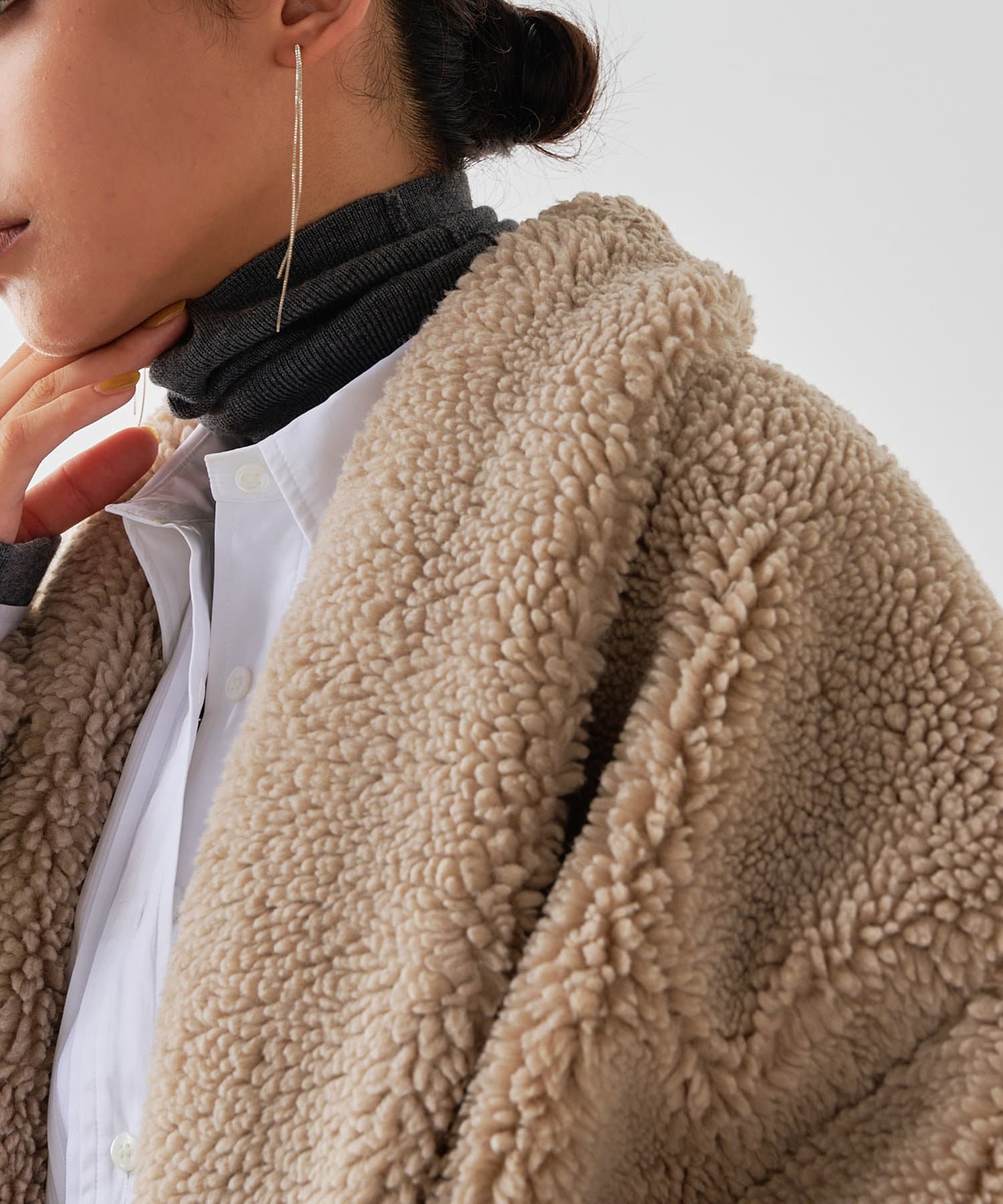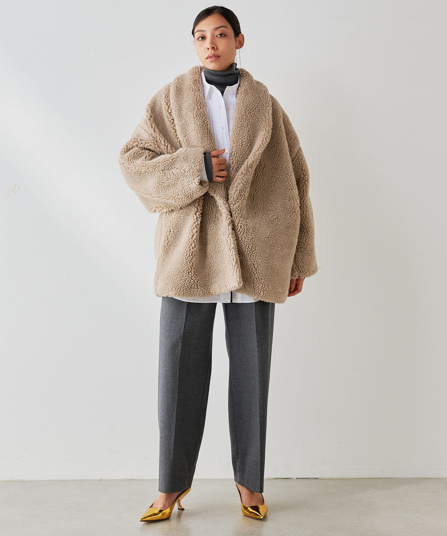■首元に沿う長めのタートルネックはお好みで折り返しても、あえてクシュクシュとたるませても◎。