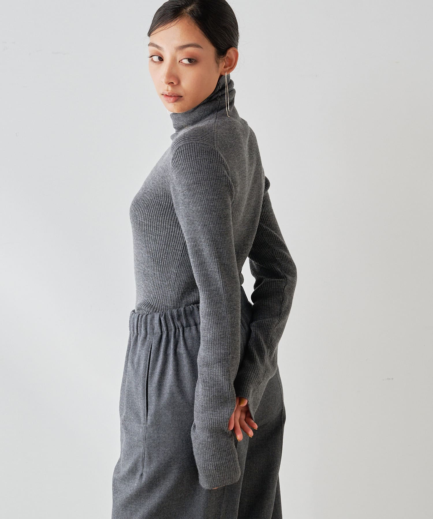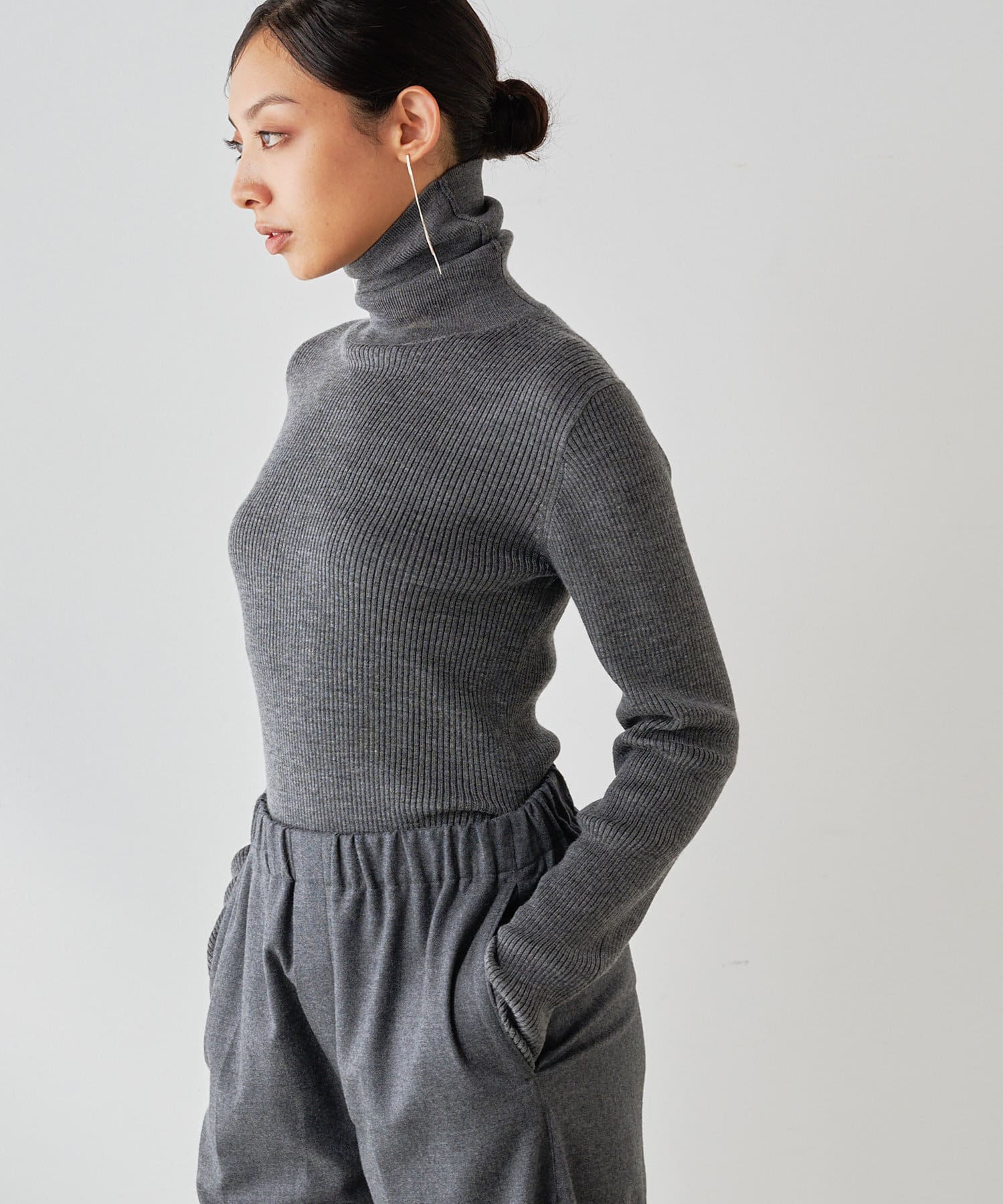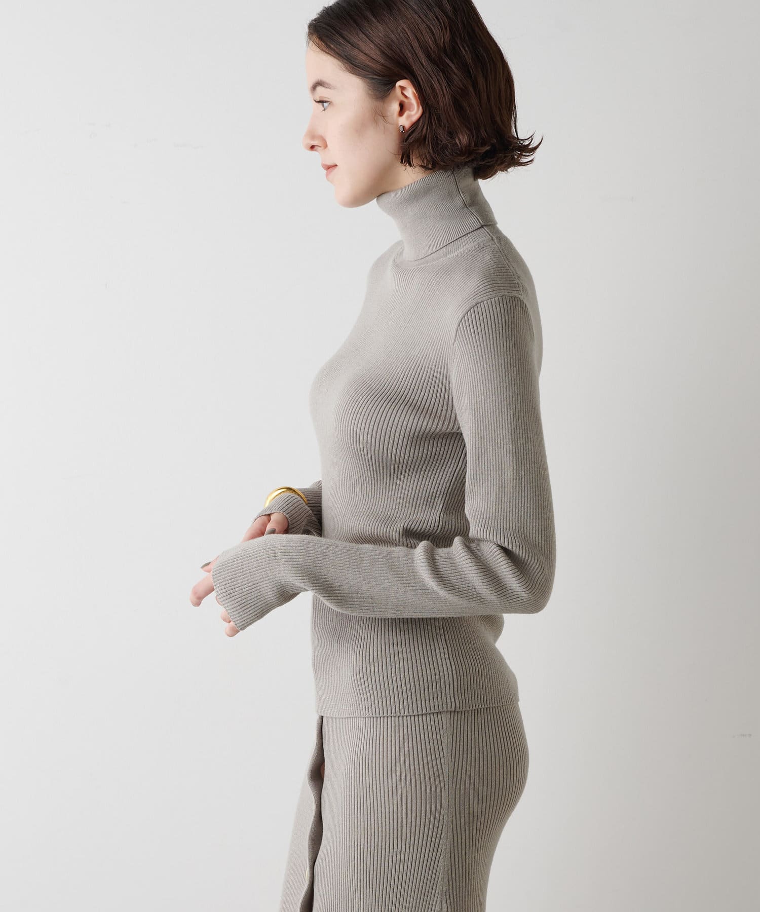 ■品のある細かいリブが身体のラインをすっきりと見せてくれる一枚。