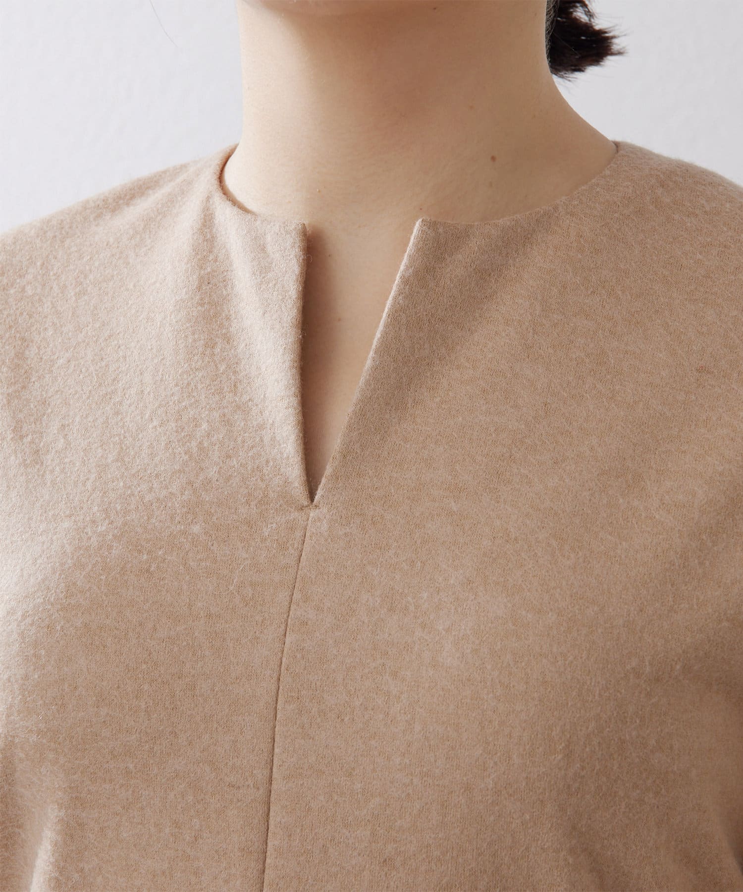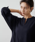 ■顔回りのすっきりと見えるキーネックは、タートルネックとのレイヤードを楽しむのも◎。