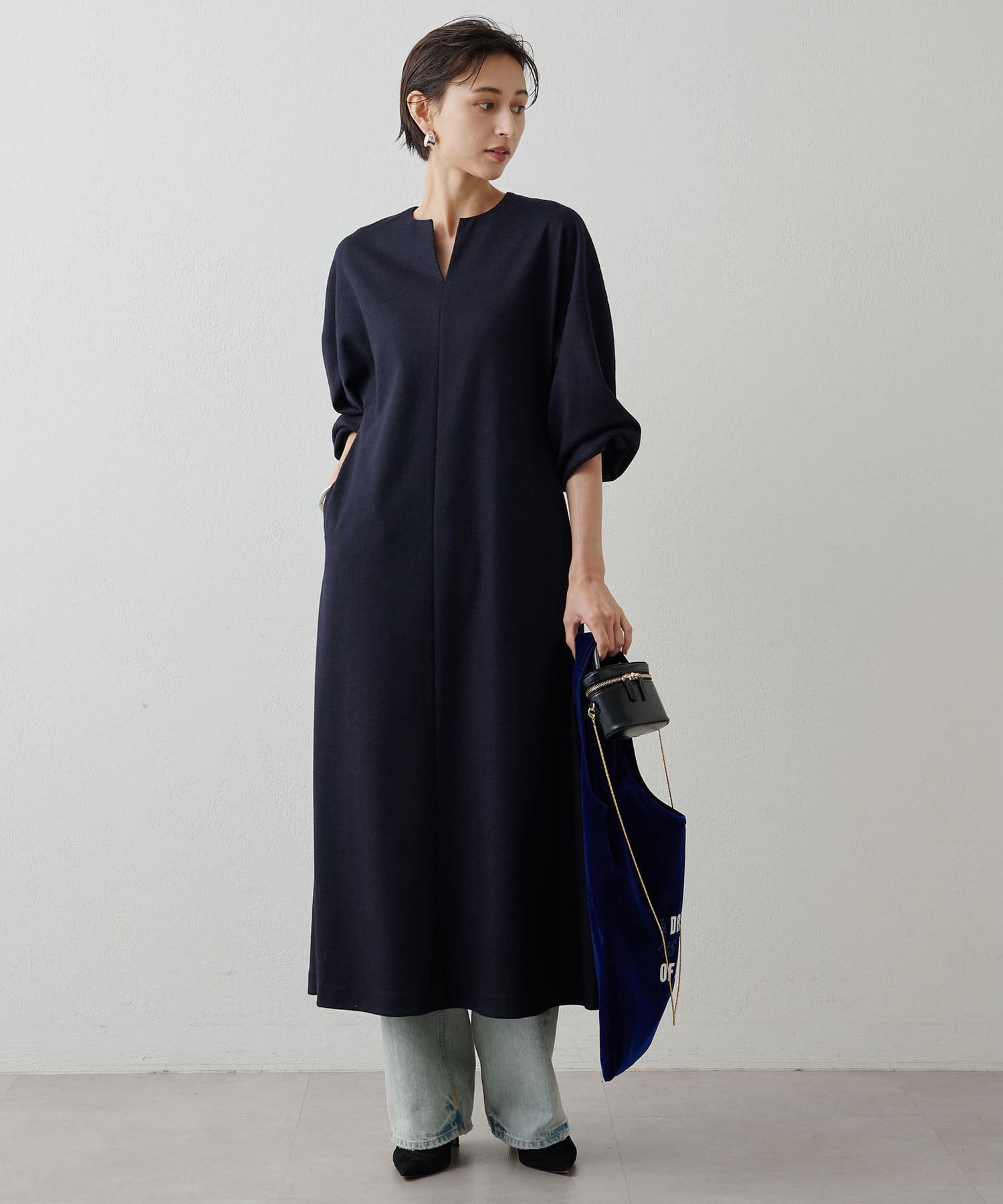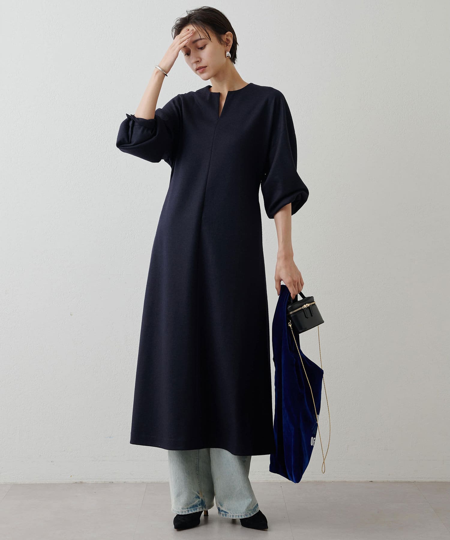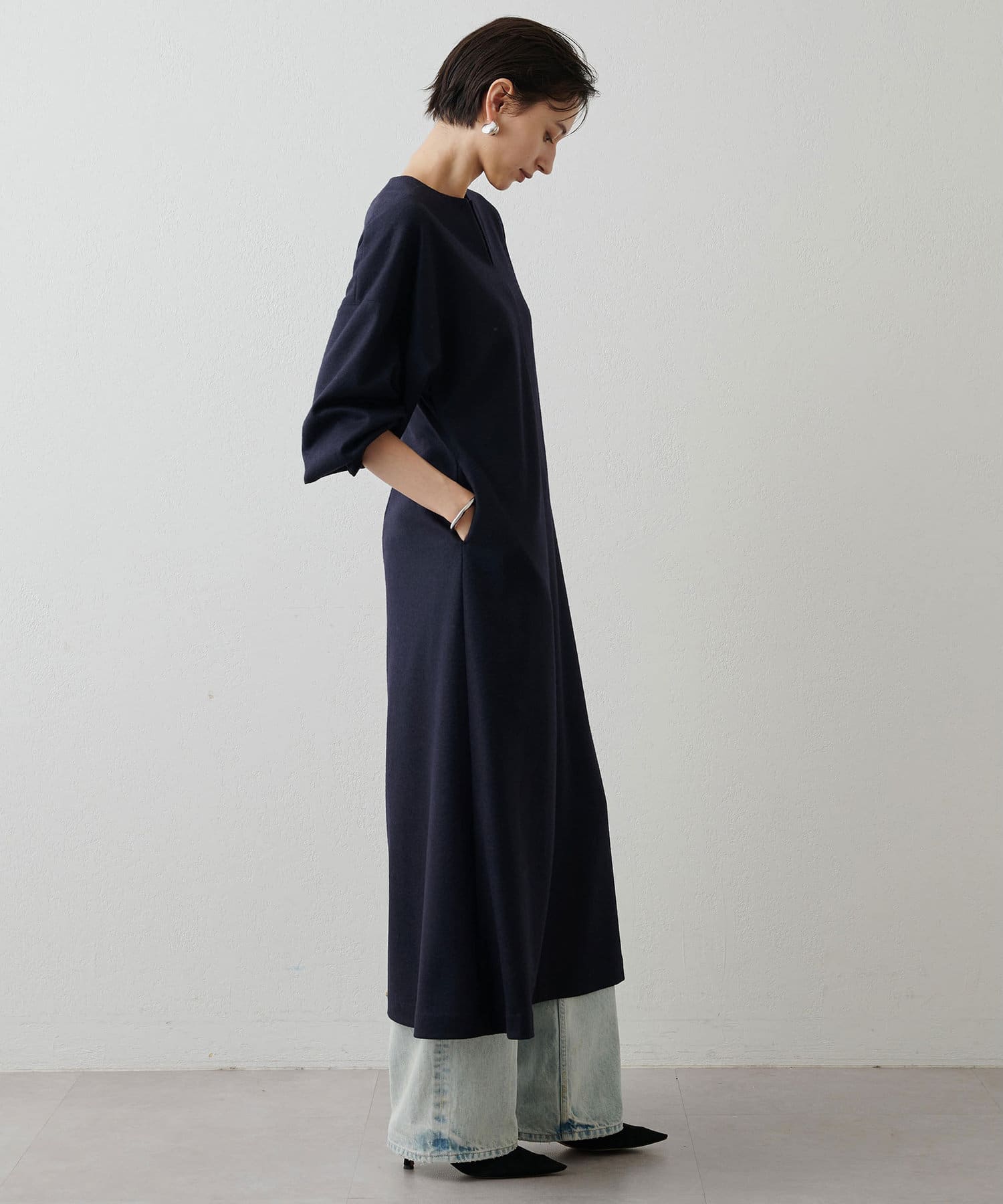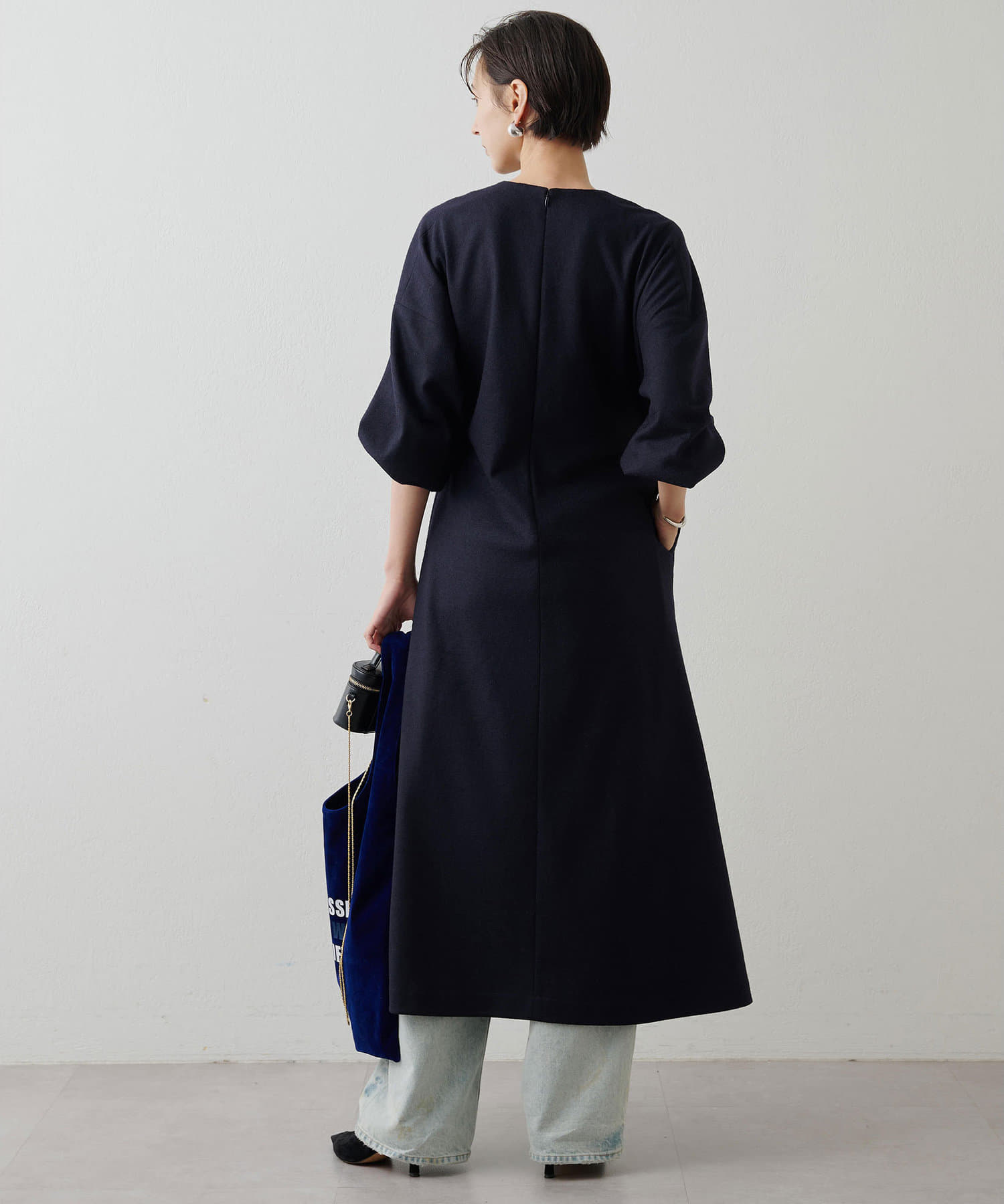 ■圧縮素材を使用したシーズンムードにぴったりなウールワンピース。