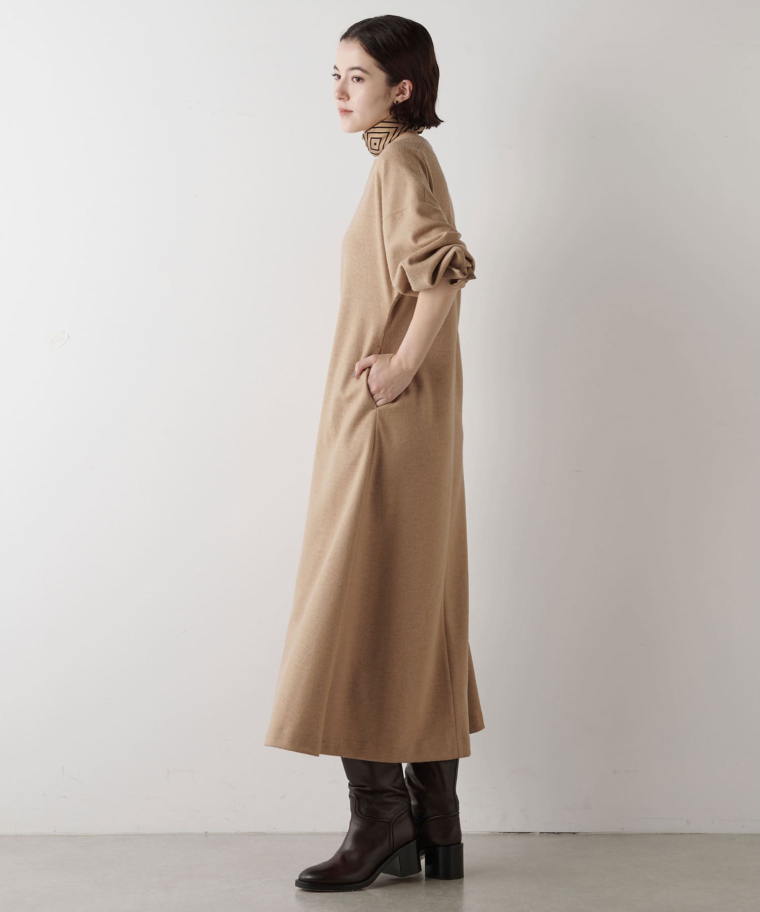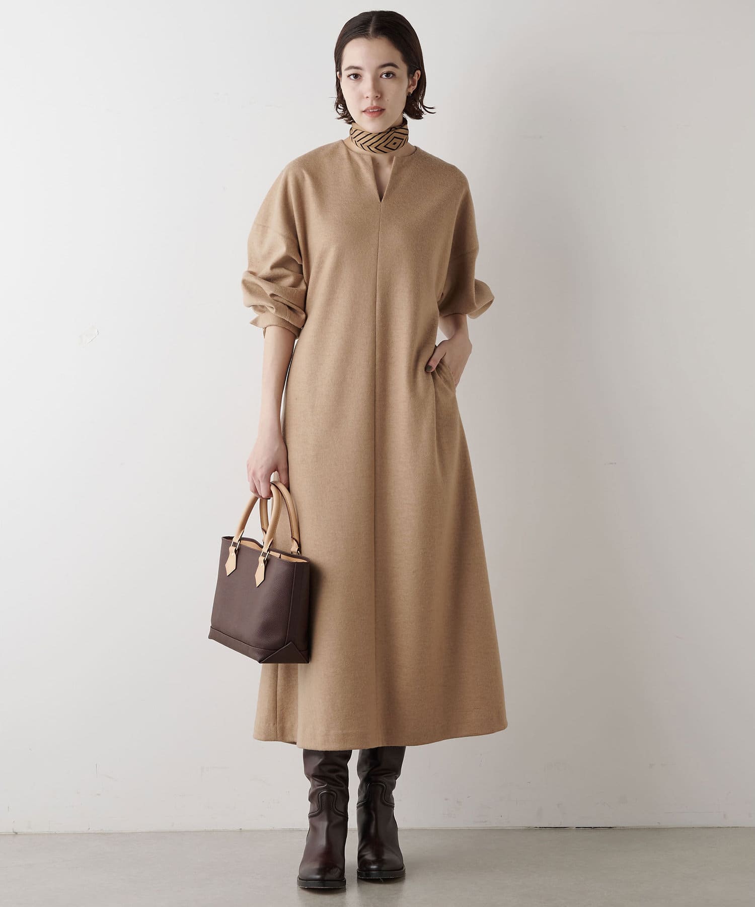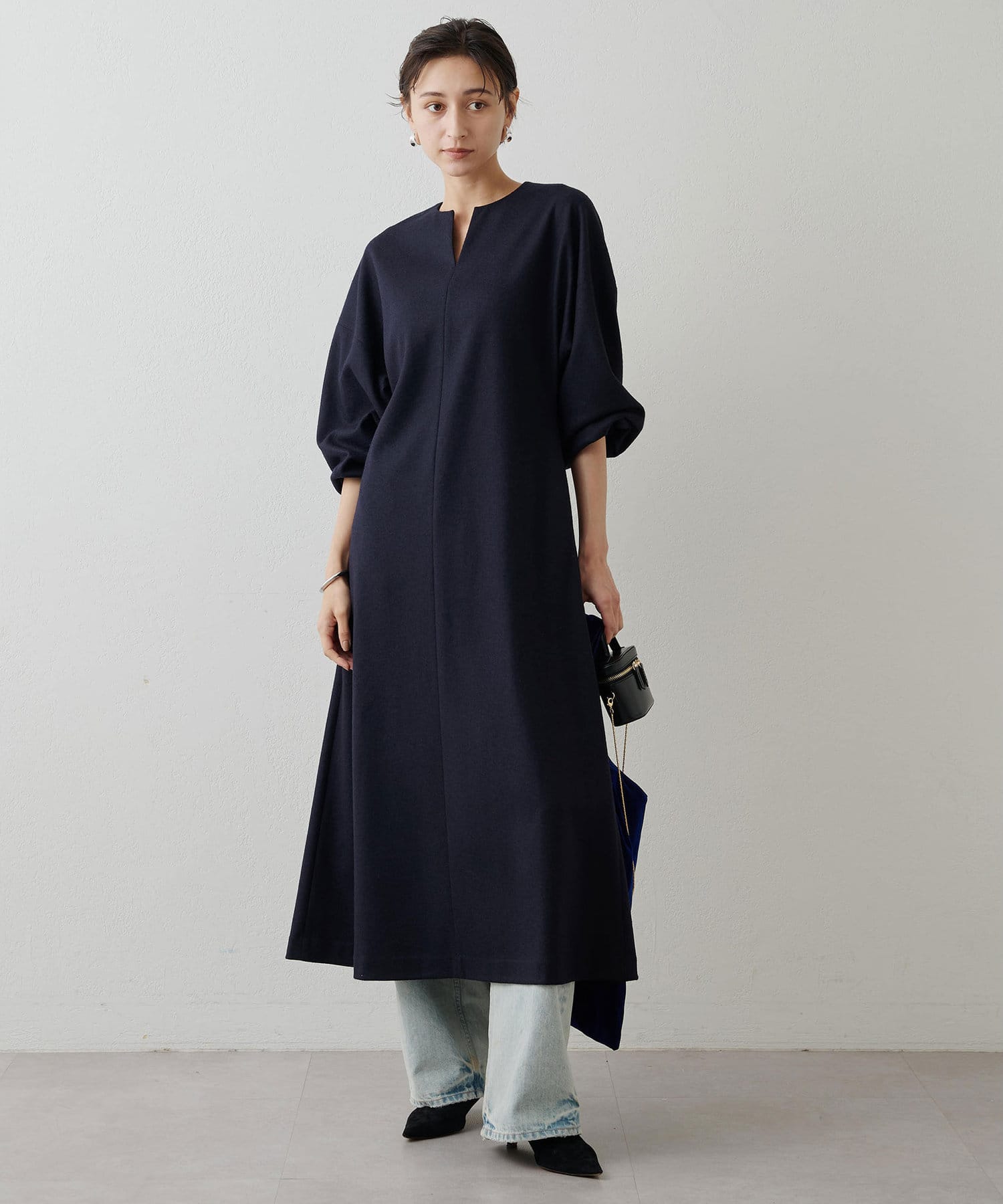 ■圧縮素材を使用したシーズンムードにぴったりなウールワンピース。