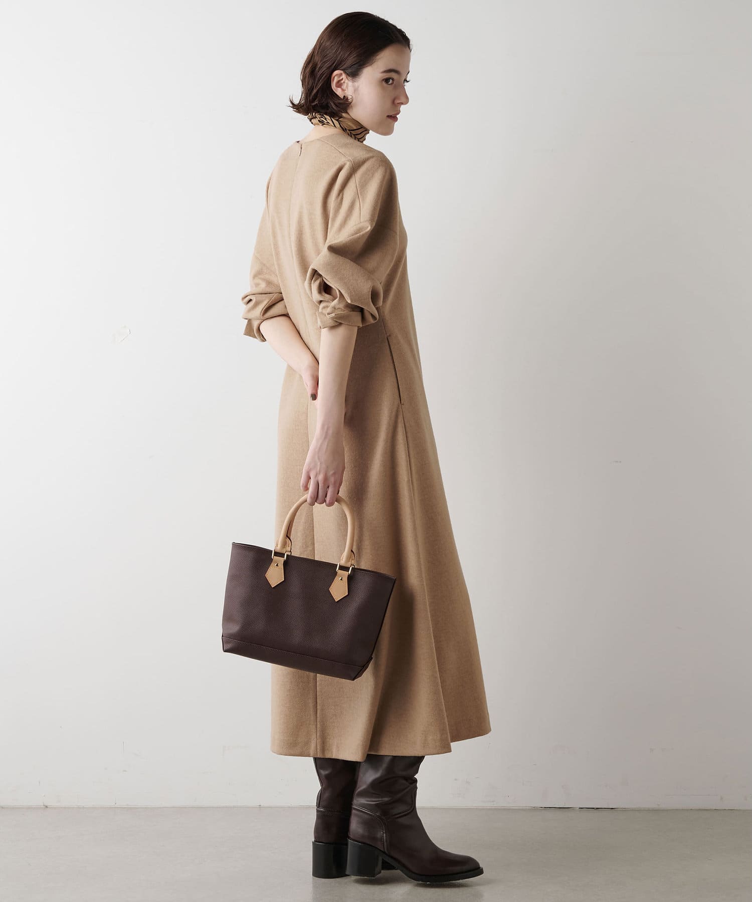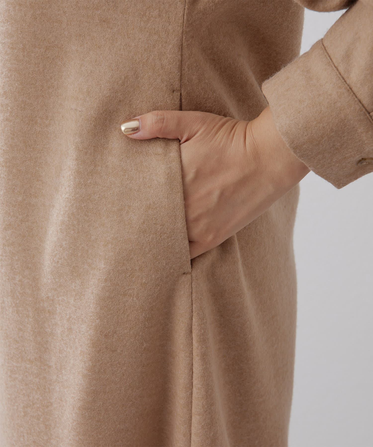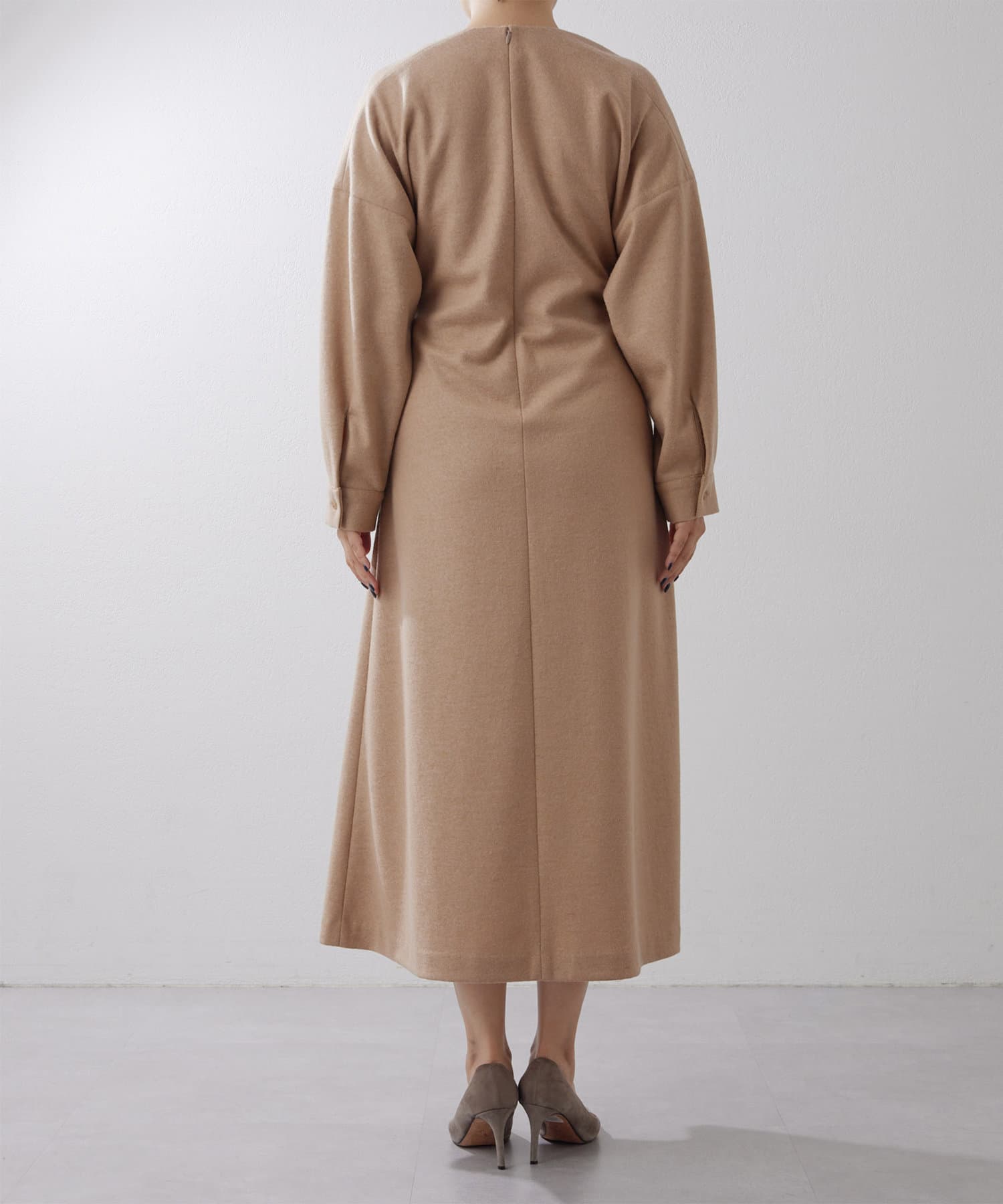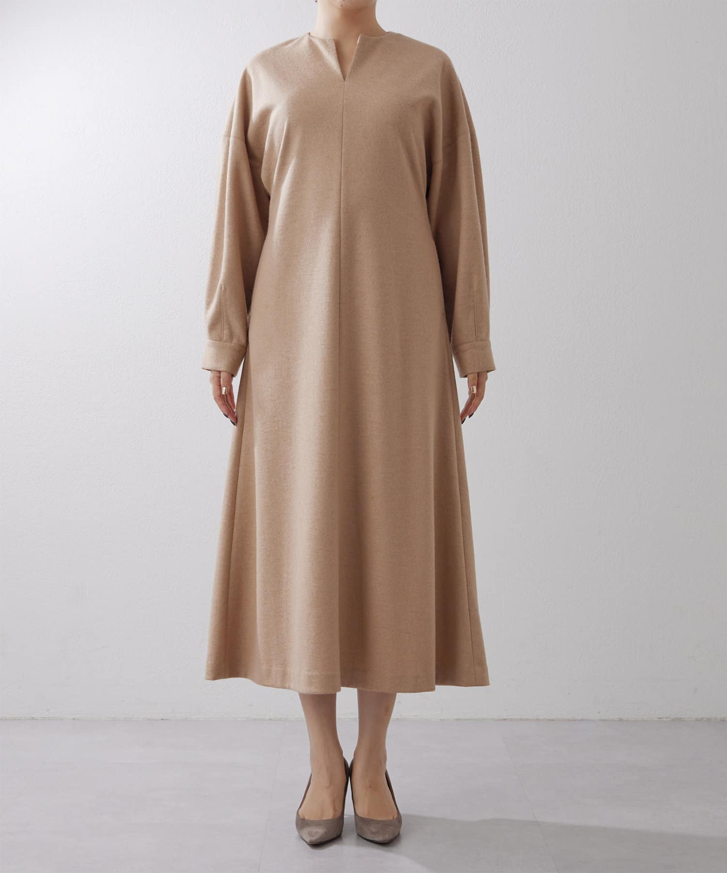 ■圧縮素材を使用したシーズンムードにぴったりなウールワンピース。