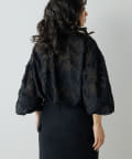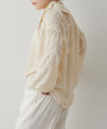 程良い透け感とふわりとした軽さを持つ梨地ジャーゼットに 太番手の糸で贅沢に生地全体に刺繍をあしらった他にはないオリジナル素材。