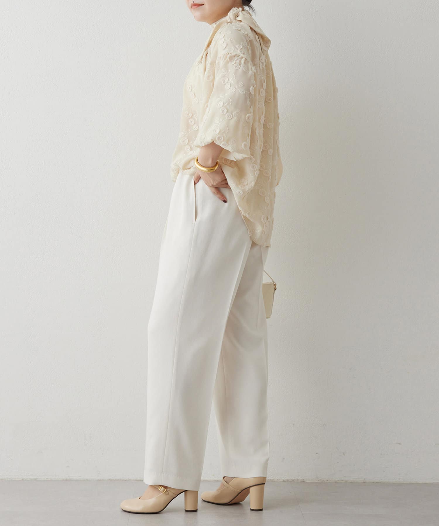 ■程よい透け感のある生地は厚すぎずシーズンレスに着用可能。