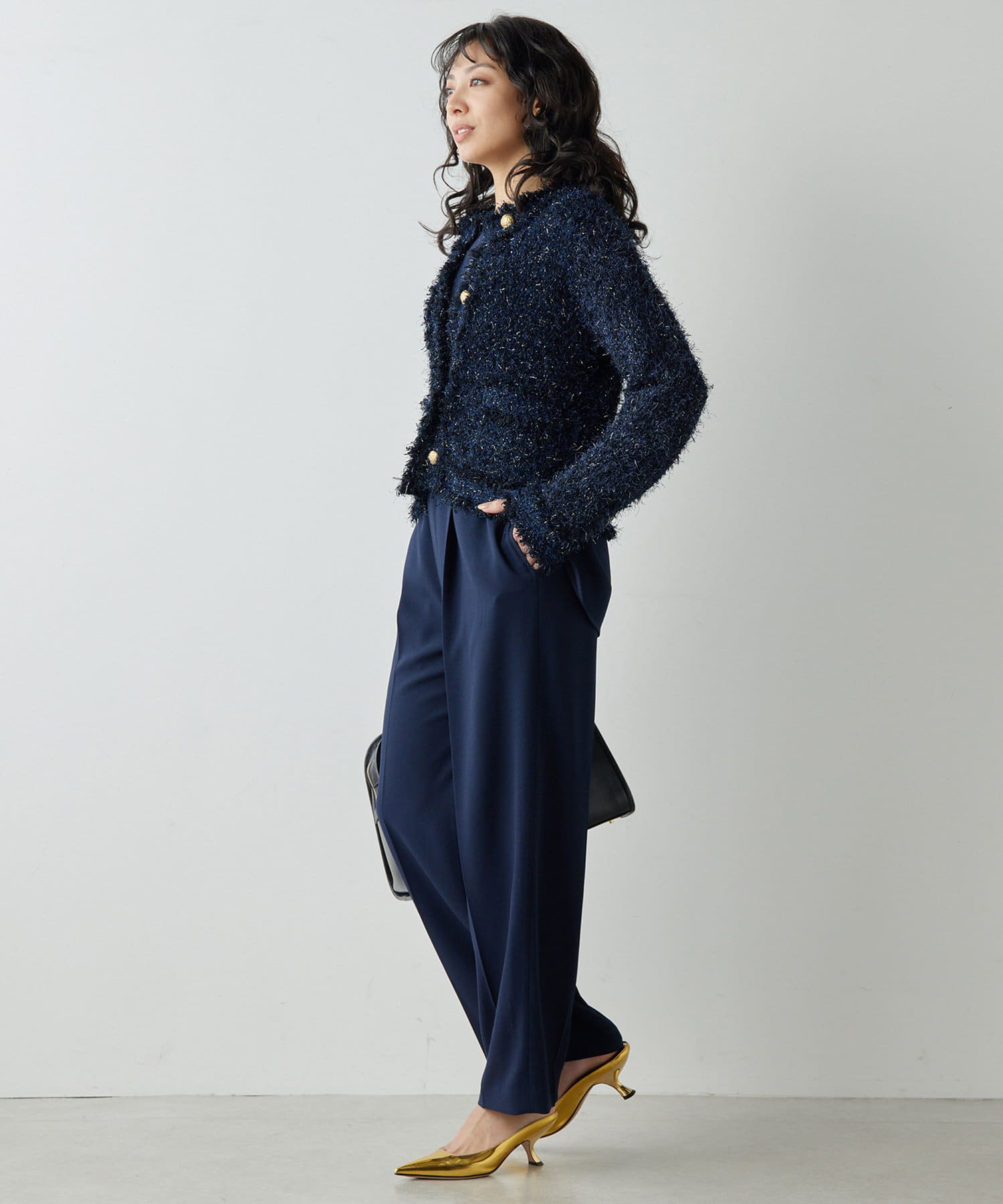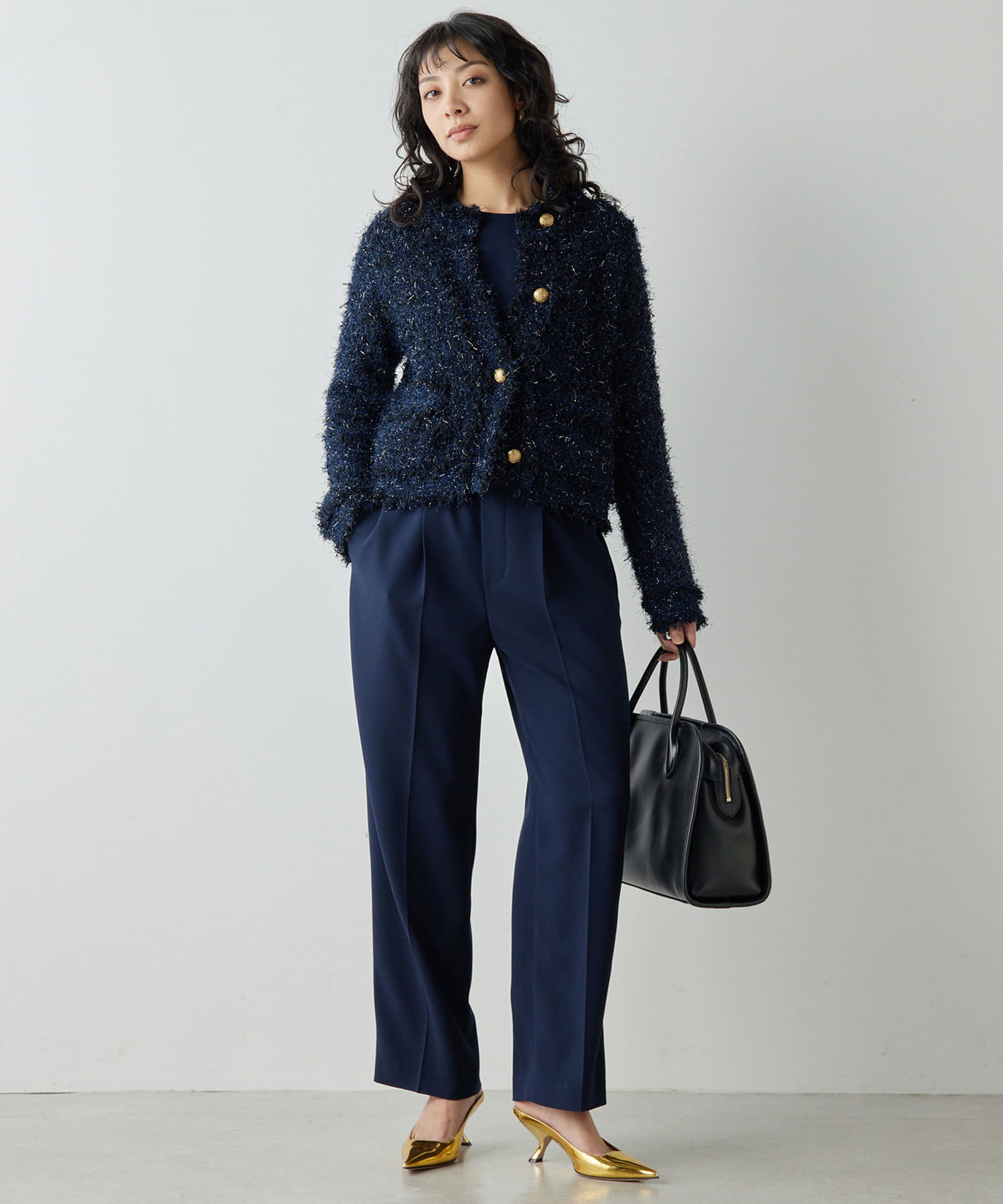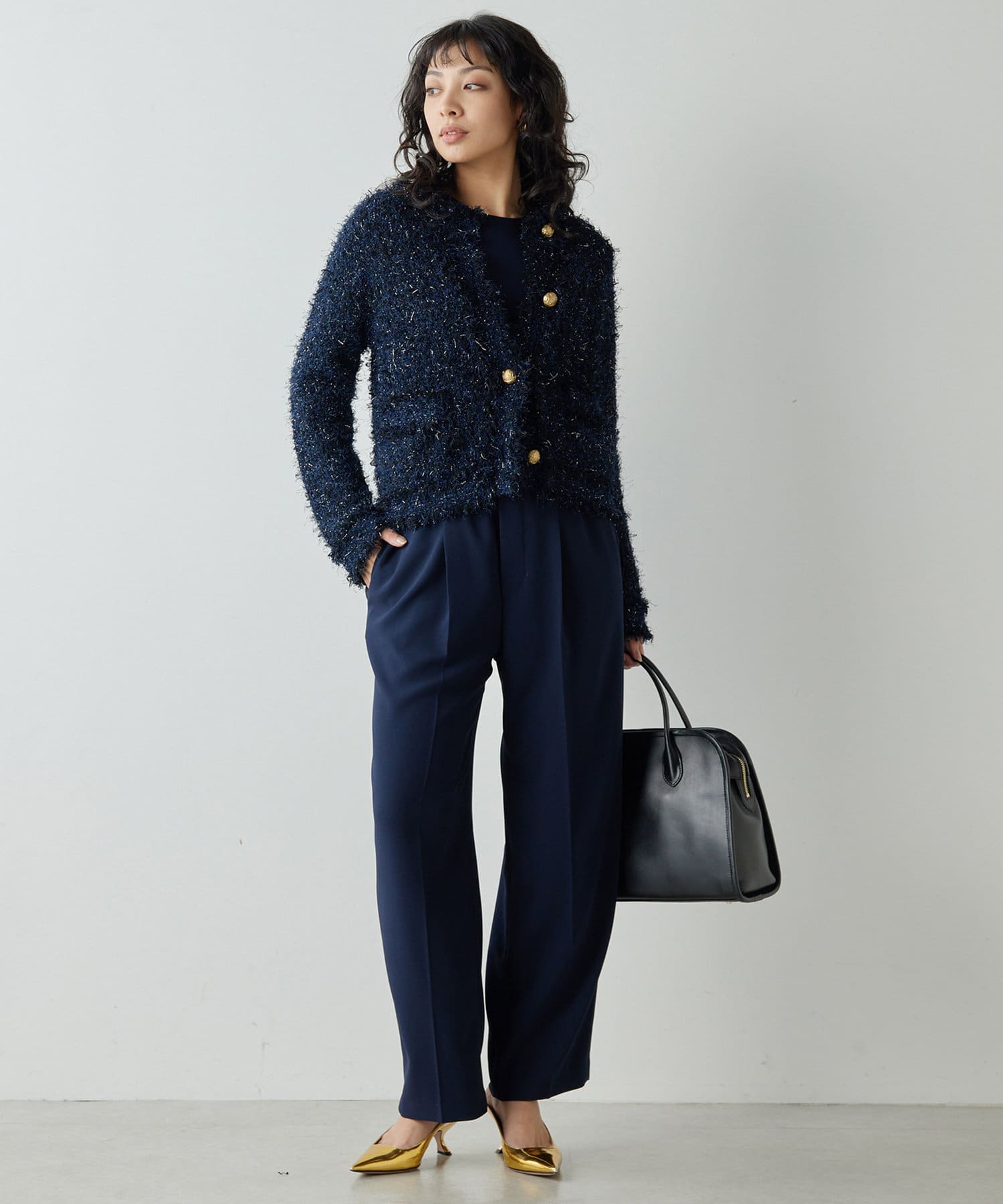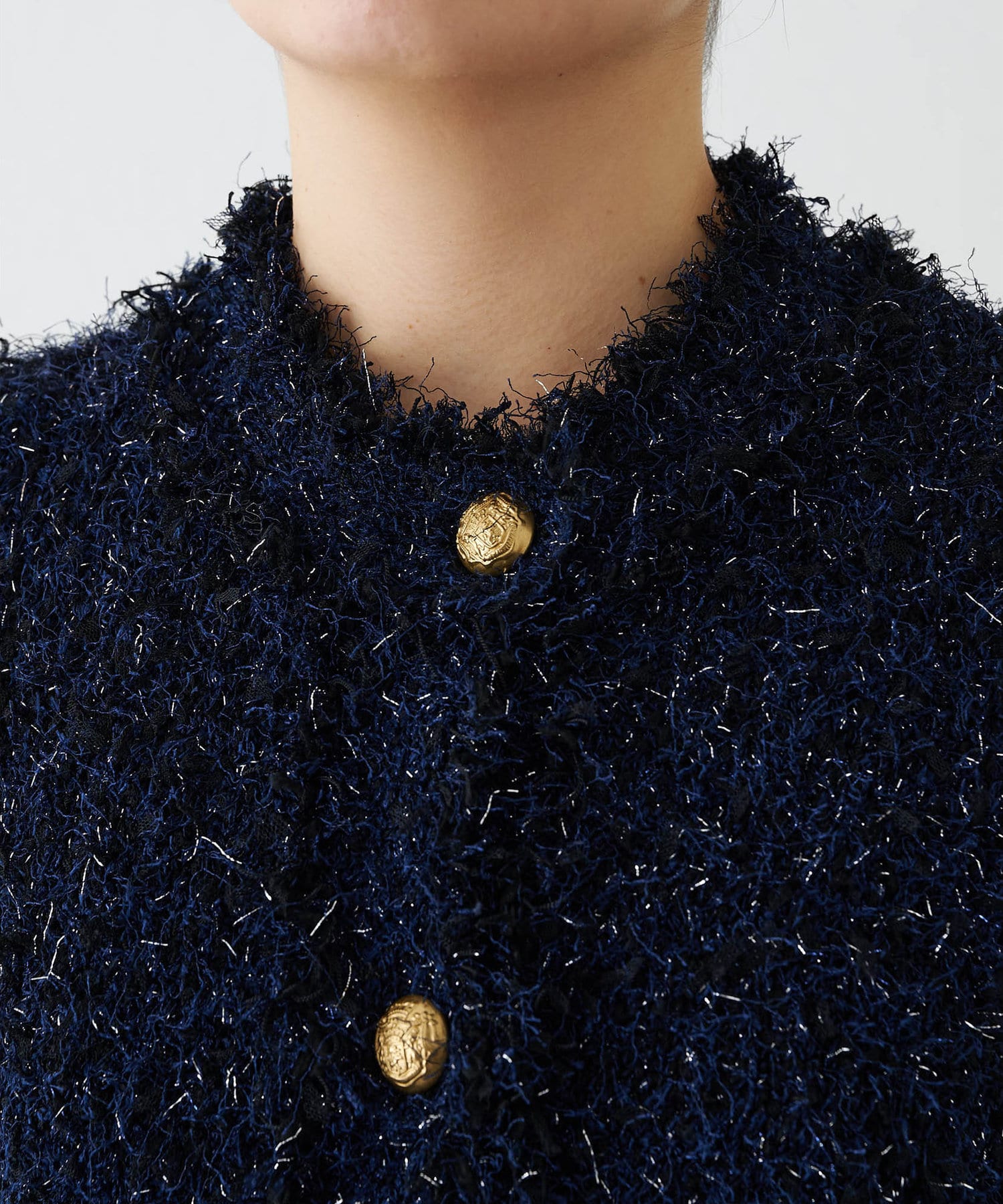 カーディガン感覚で羽織れる、ツイード風ニットジャケット