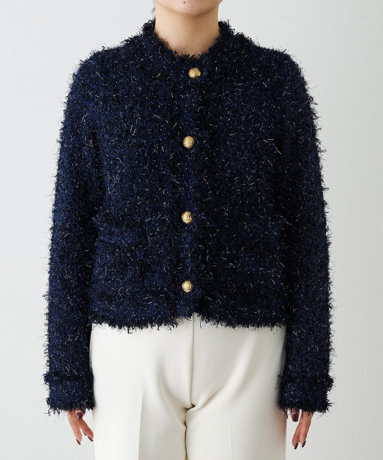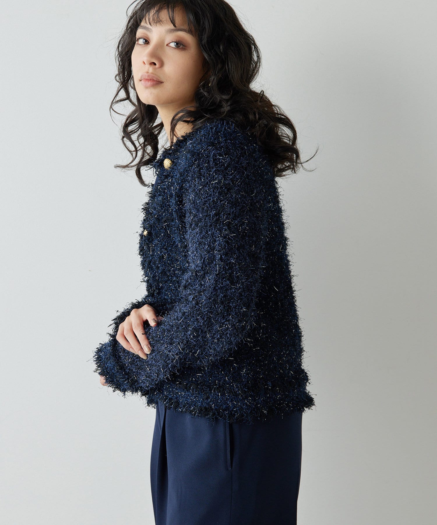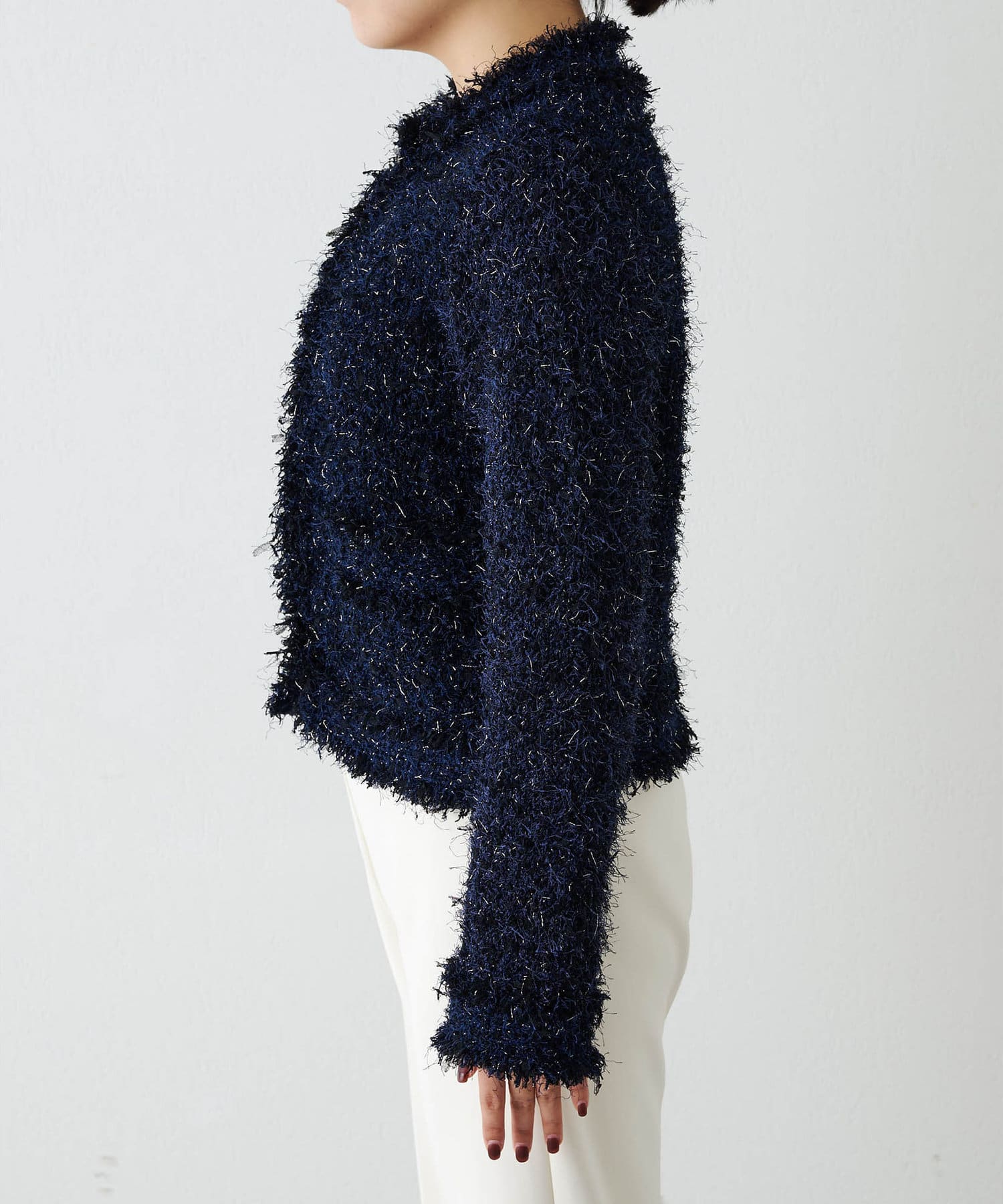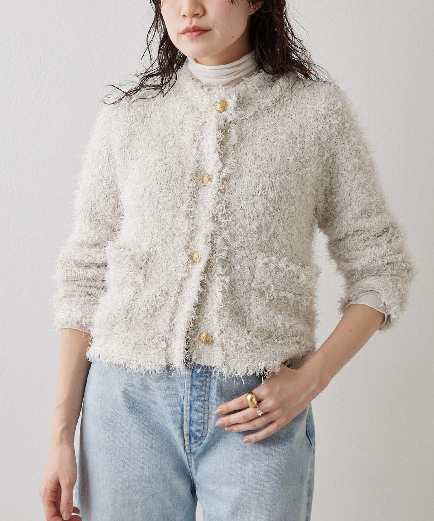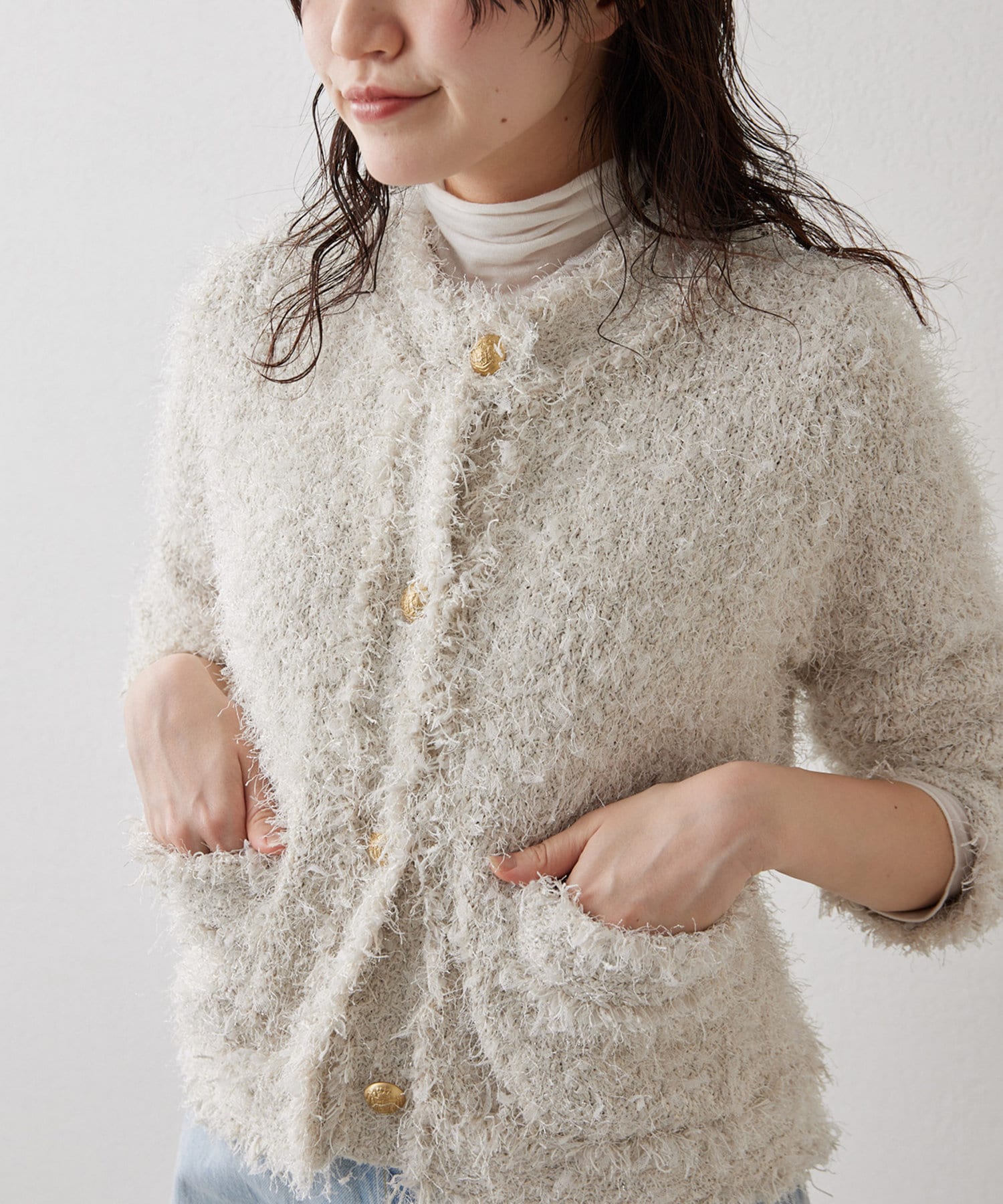 ■ファンシーンヤーンの表情がポイントのニットジャケット。
