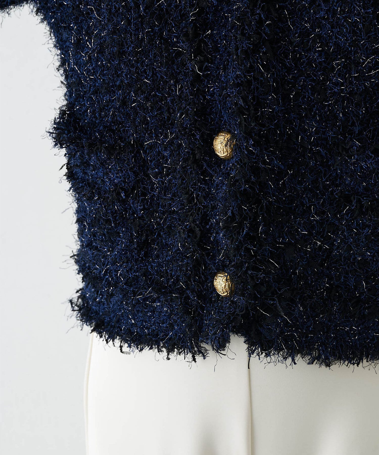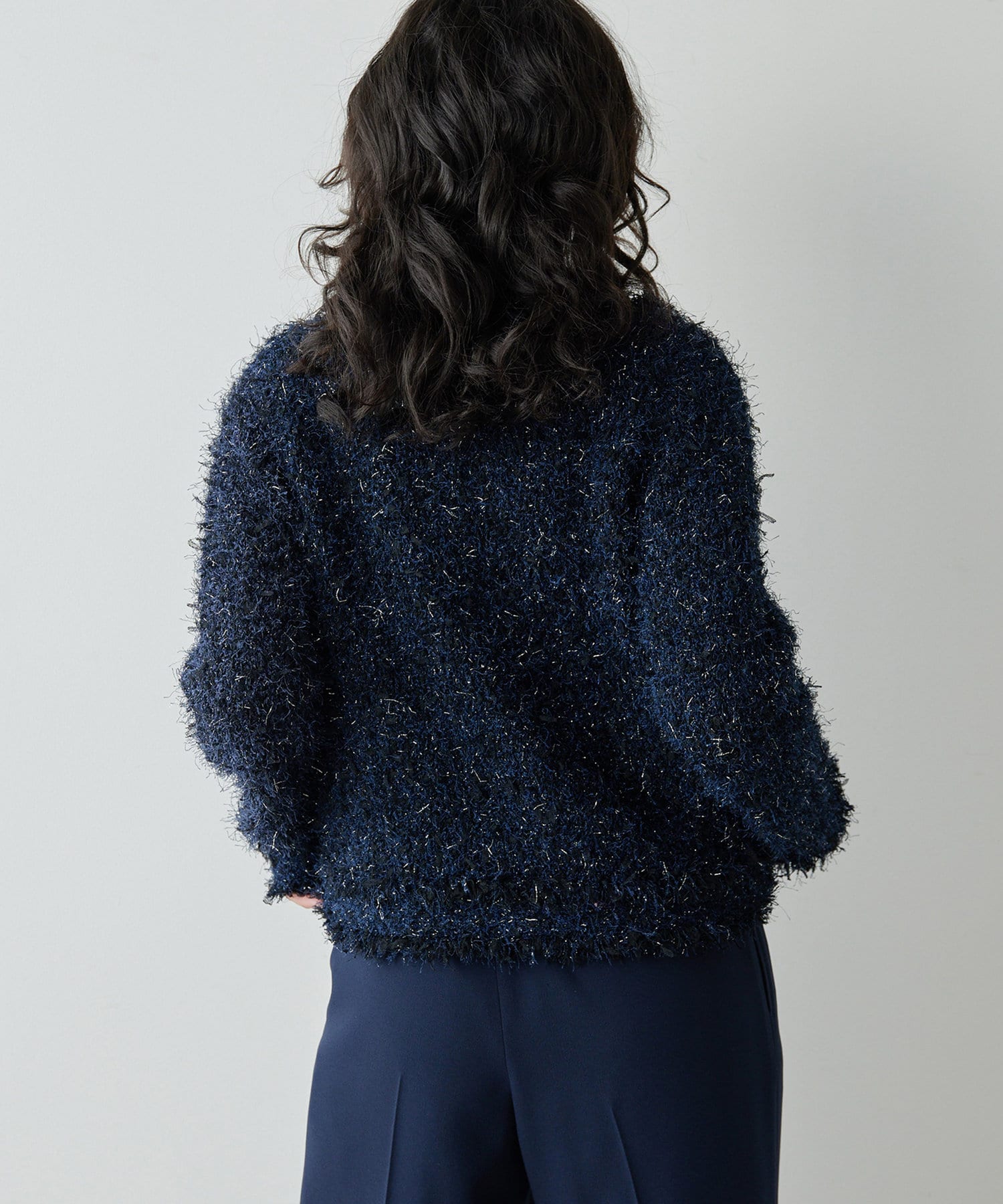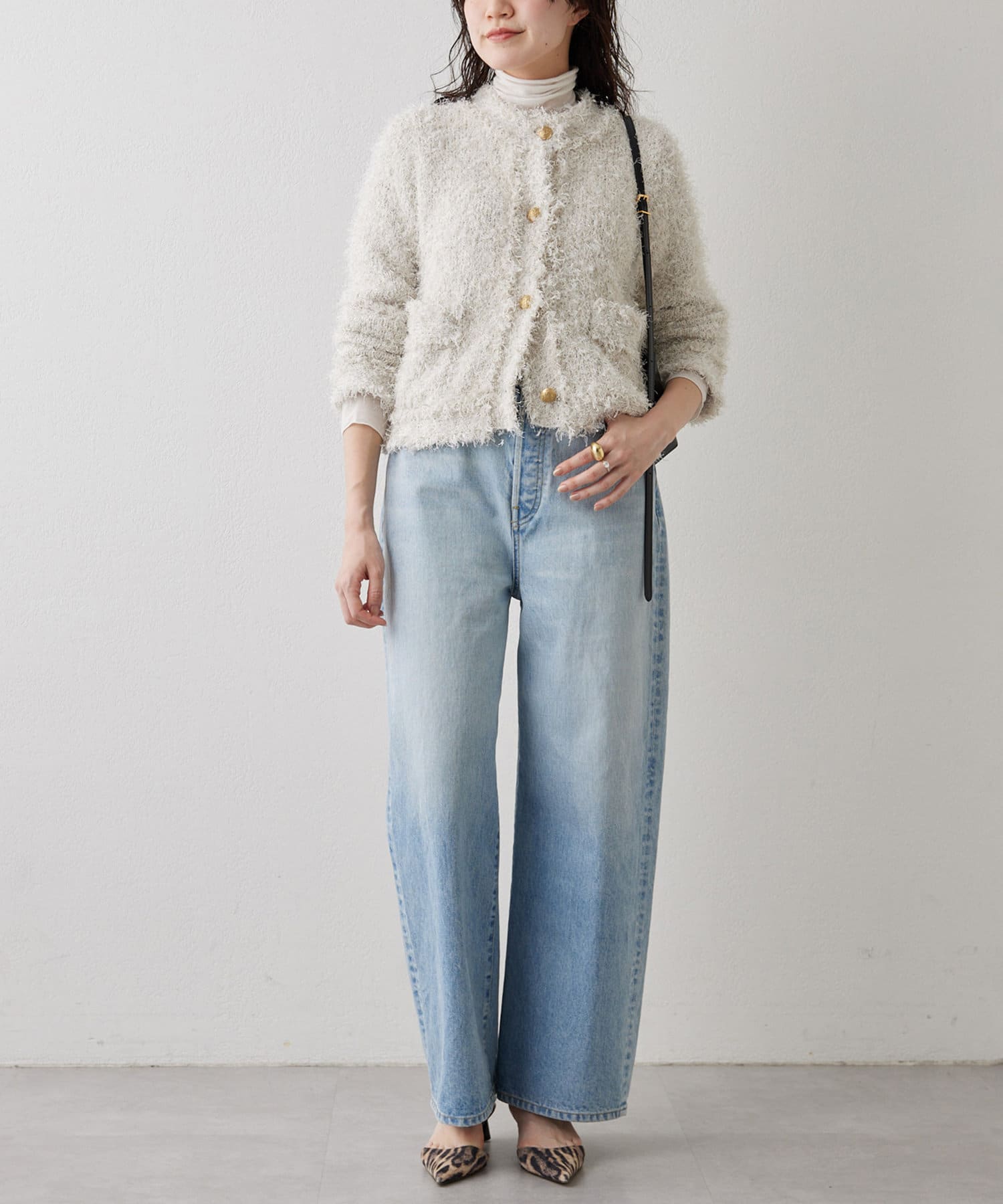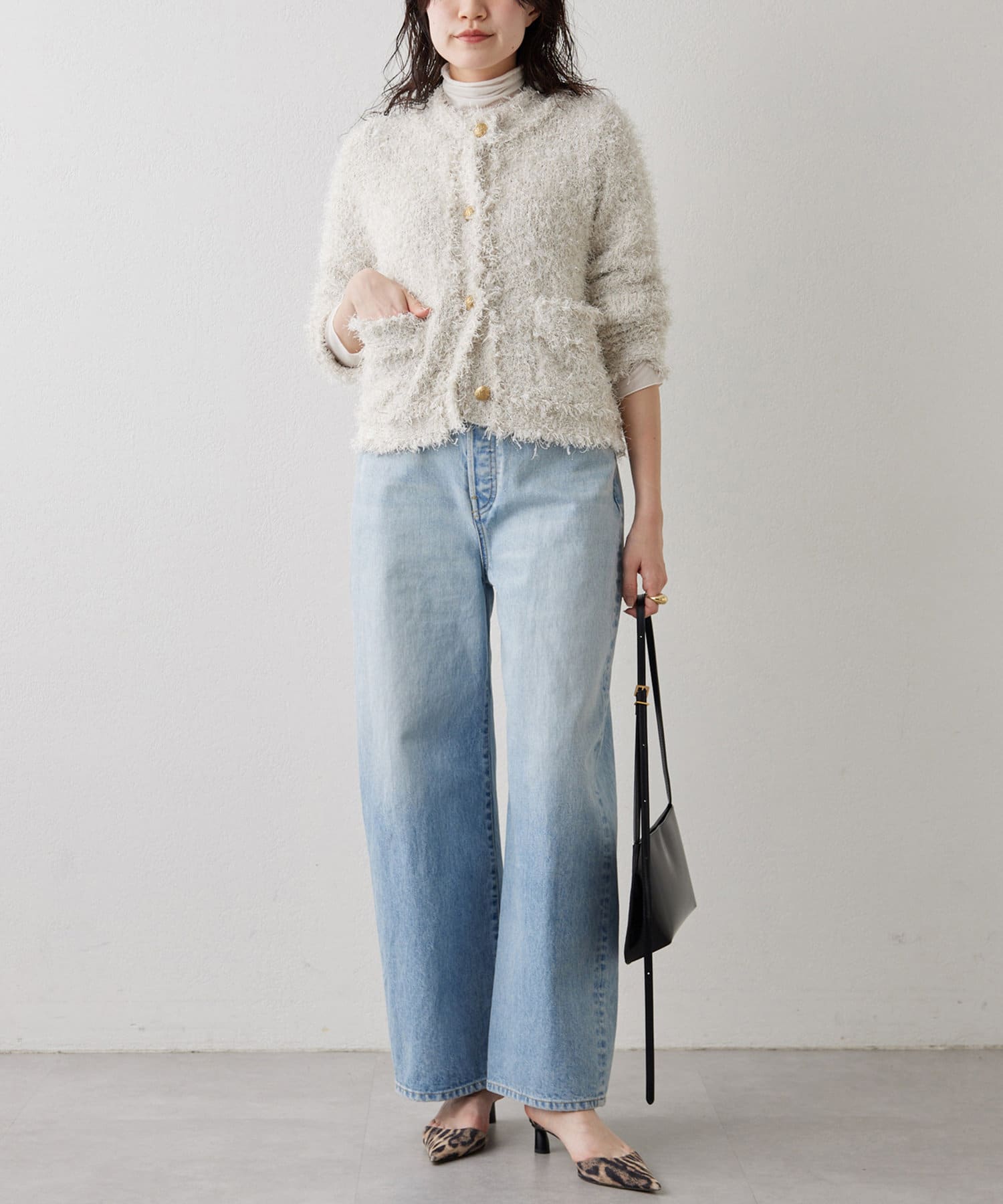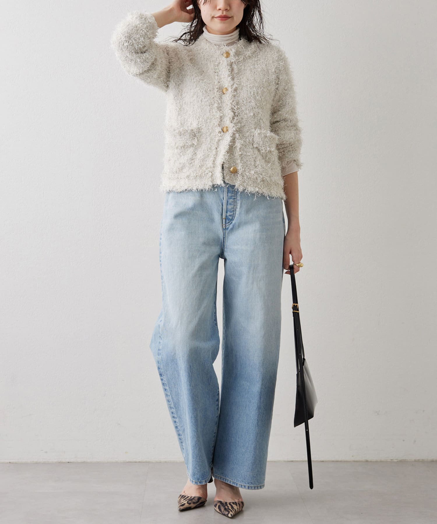 ■ファンシーンヤーンの表情がポイントのニットジャケット。