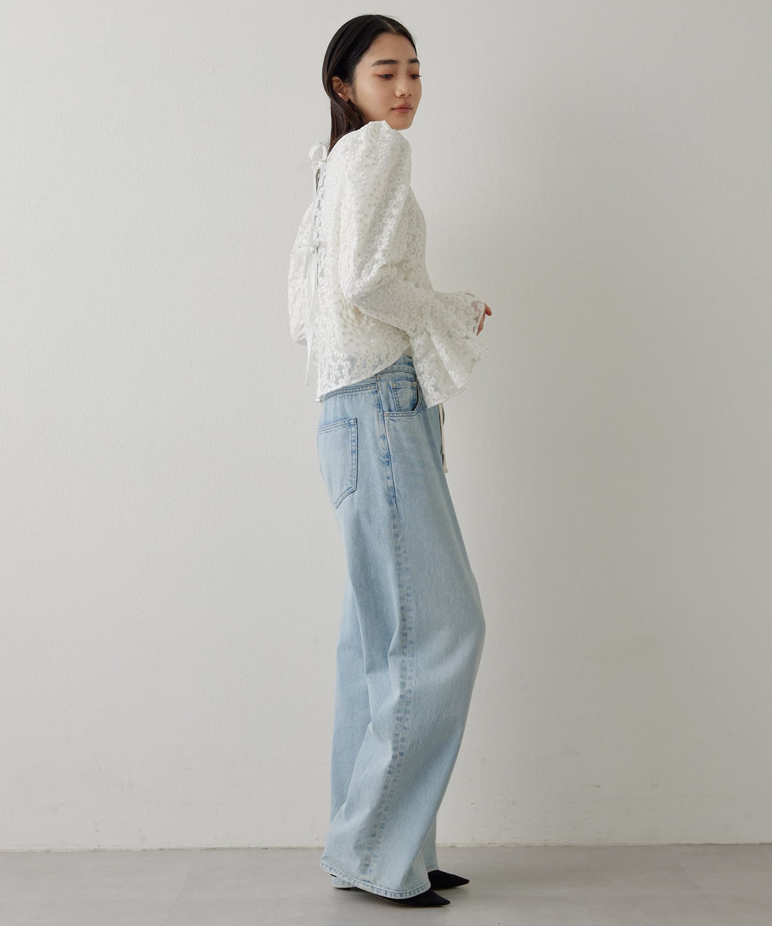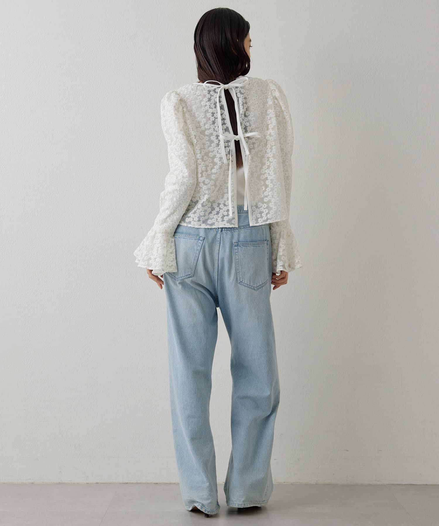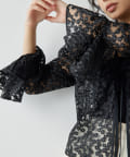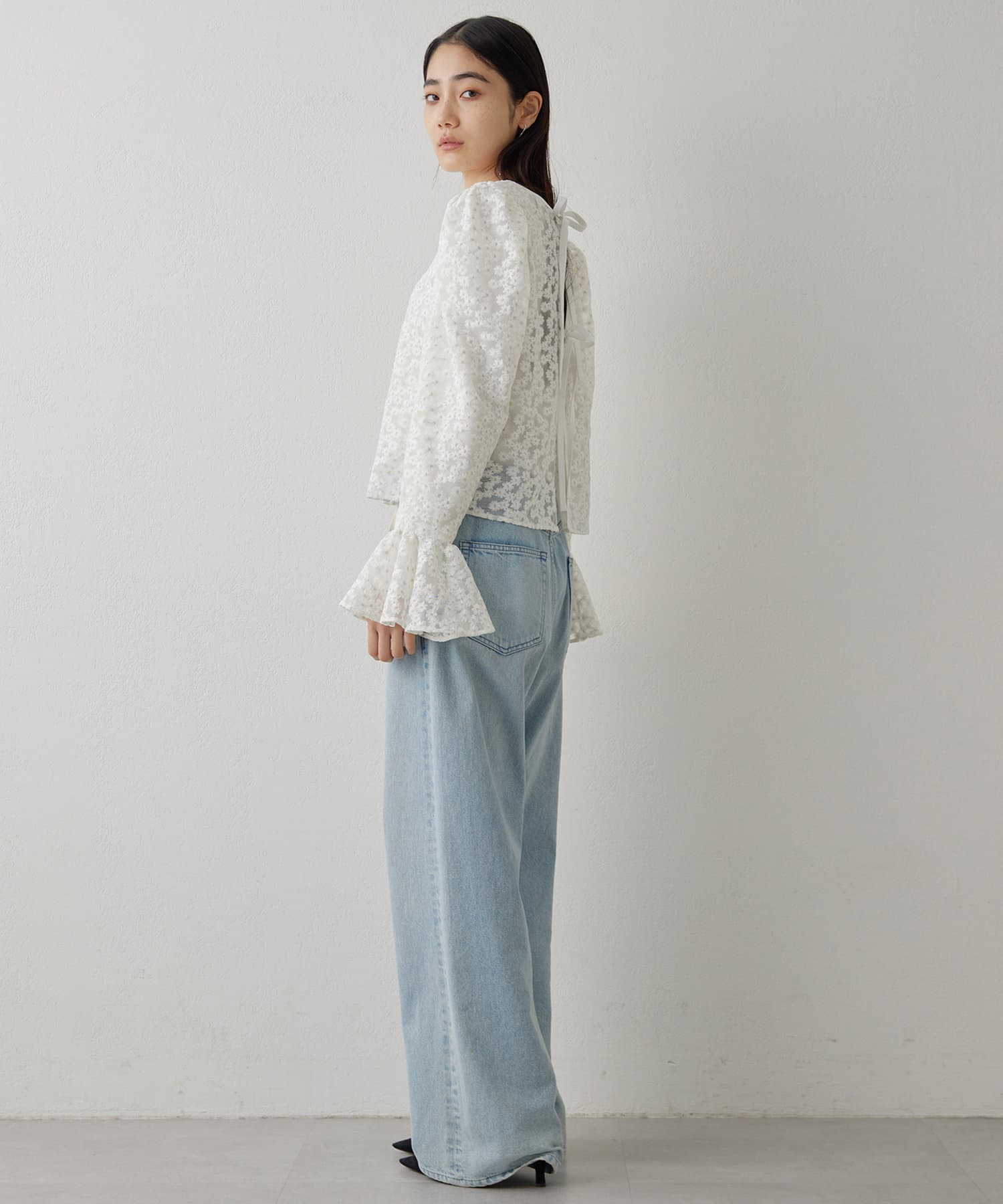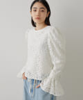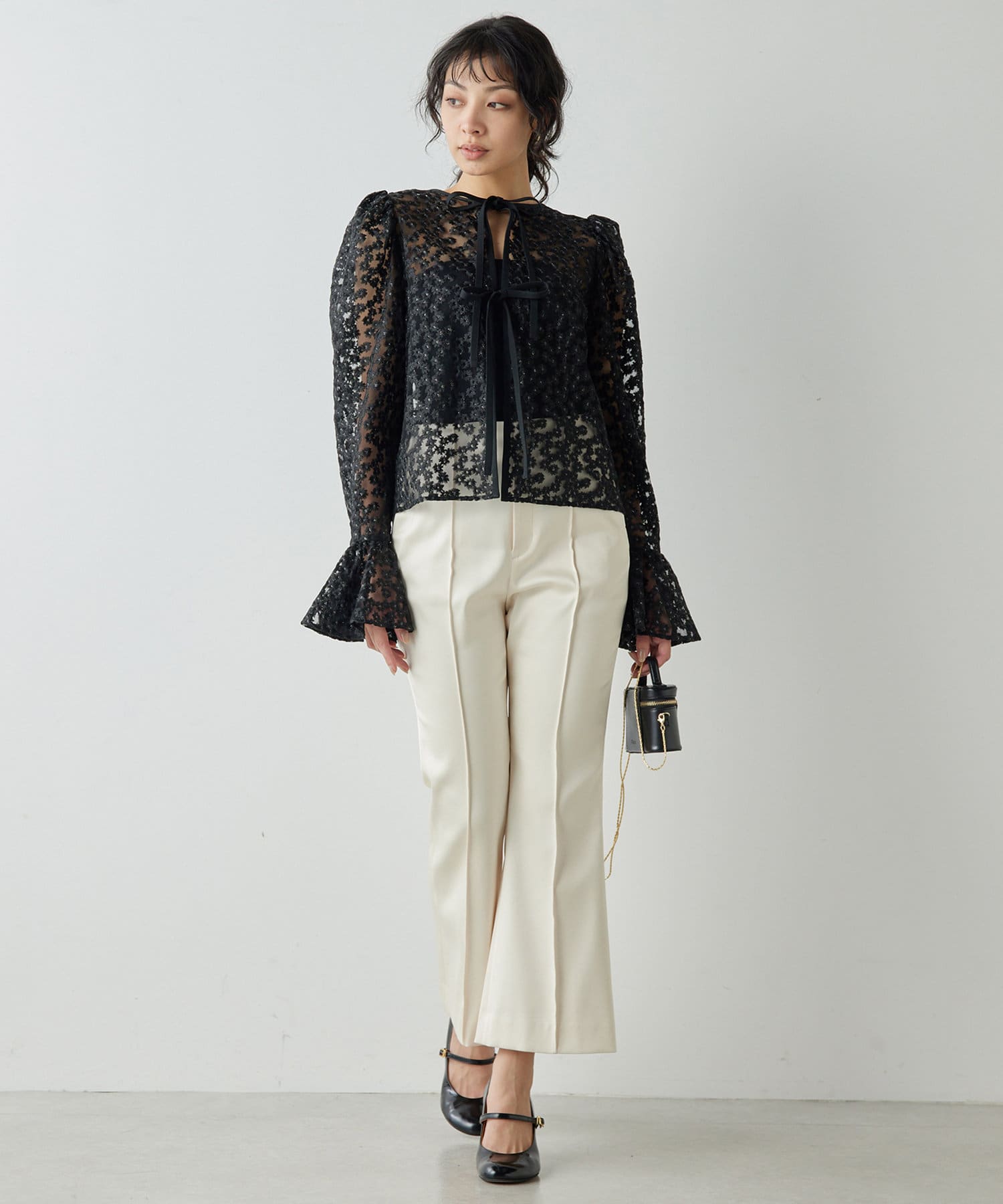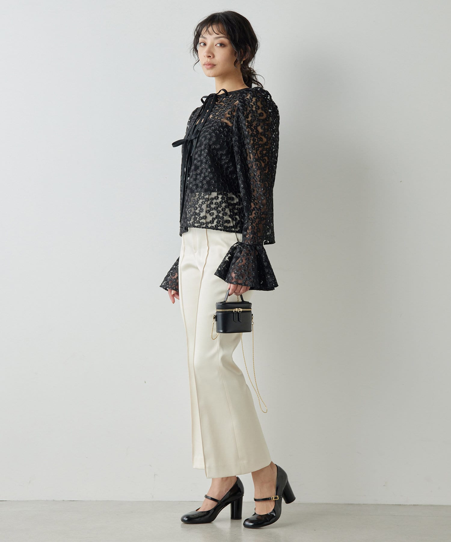 ■チュール素材に刺繍を施した透け感が軽やかなブラウス。