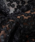 ナイロンのチュールにポリエステルの小花刺繍を施した素材。