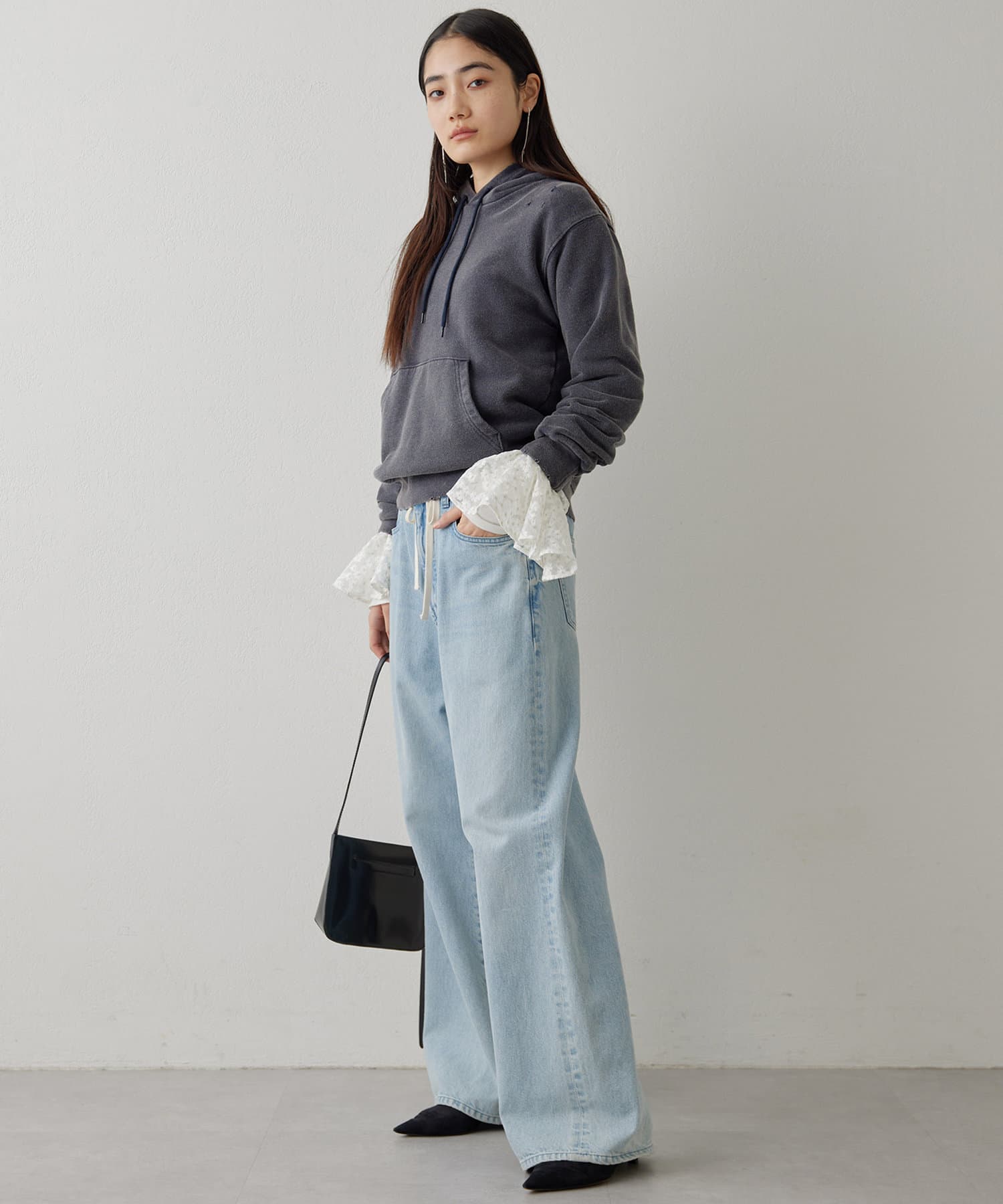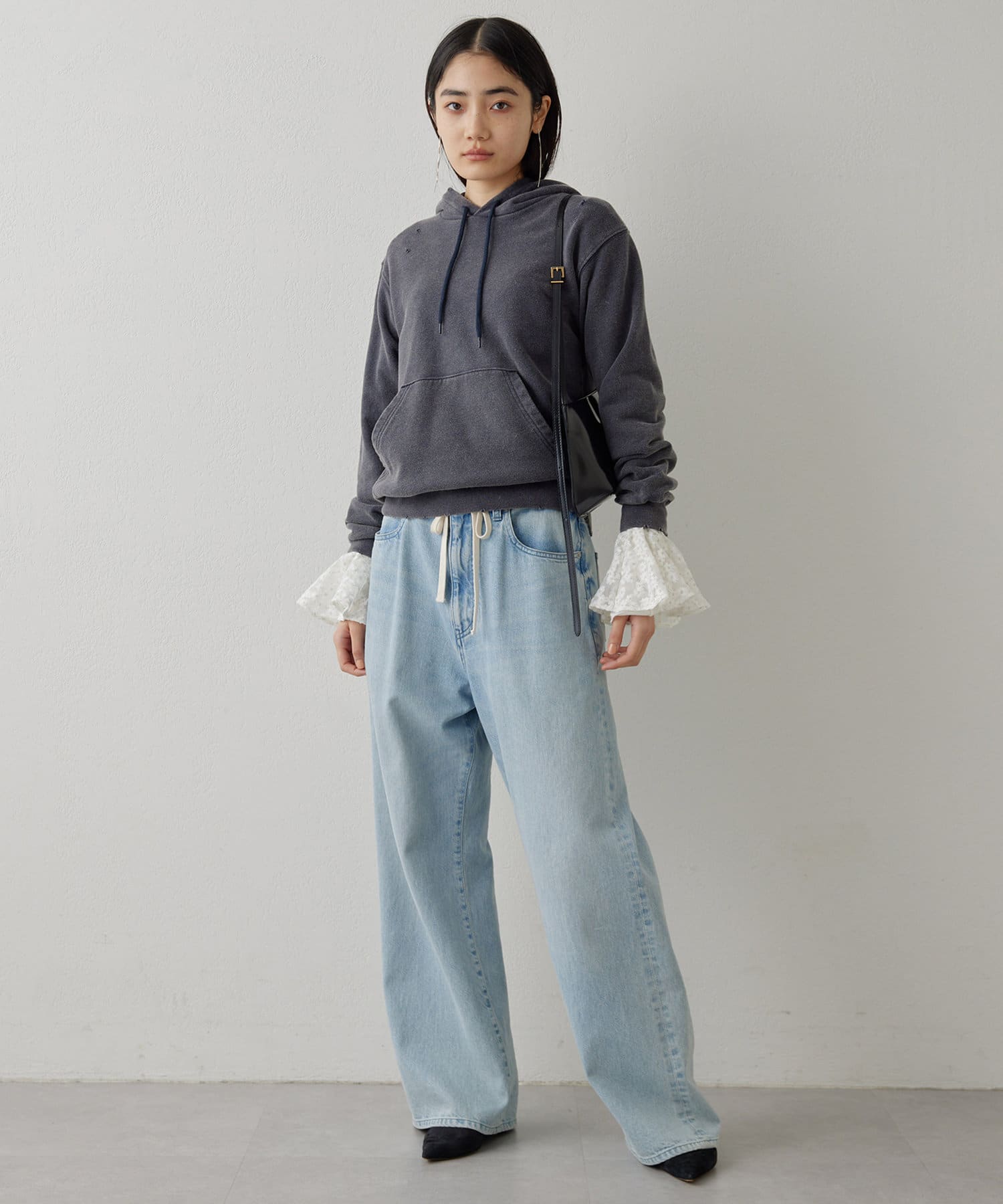 ■一枚で楽しむのはもちろん、ニットのインナーに重ねて袖のフリルを覗かせるのもおすすめ。