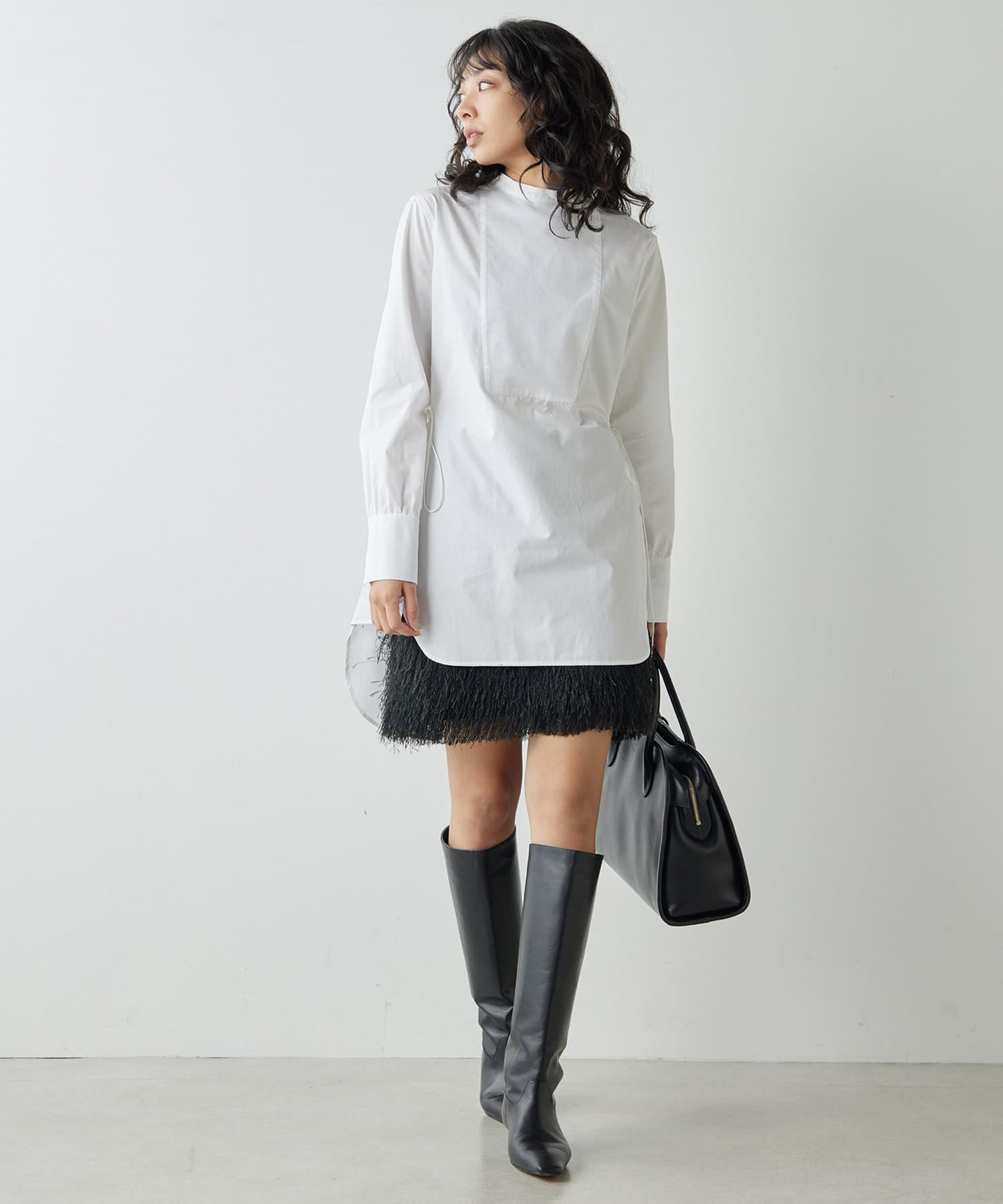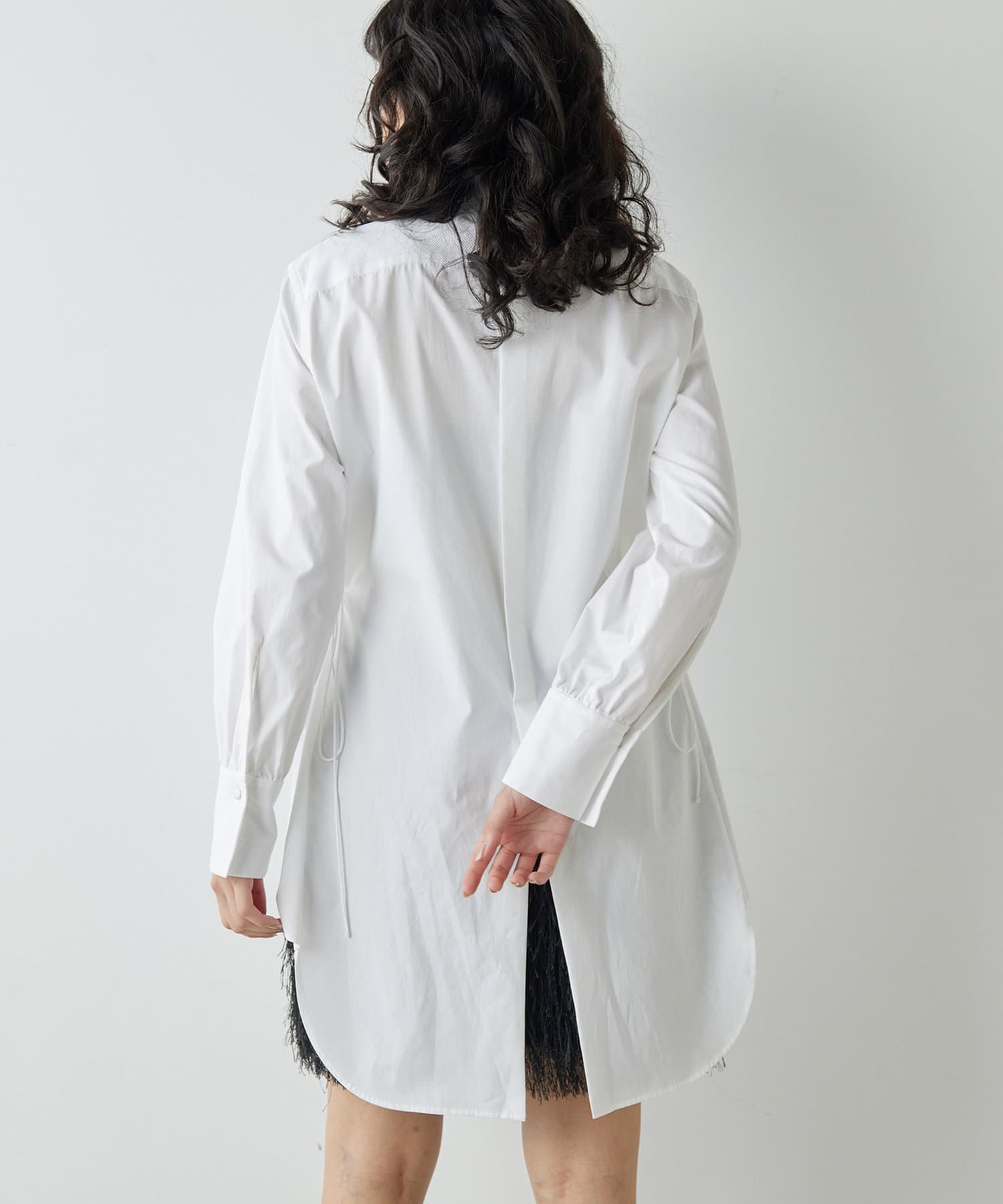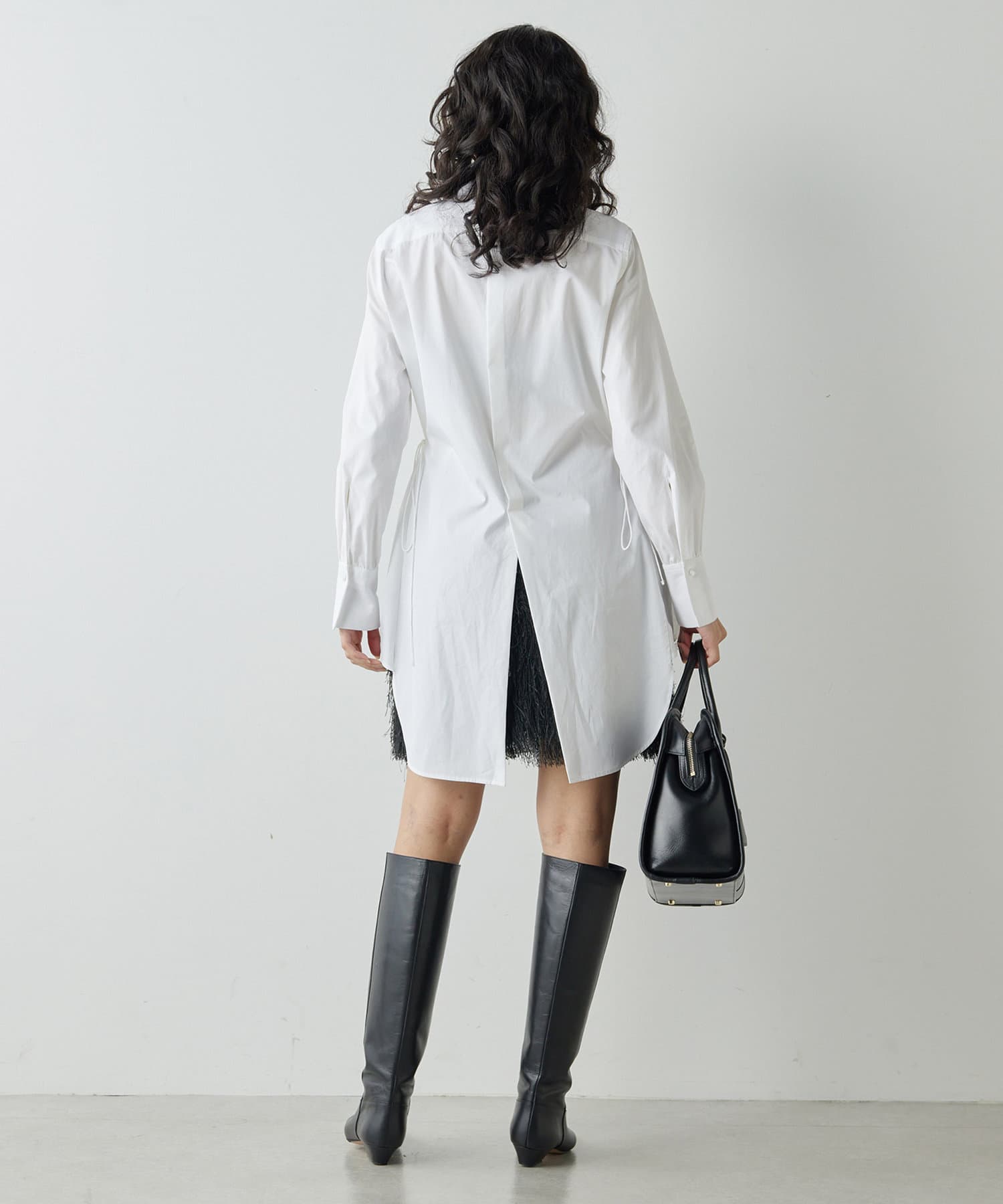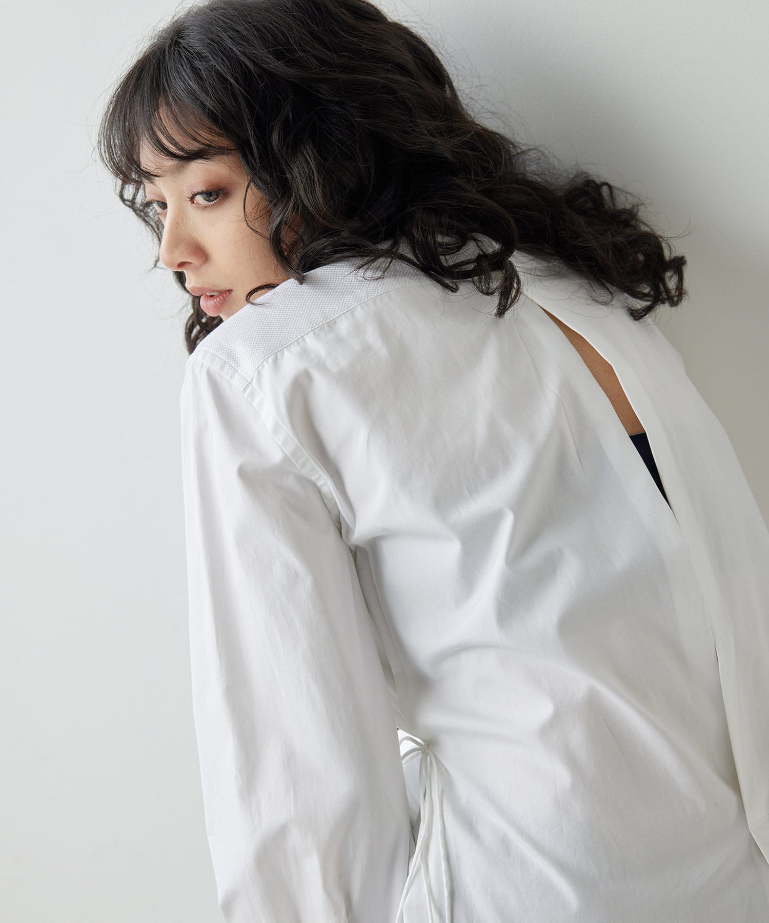 ■両脇にあしらった共紐でシルエットを調整でき、結んだり垂らしてアレンジしても◎。
