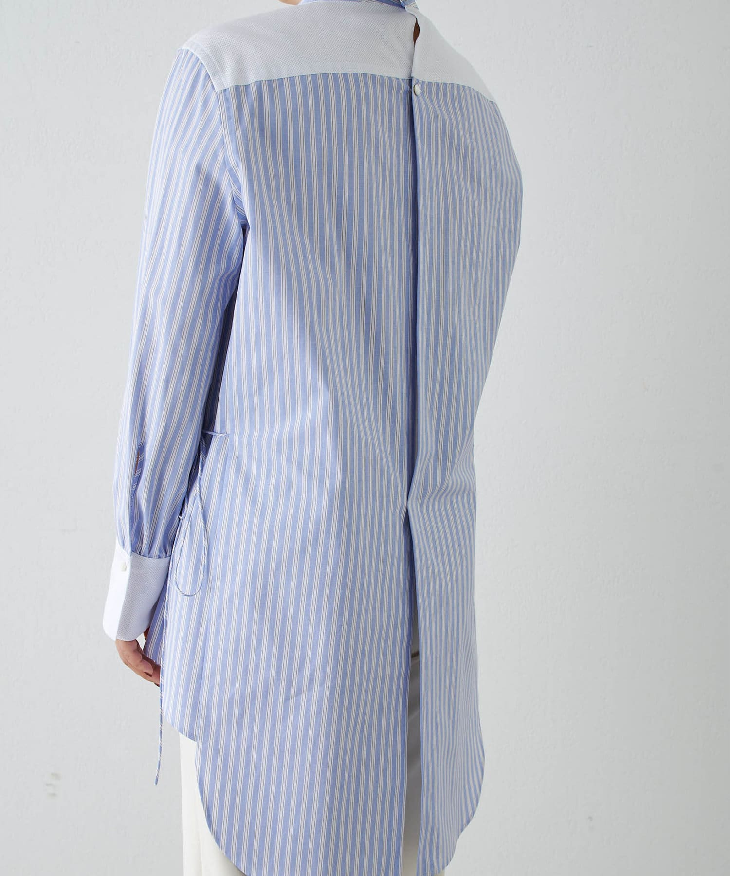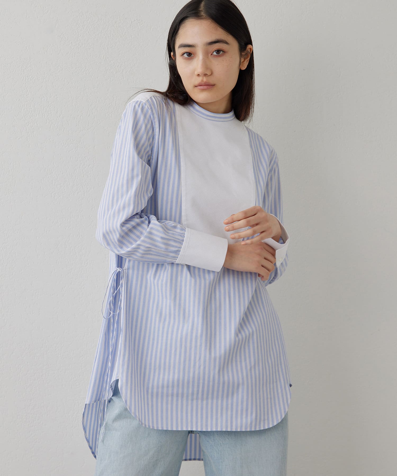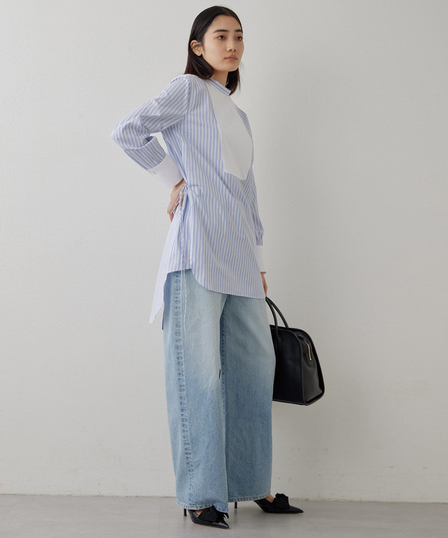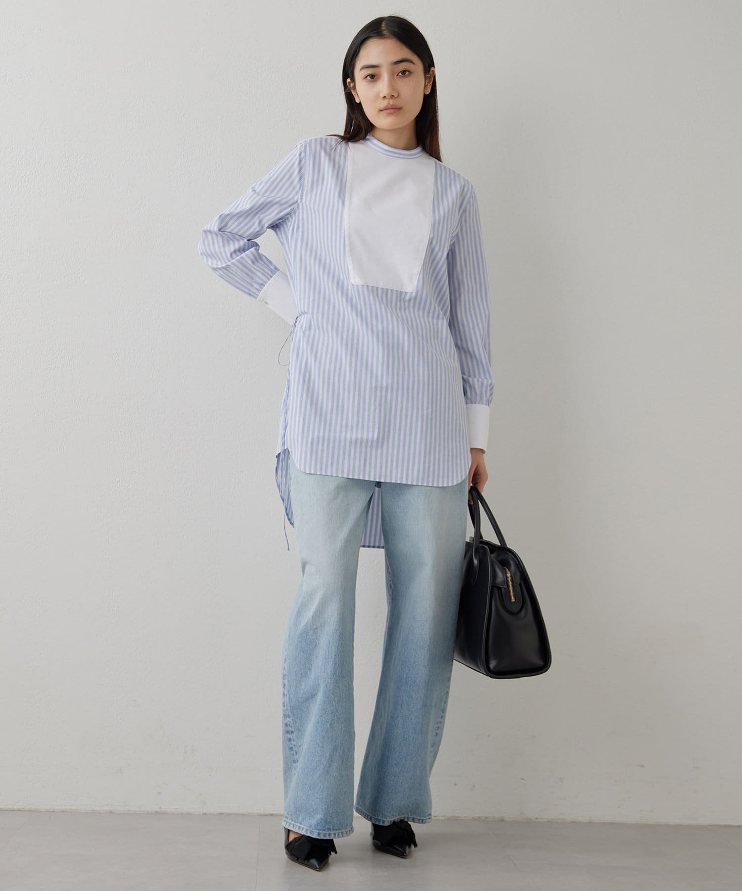 ■両脇にあしらった共紐でシルエットを調整でき、結んだり垂らしてアレンジしても◎。