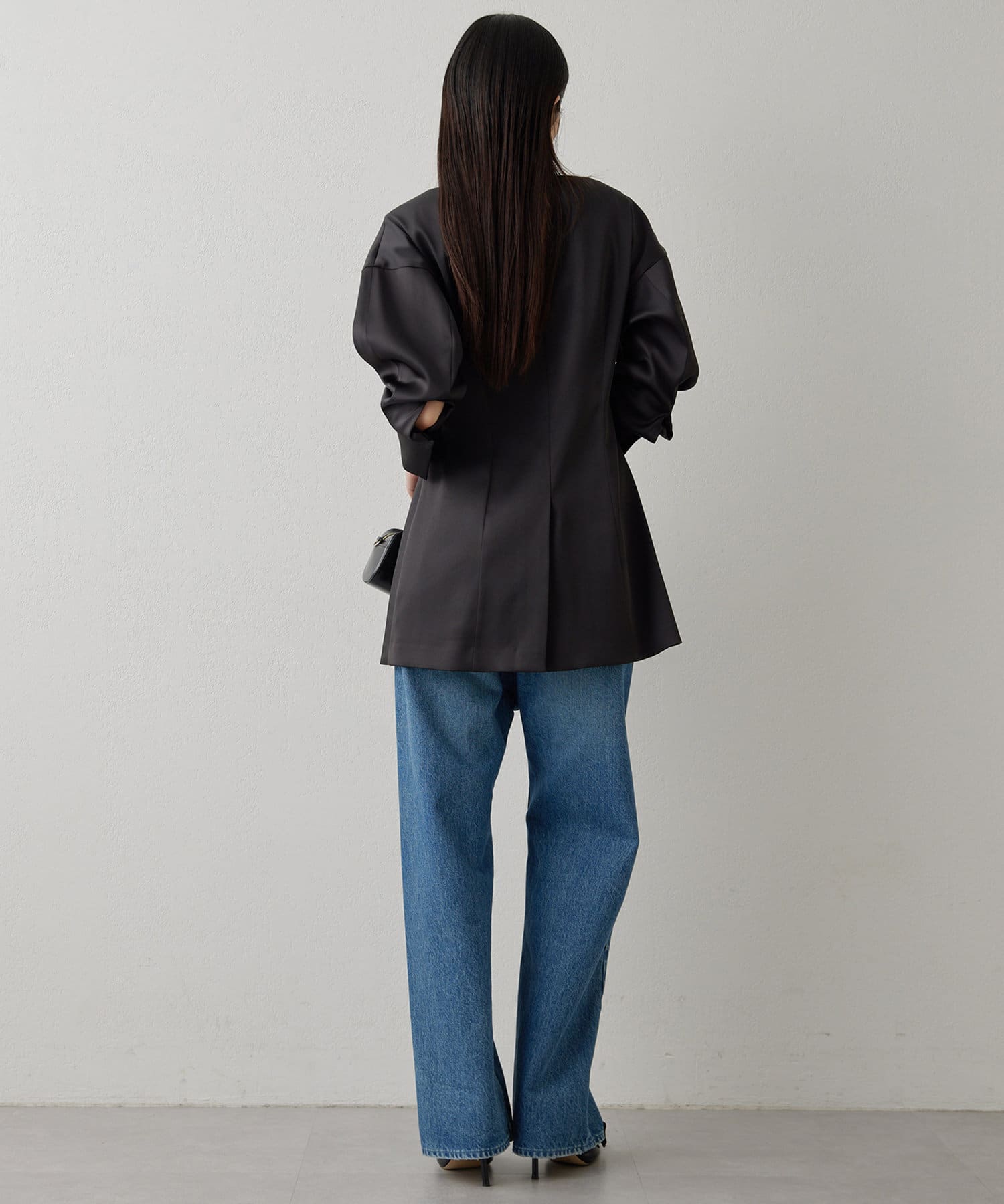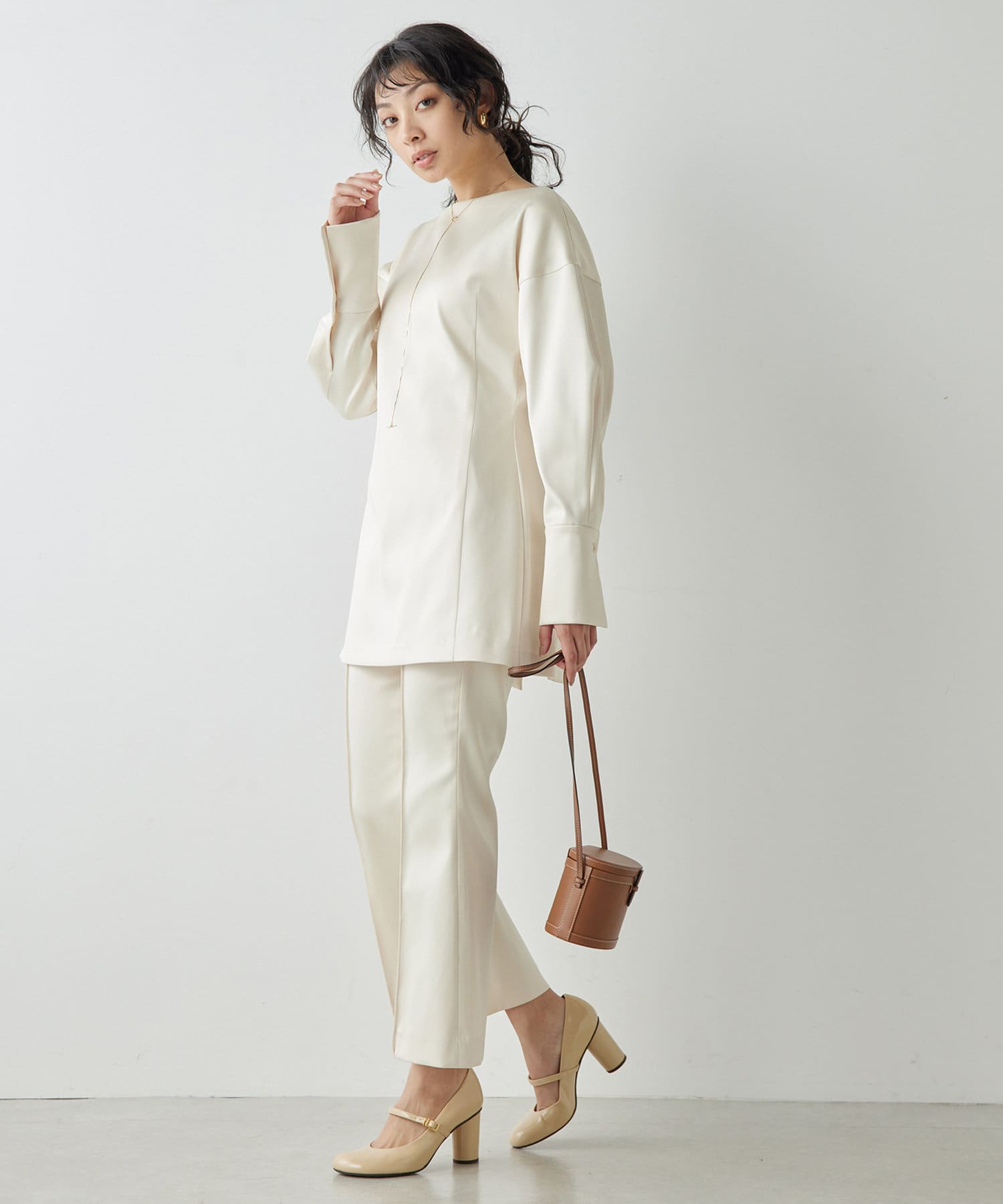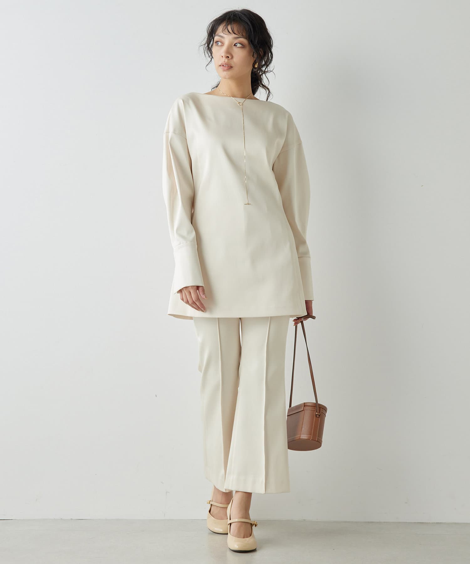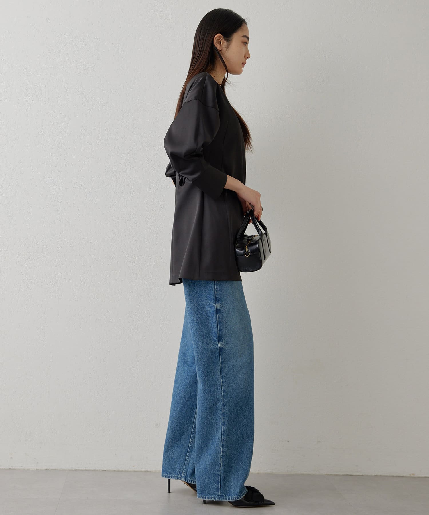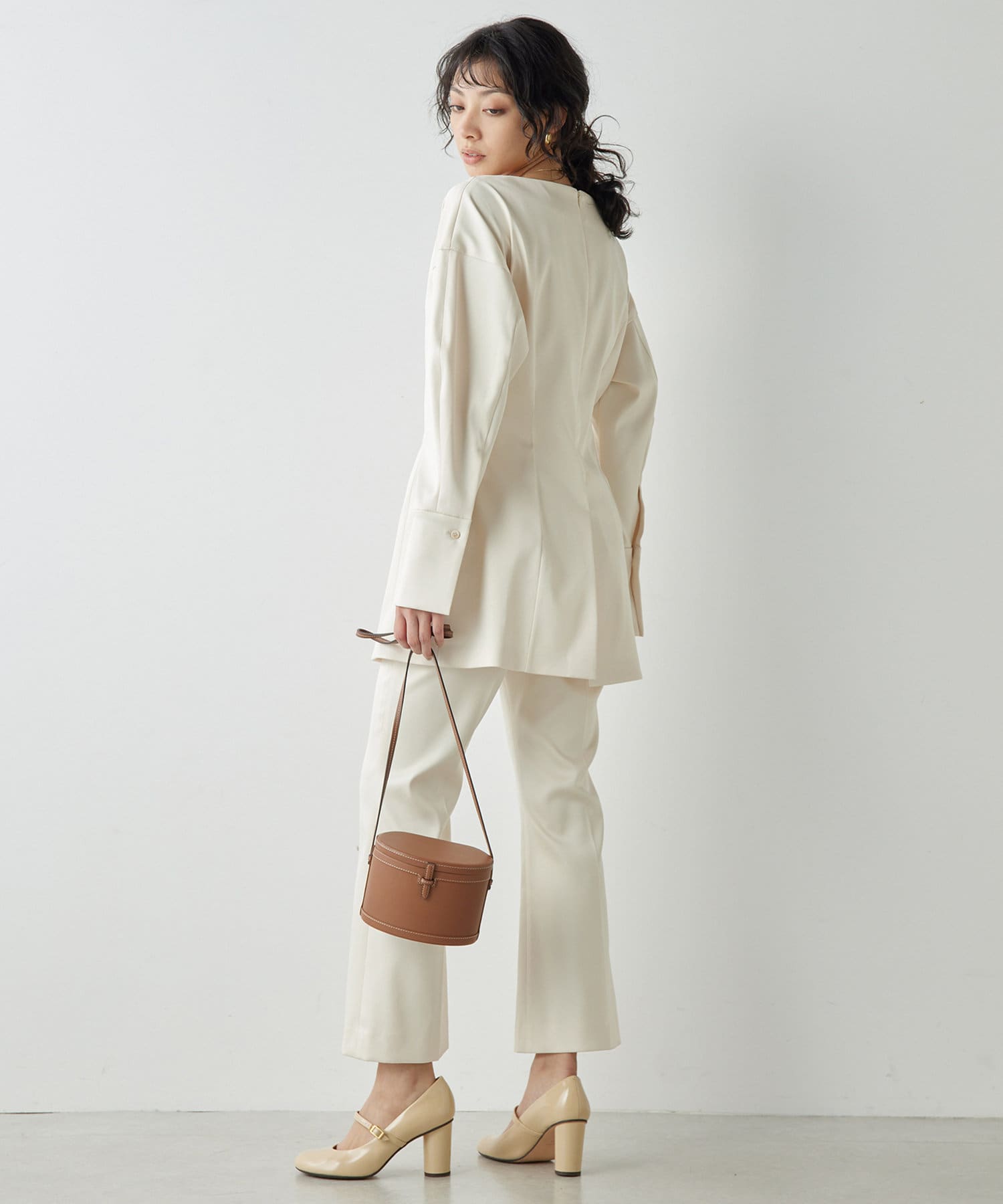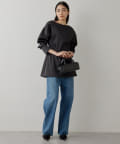 ■同素材のストレッチサテンフレアパンツ(ブランド品番:WGZ1051102A0003)とのセットアップもおすすめ。