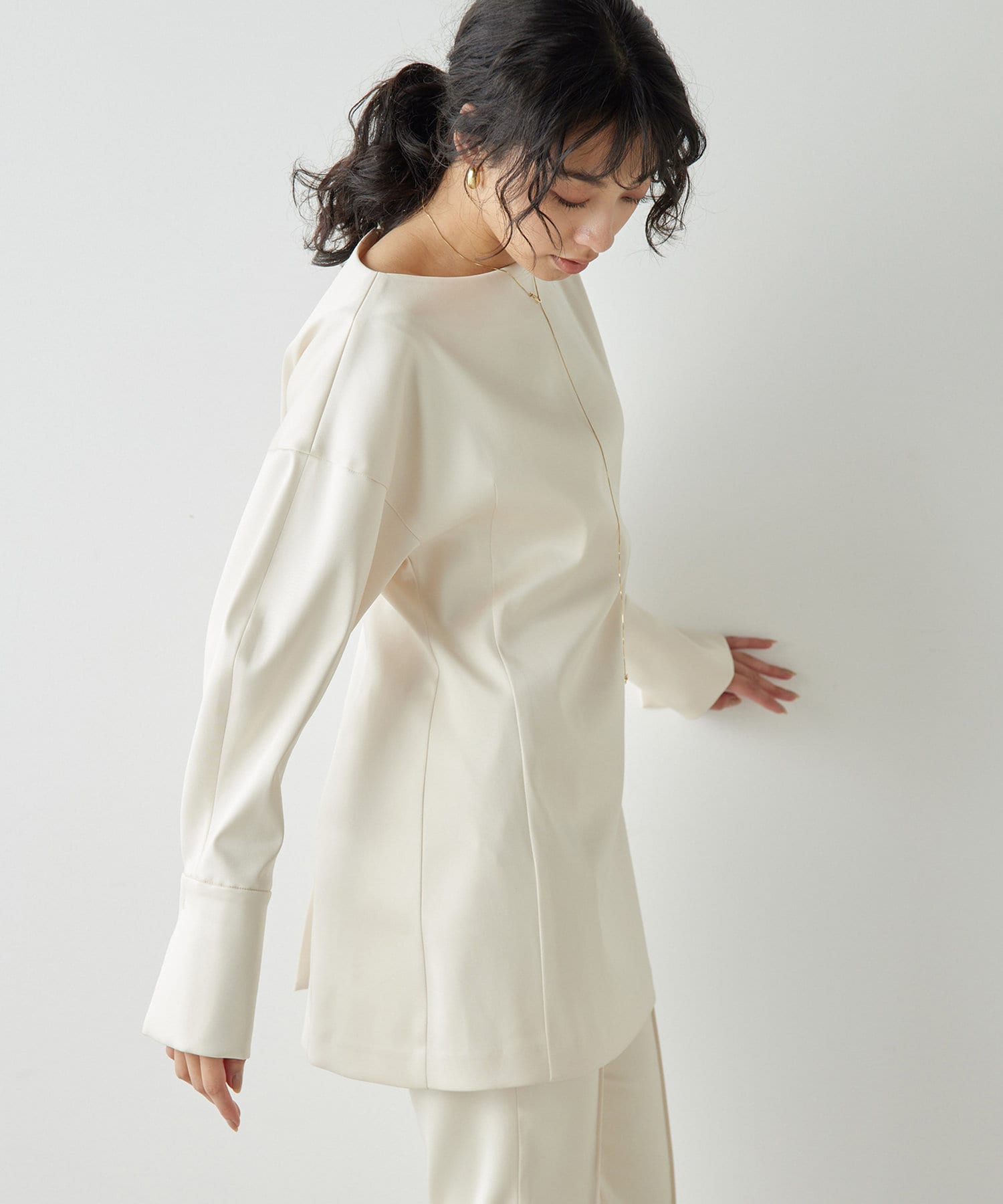 ■ヒップをさりげなくカバーする長めの着丈もポイント。