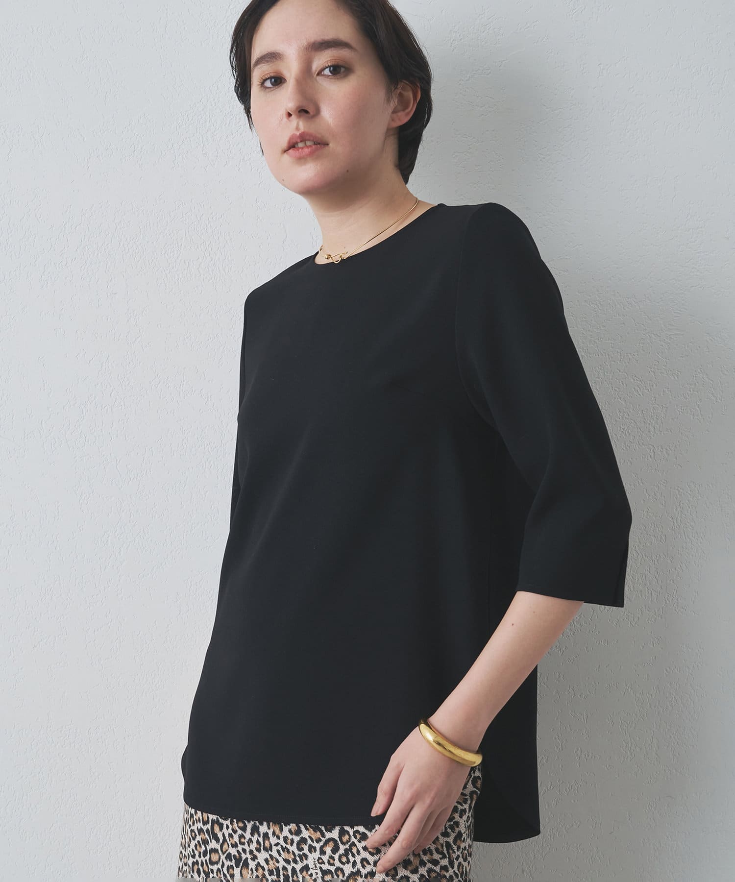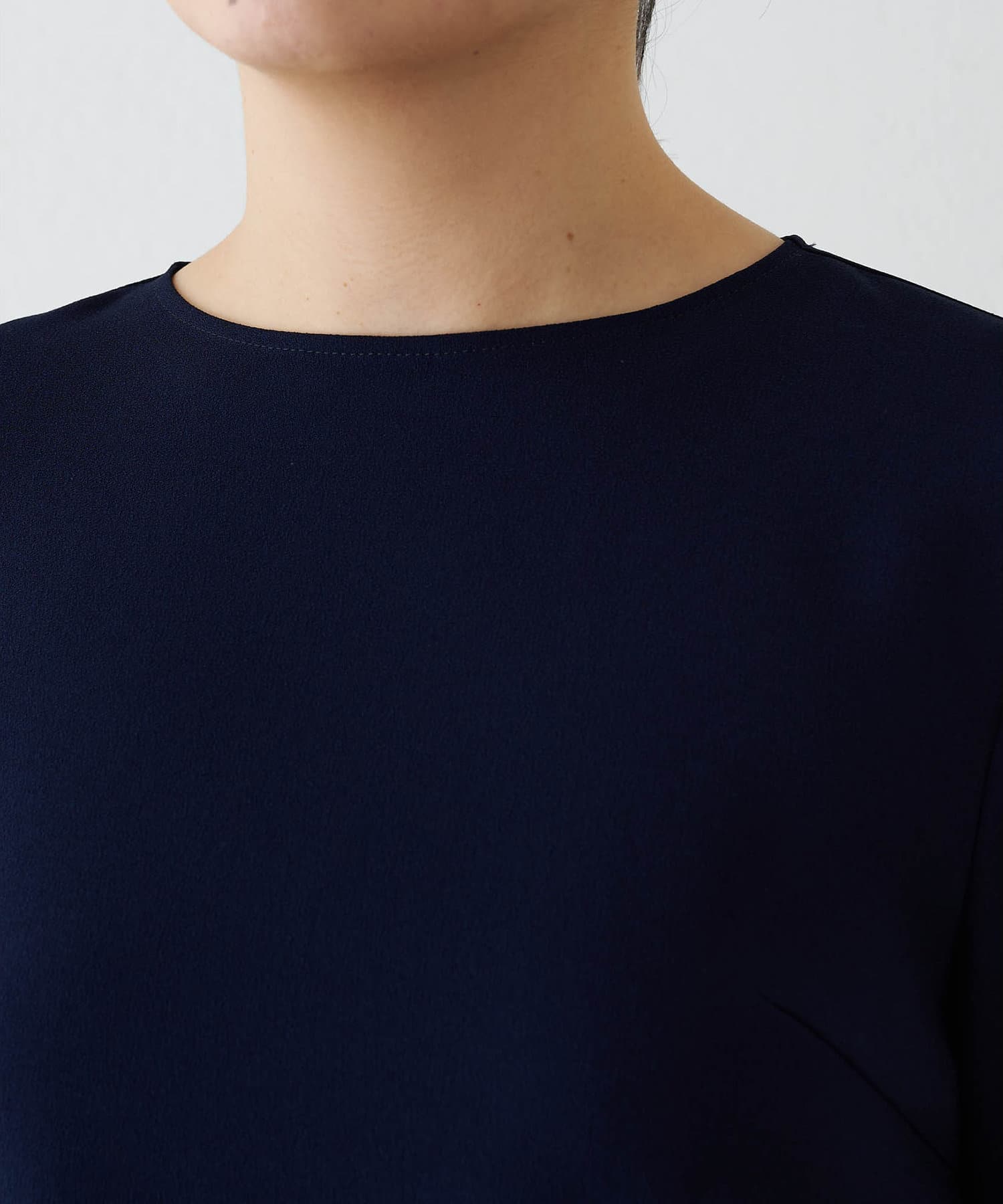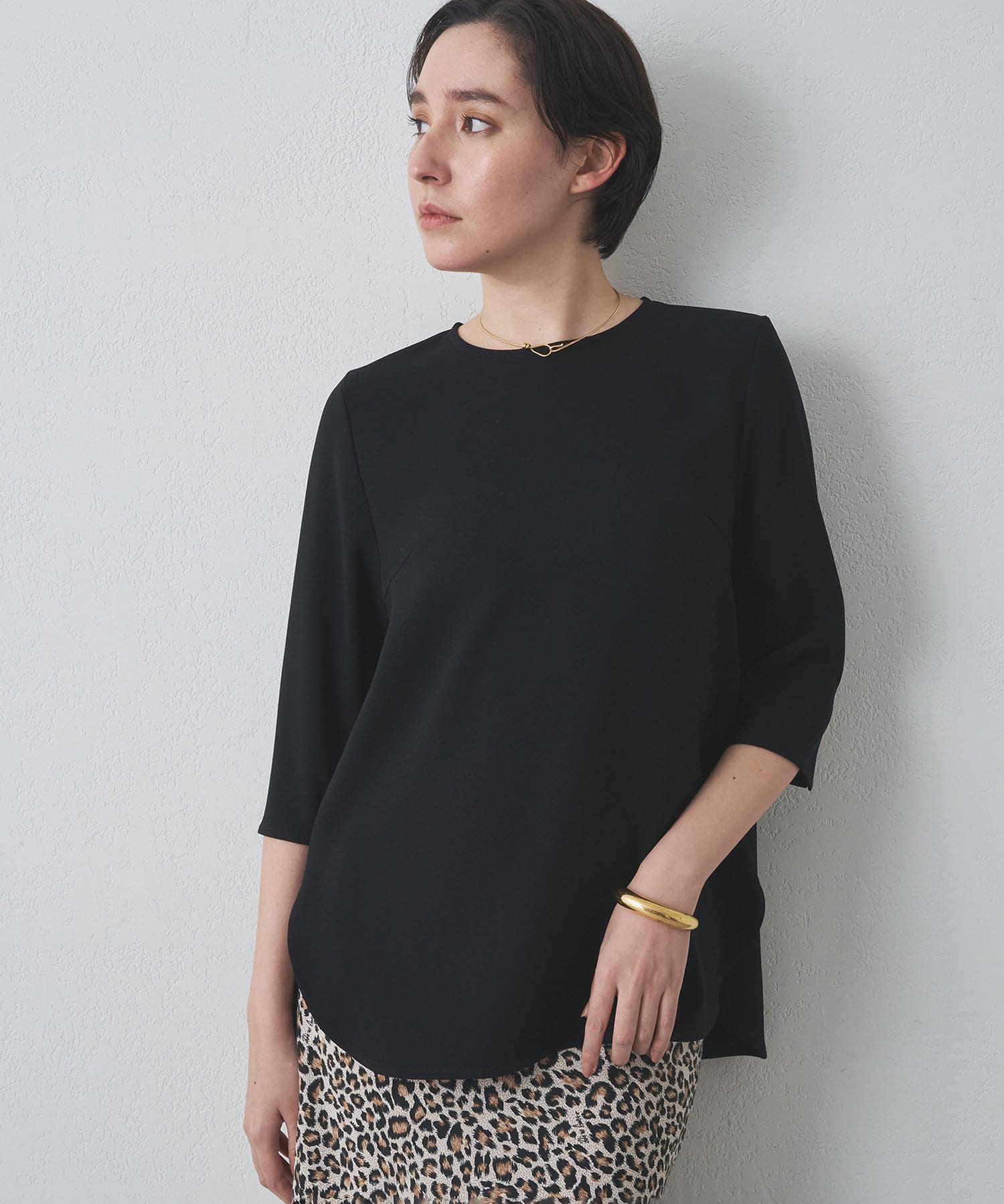 シーンレスに活躍できる、シンプルなクルーネックブラウス