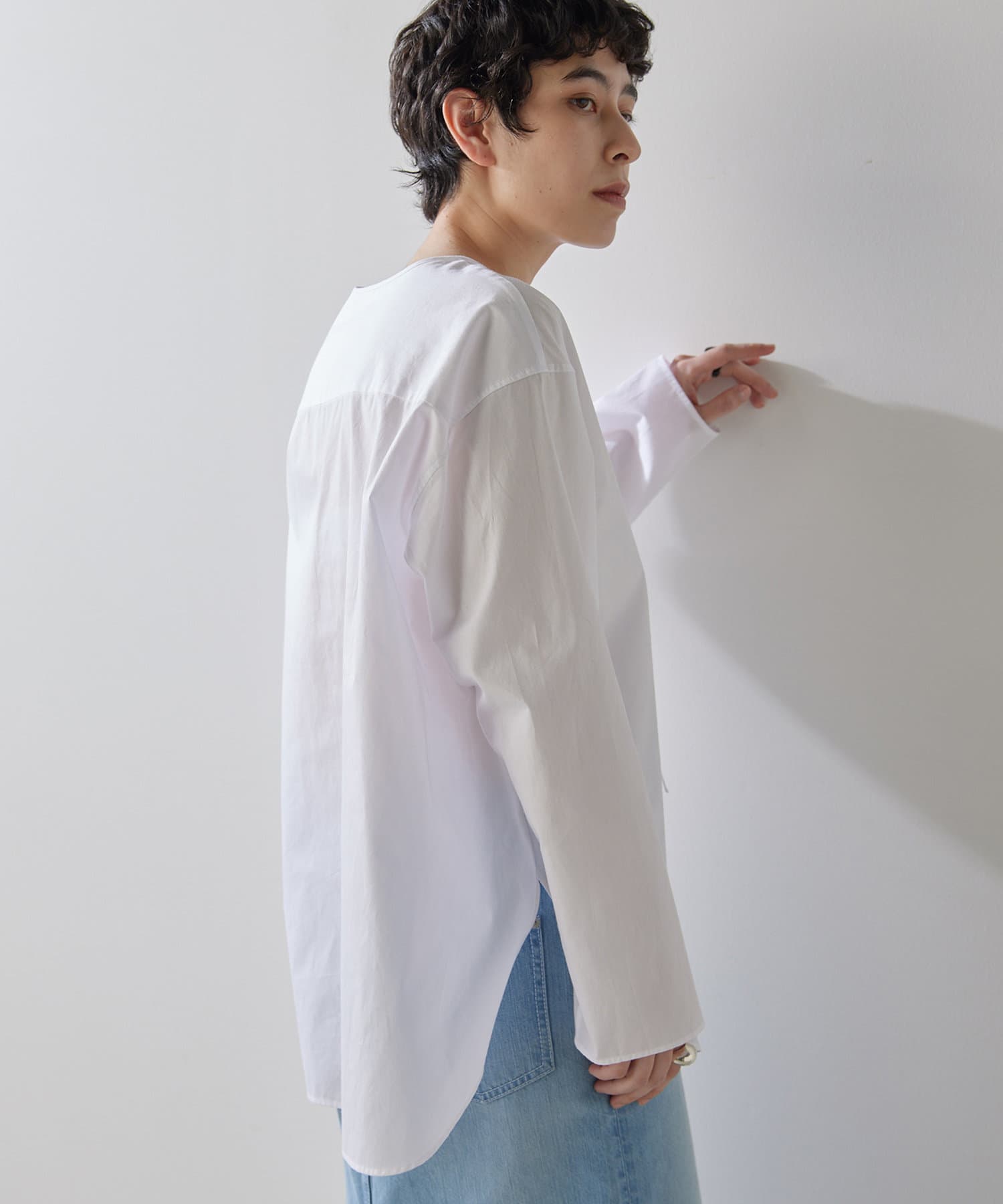 ■ラウンドヘムが抜け感をプラスし、ボトムインでもアウトでもサマになるのも◎。