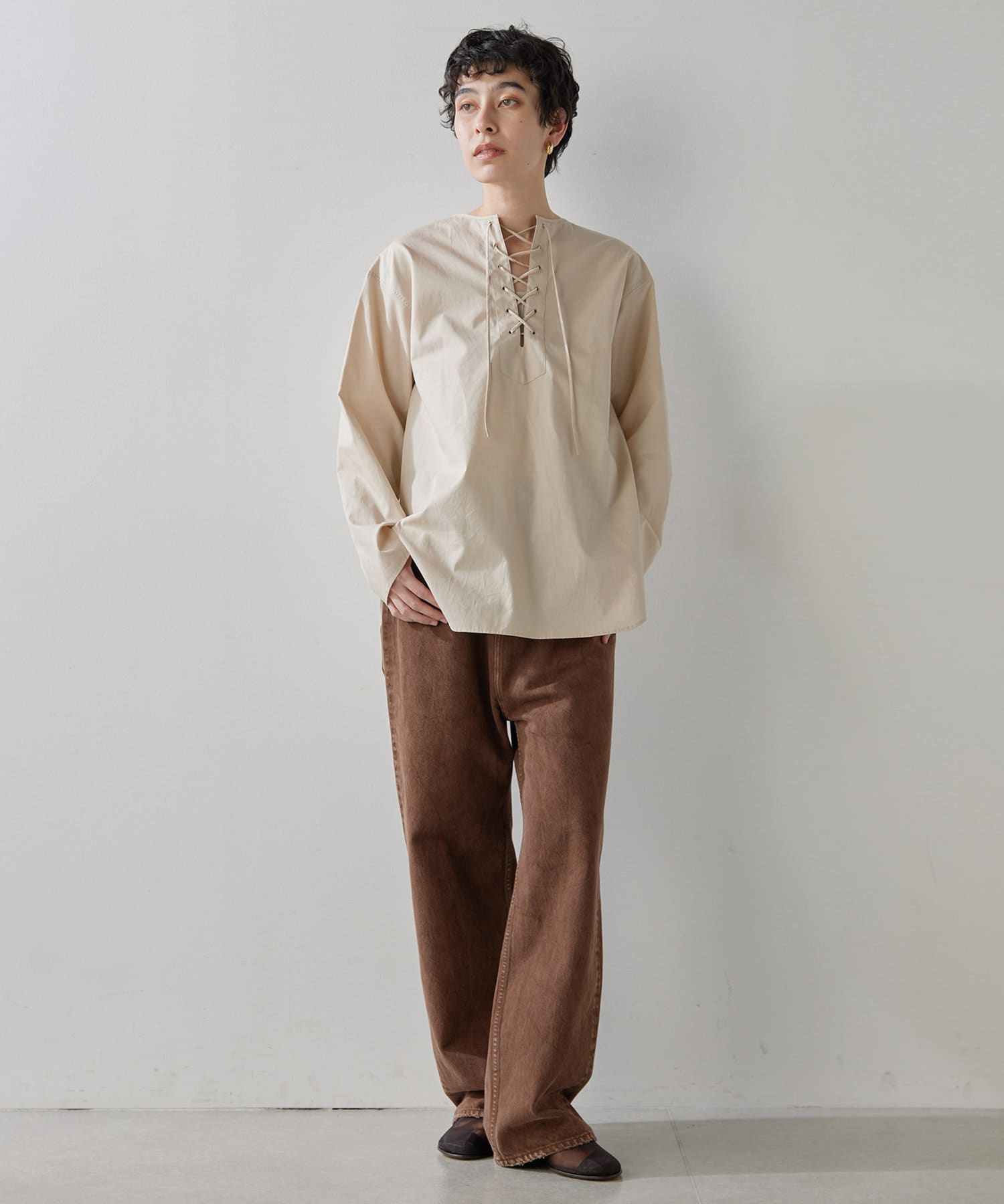 ■ボトムを選ばず、カジュアルからきれいめまで幅広いスタイリングを楽しめるアイテム。