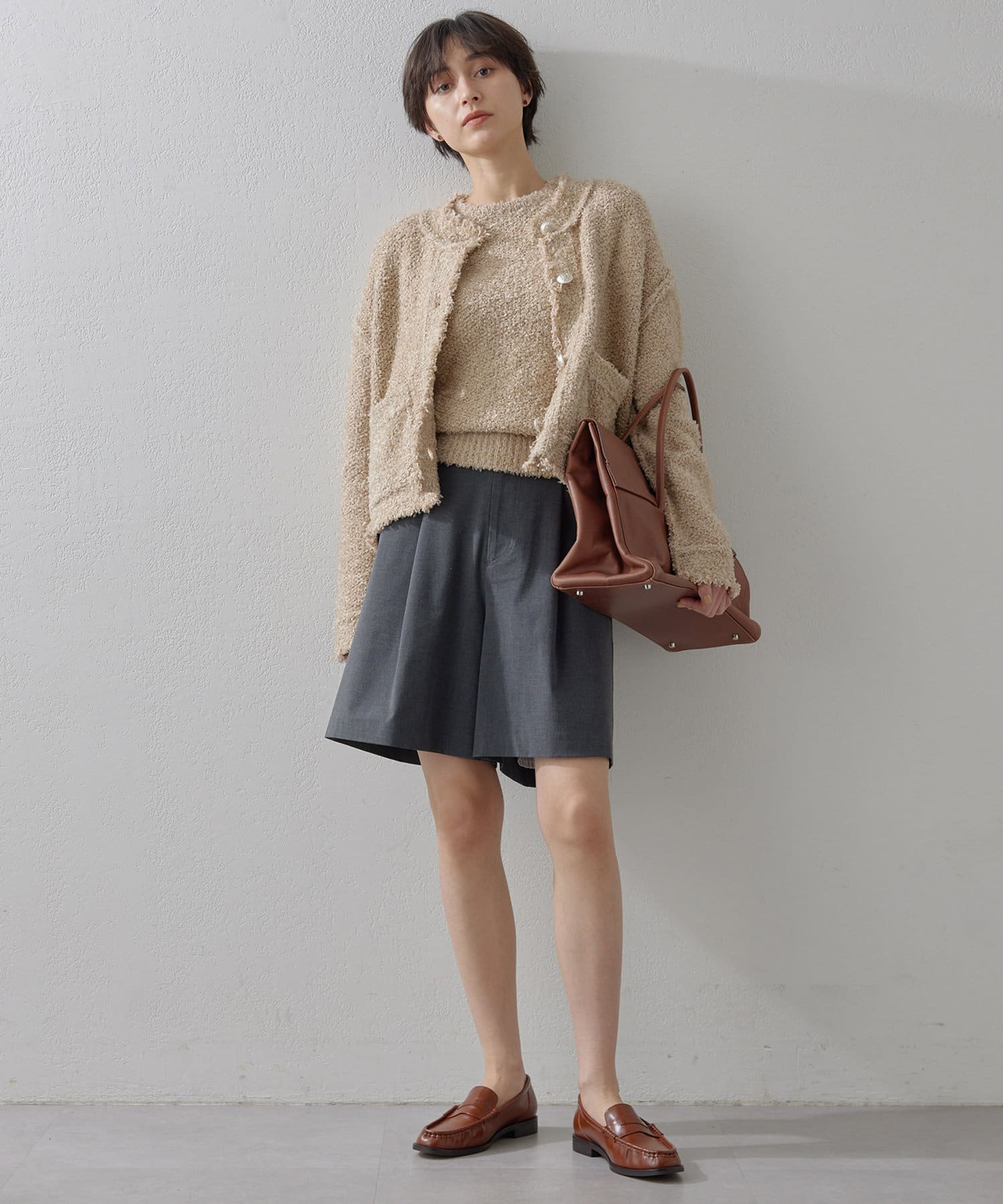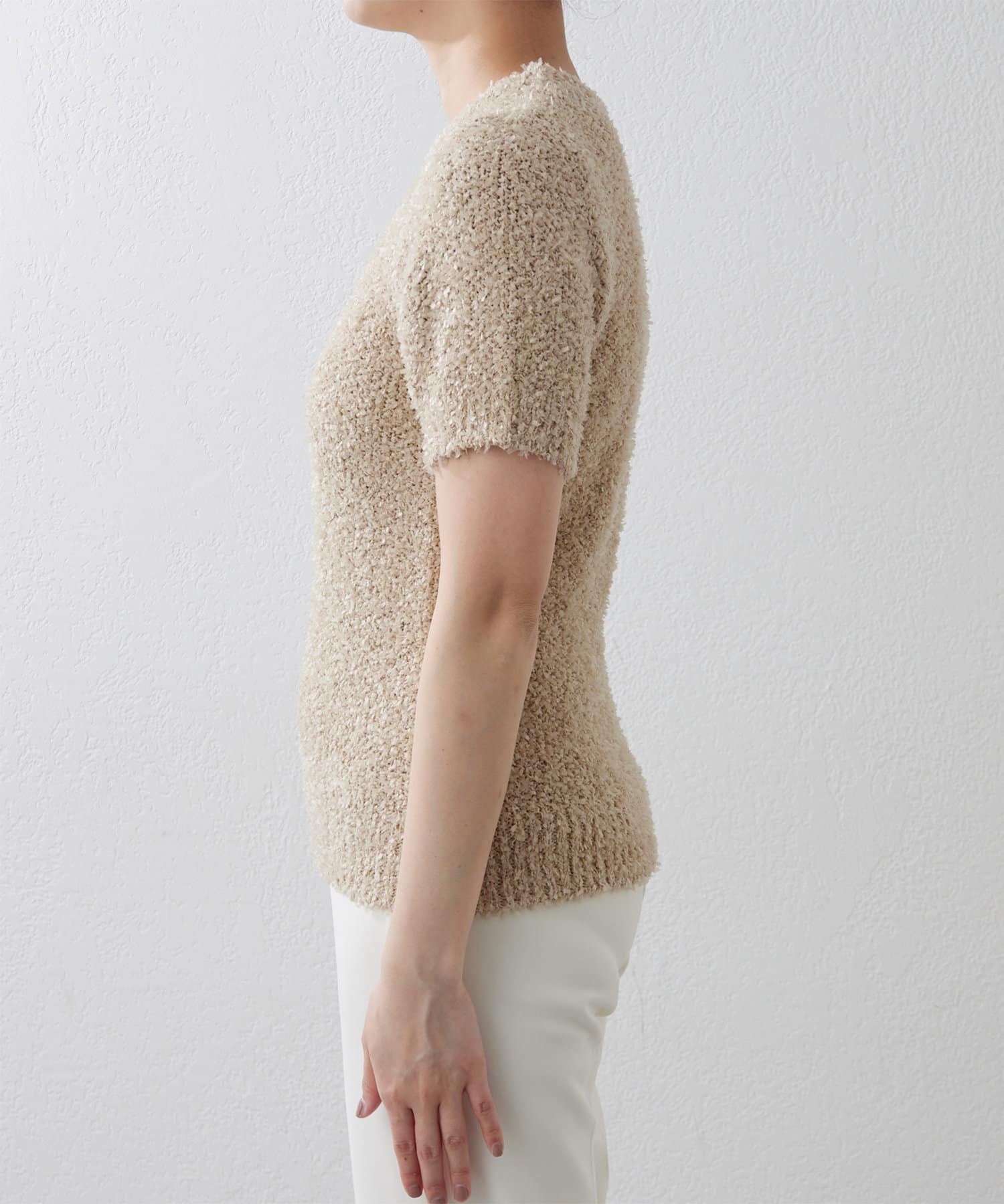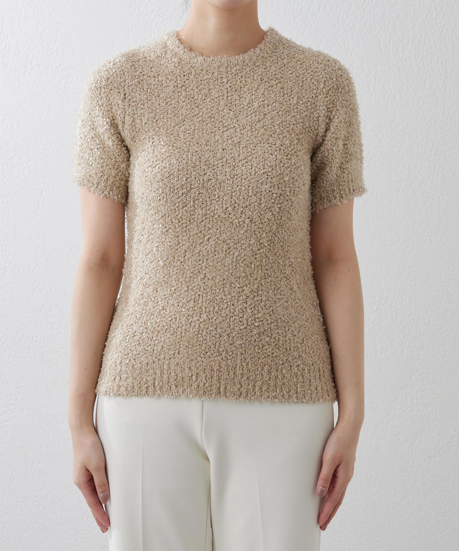 ツイードライクな表情が魅力的な、大人の半袖ニット