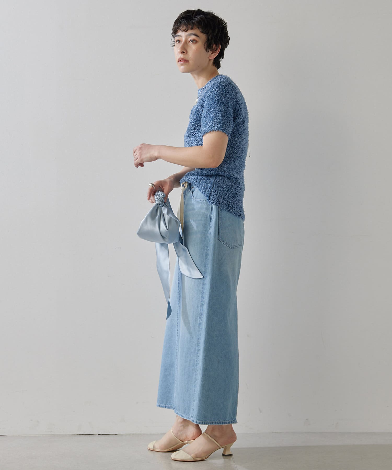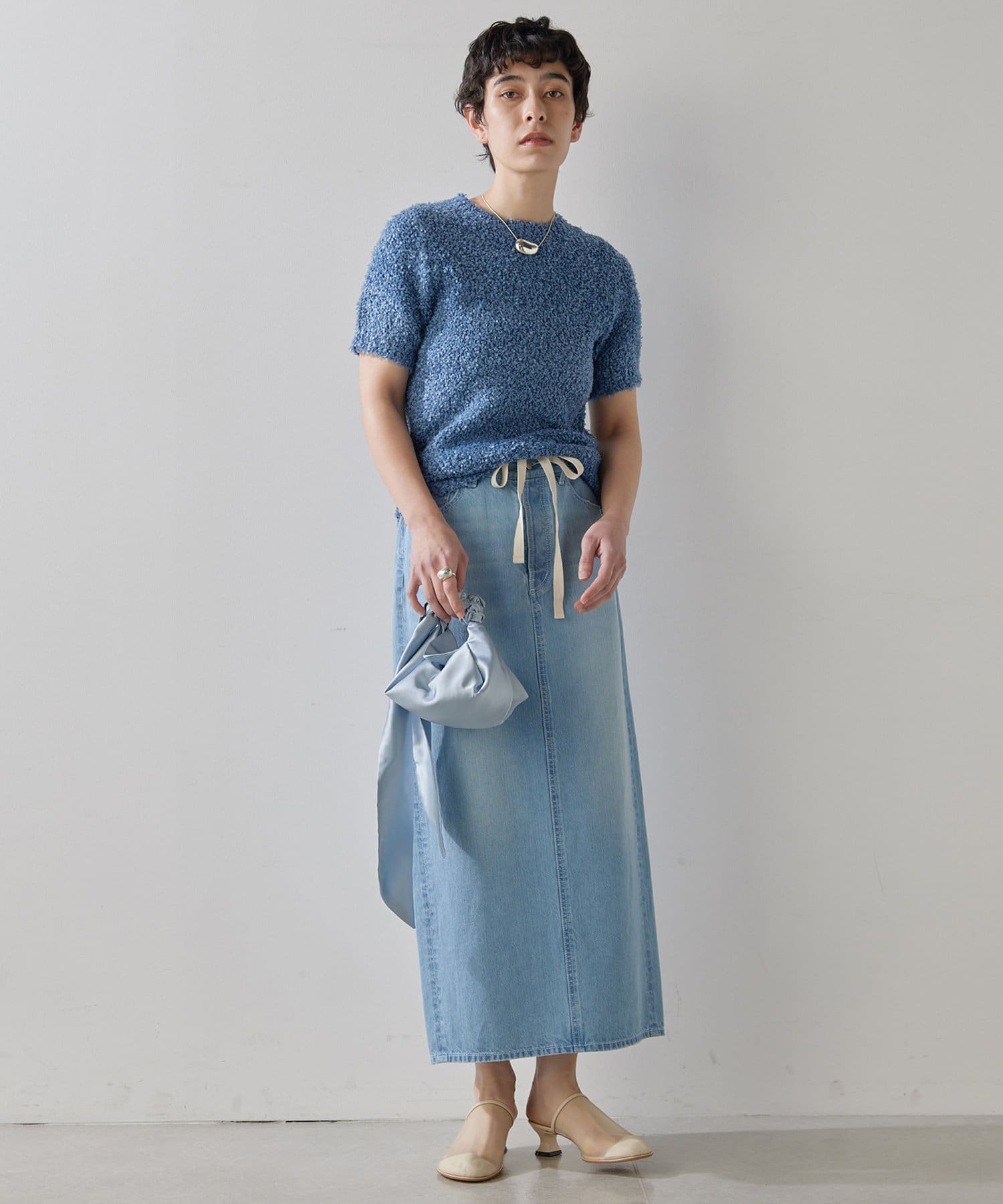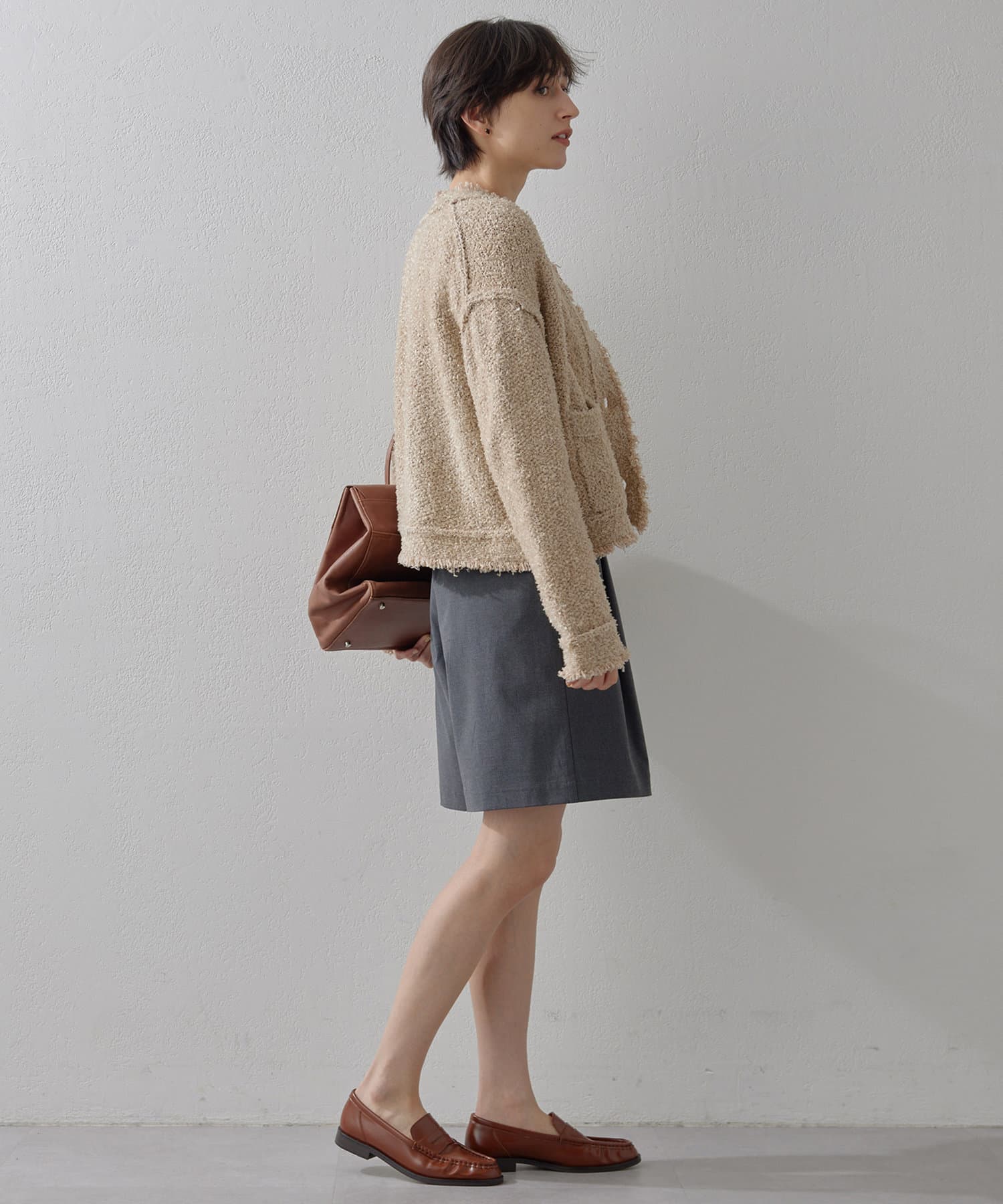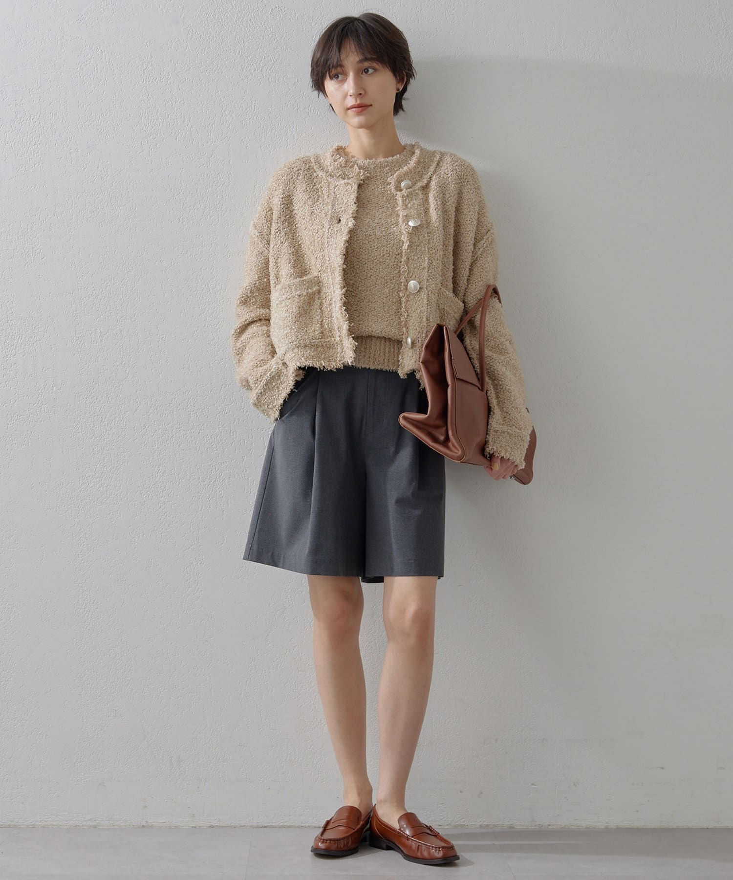 ツイードライクな表情が魅力的な、大人の半袖ニット