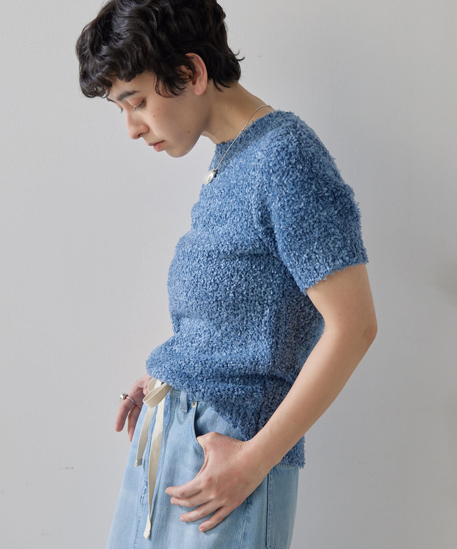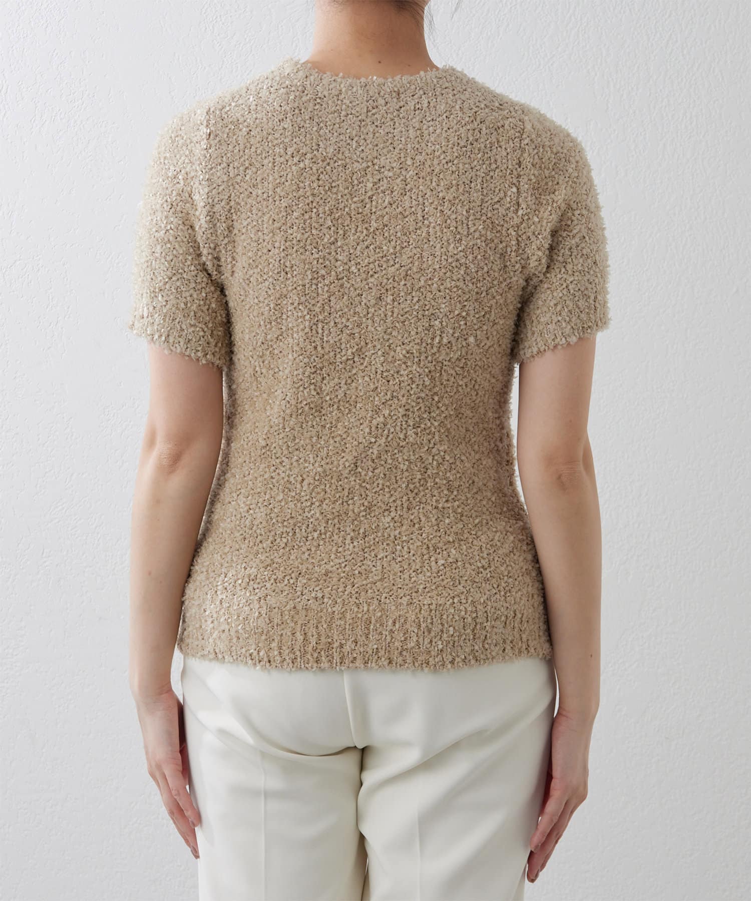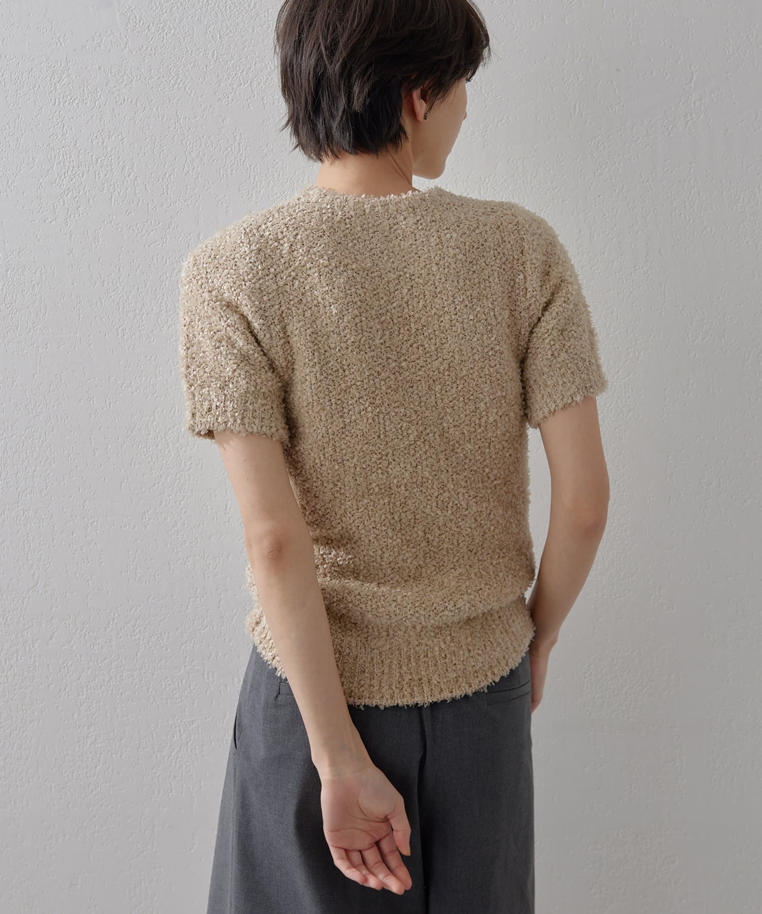 ■ファンシーヤーンが表情豊かな半袖ニットプルオーバー。