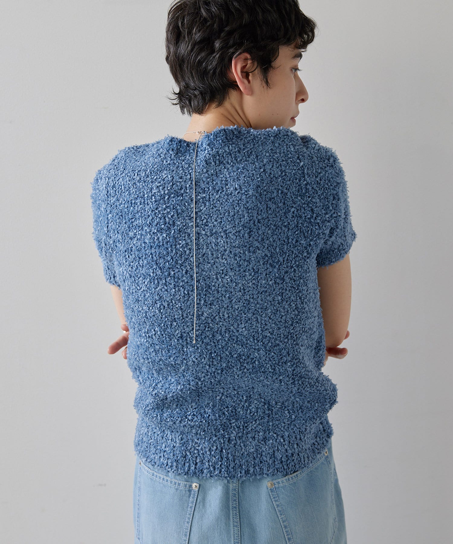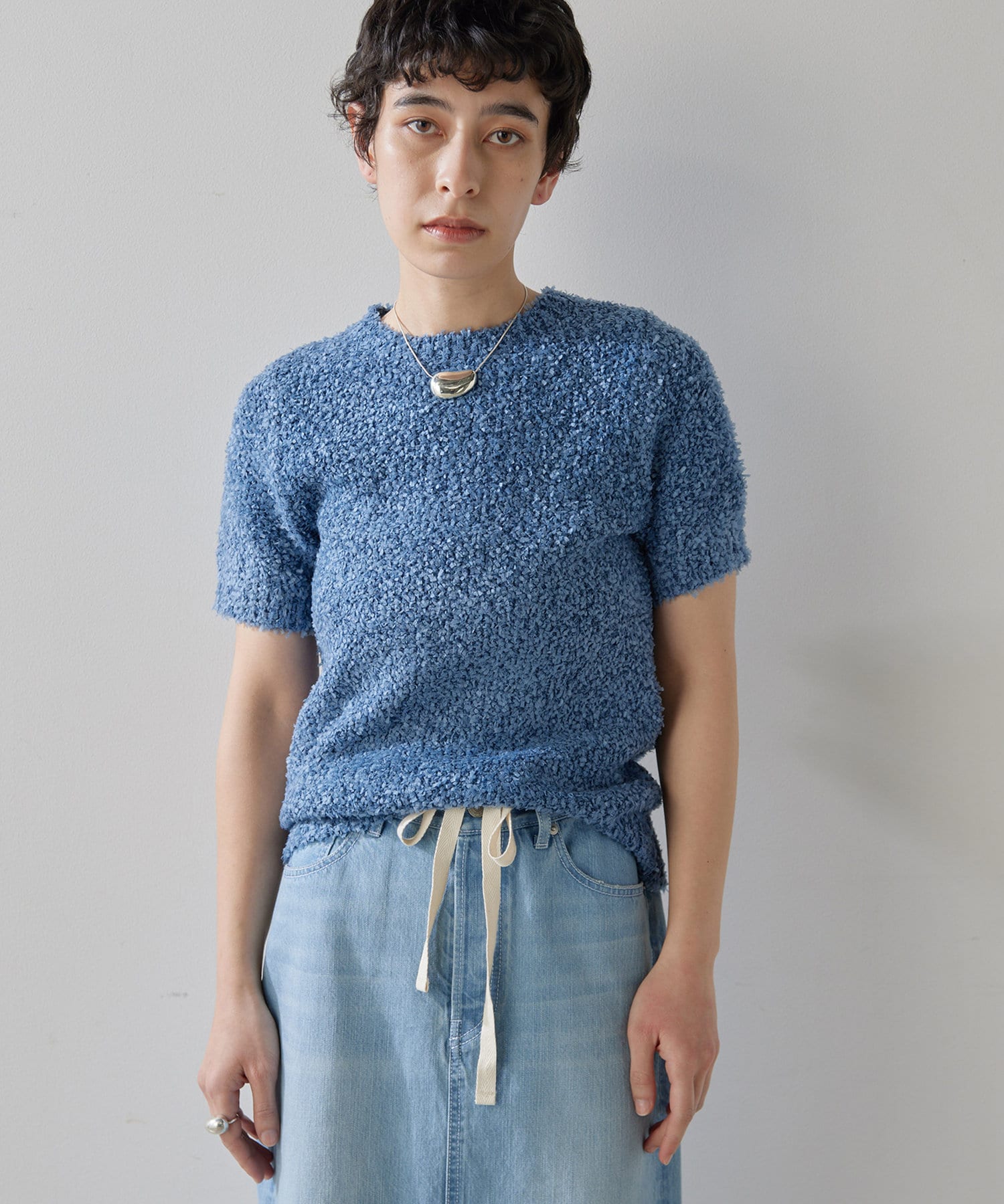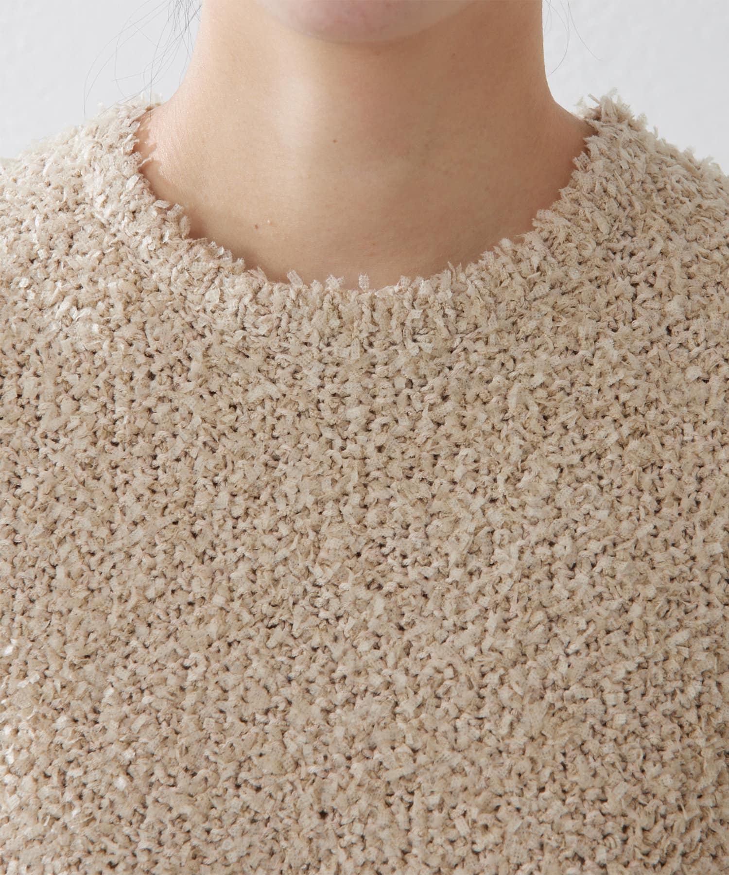 ■ファンシーヤーンが表情豊かな半袖ニットプルオーバー。