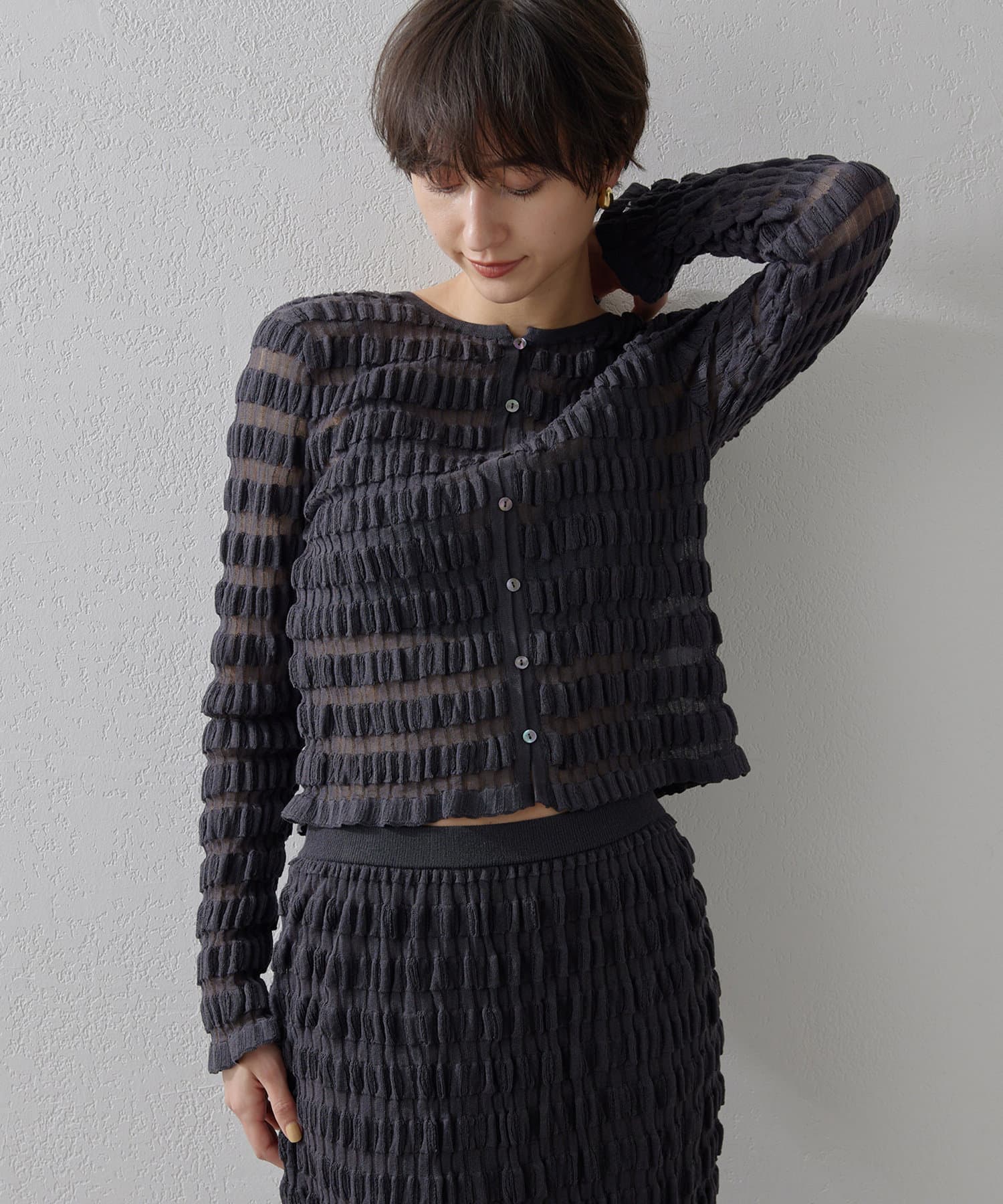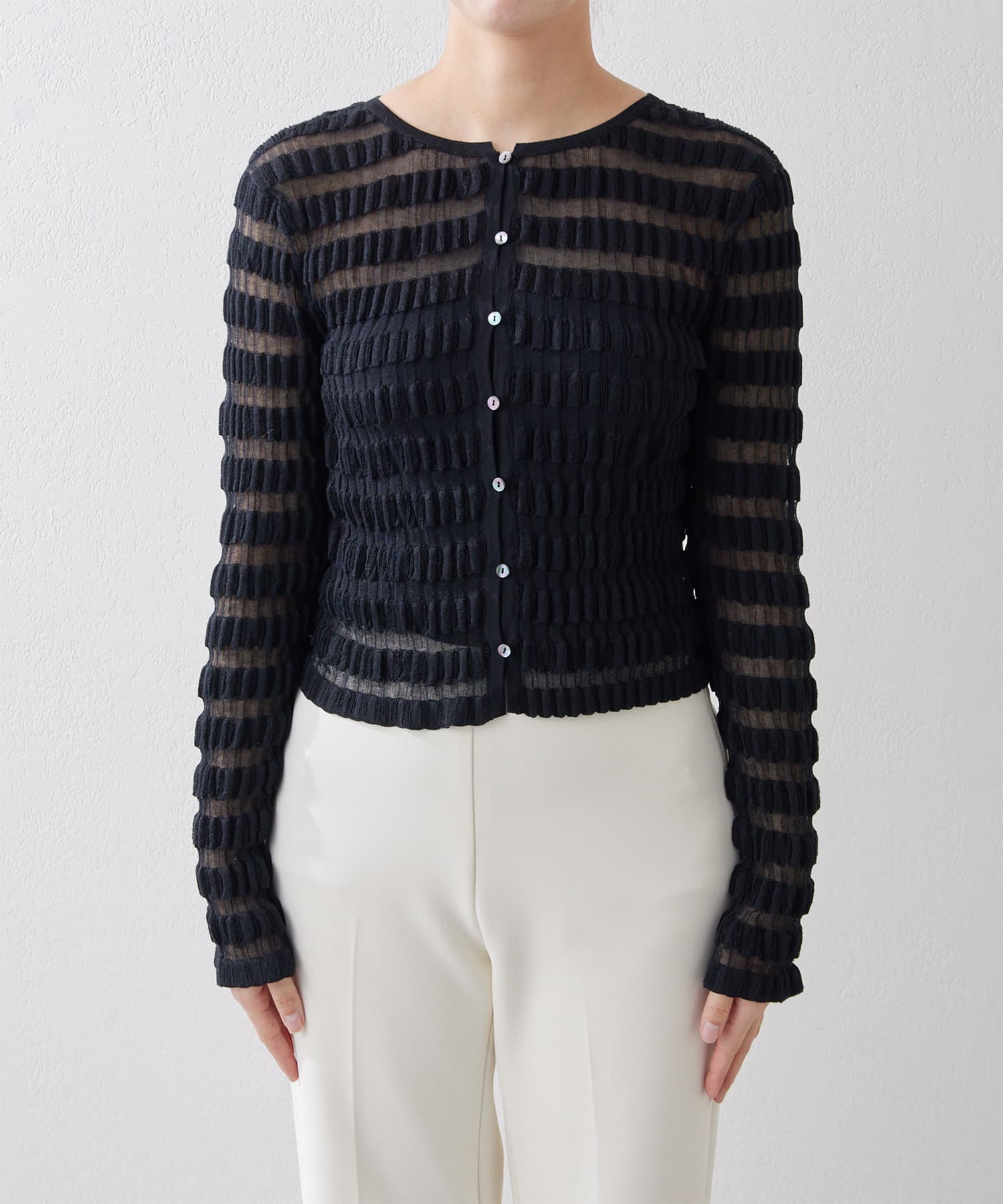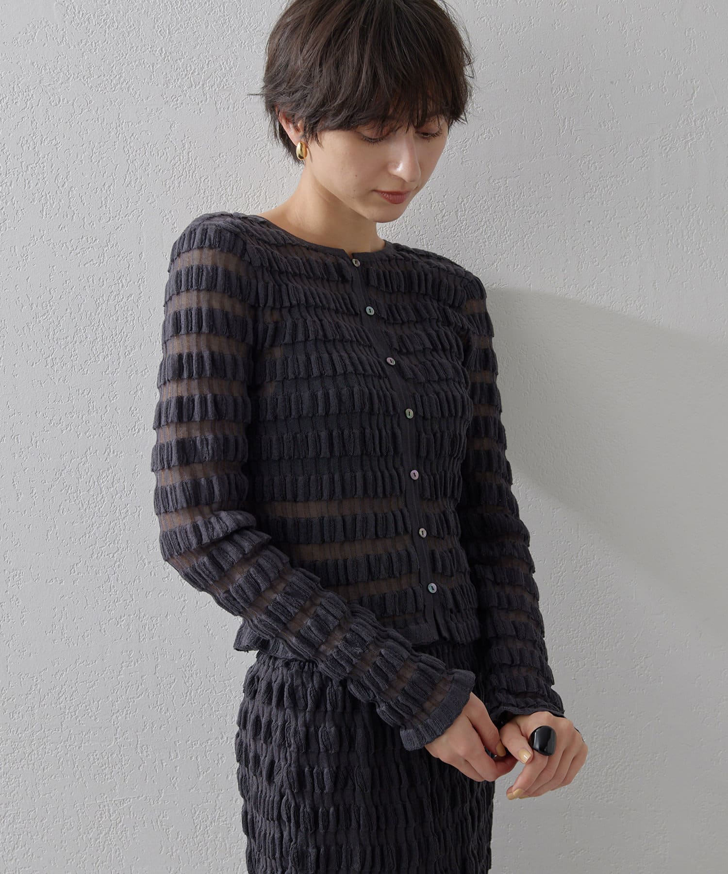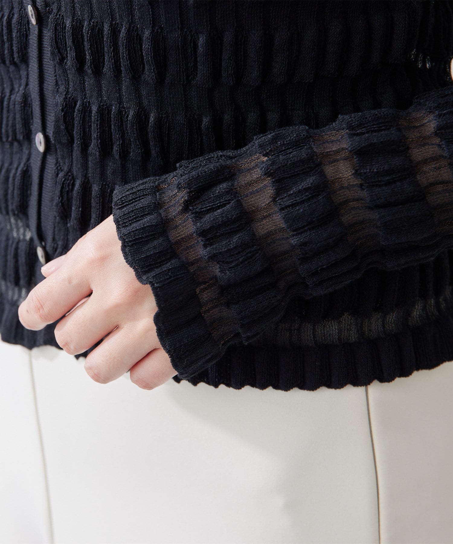 ニットの表情がアクセントになる、透かし柄カーディガン