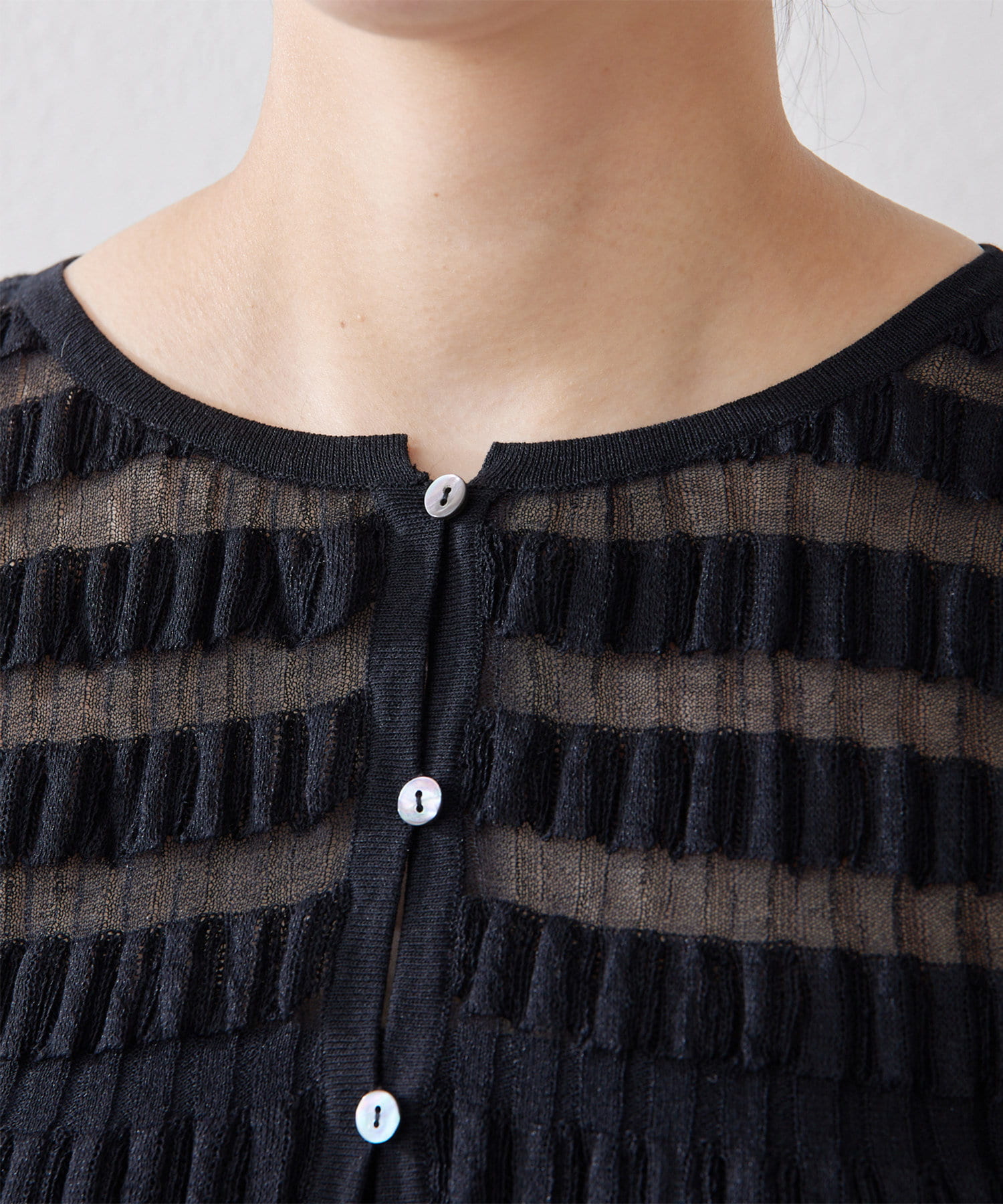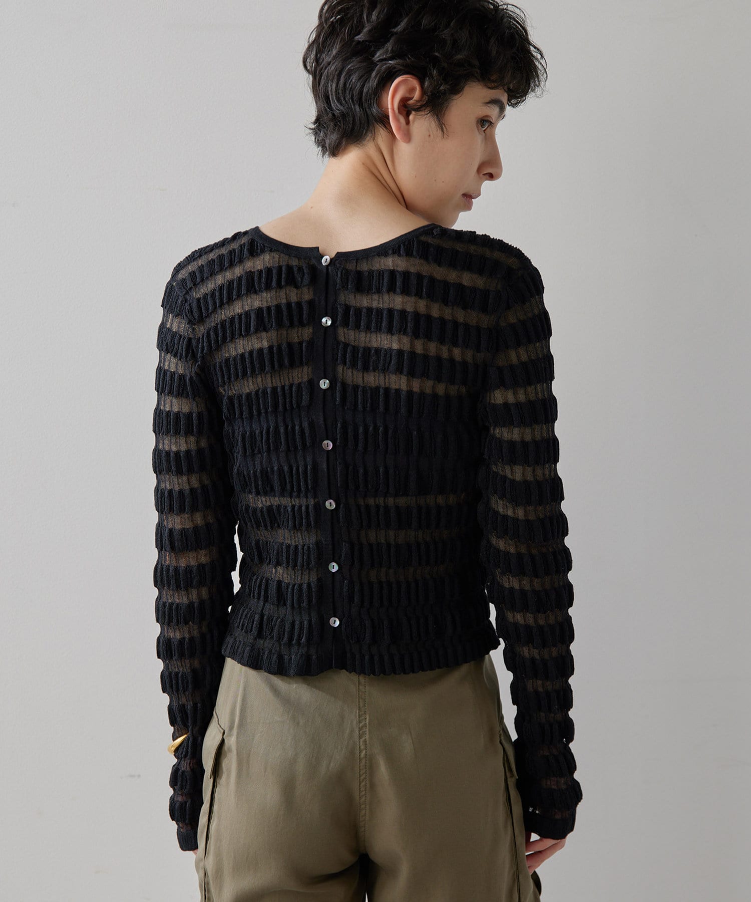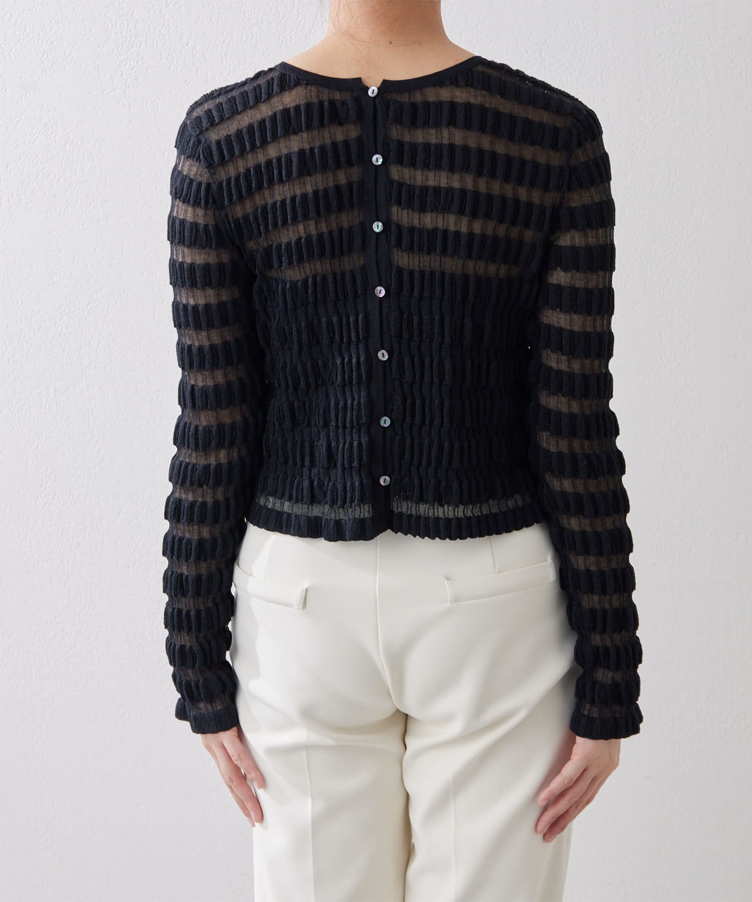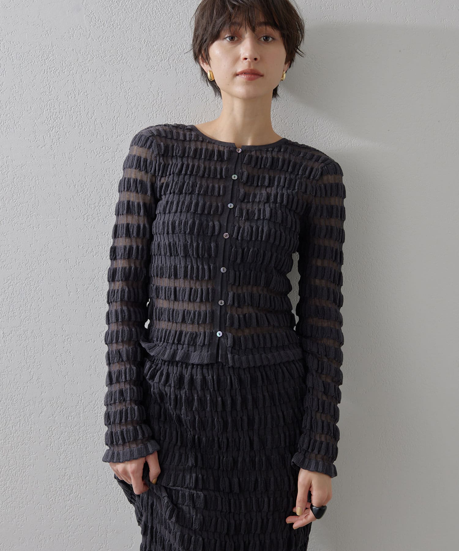 ニットの表情がアクセントになる、透かし柄カーディガン