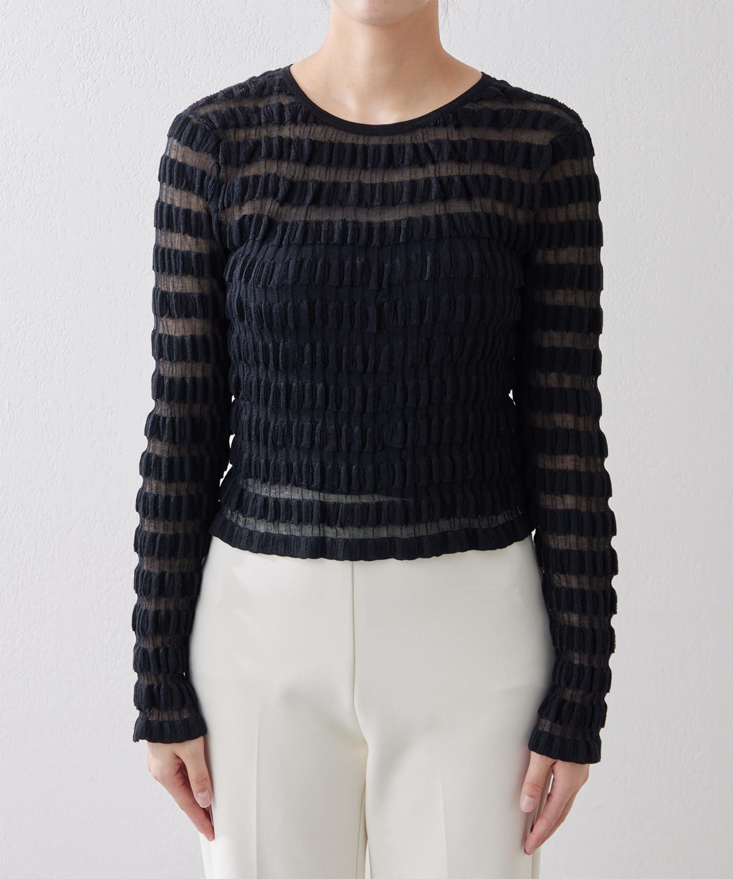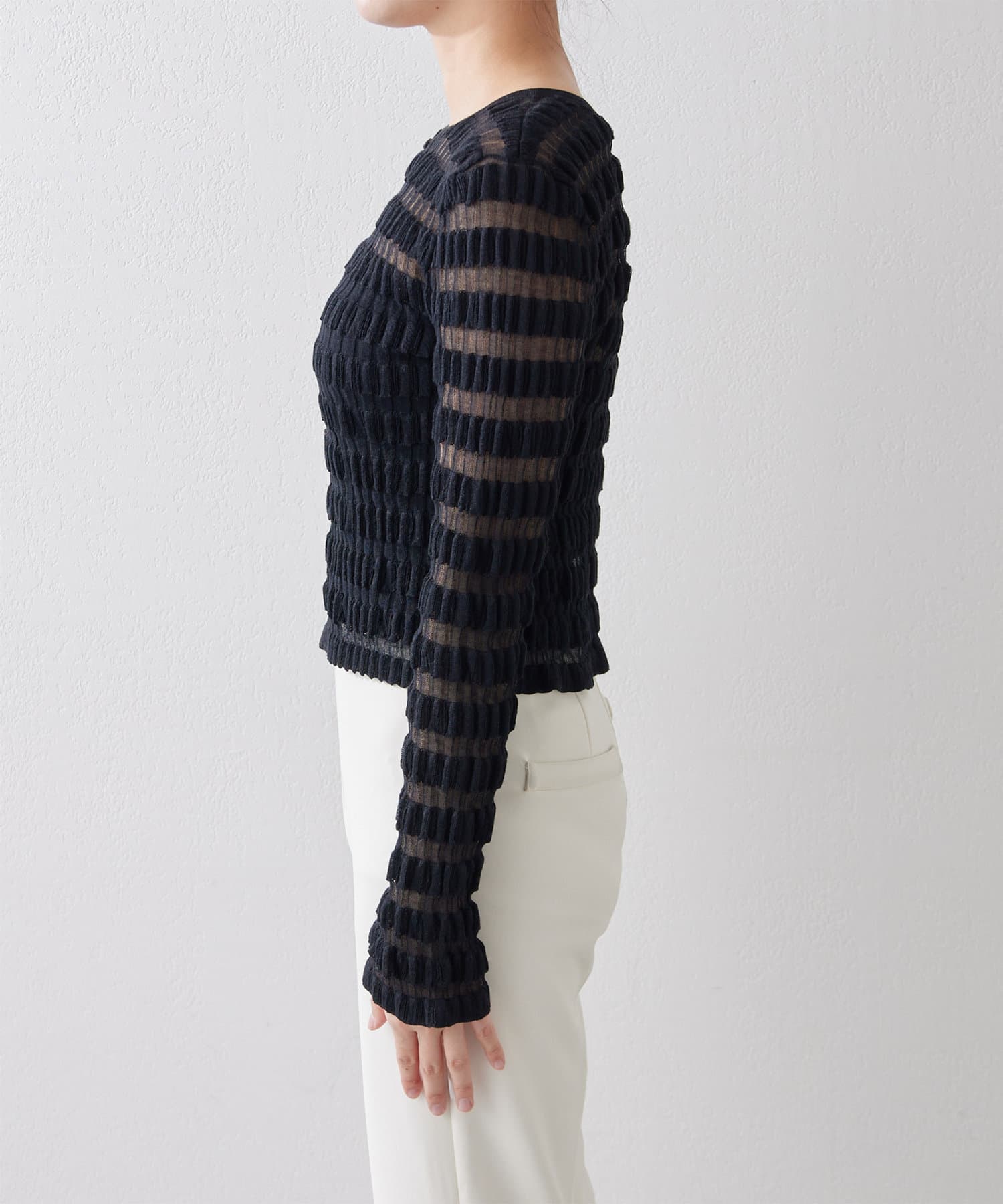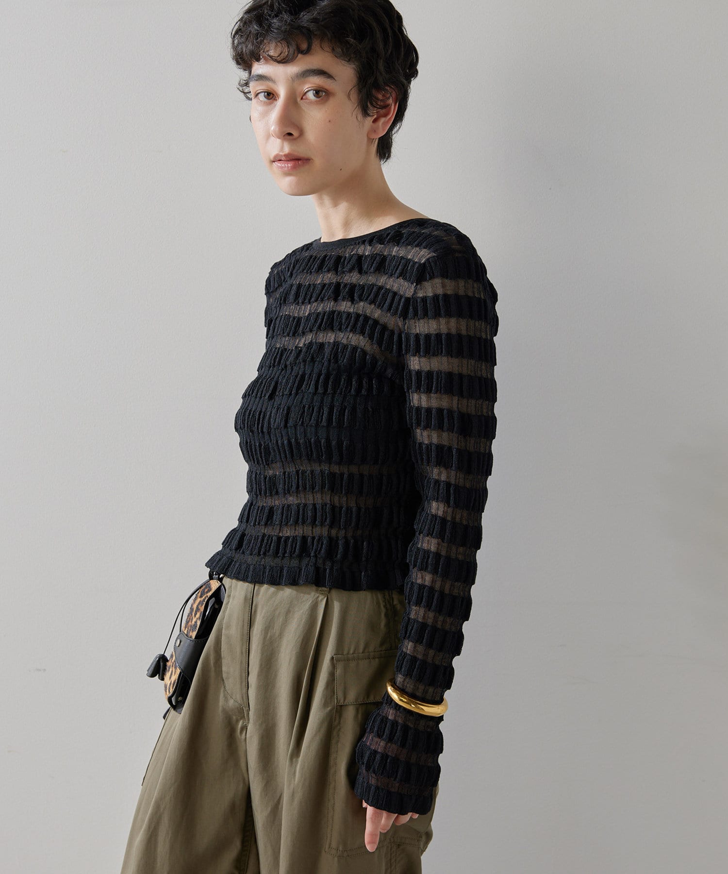 ■ドライで清涼感のあるニットの風合いが心地よい一枚。