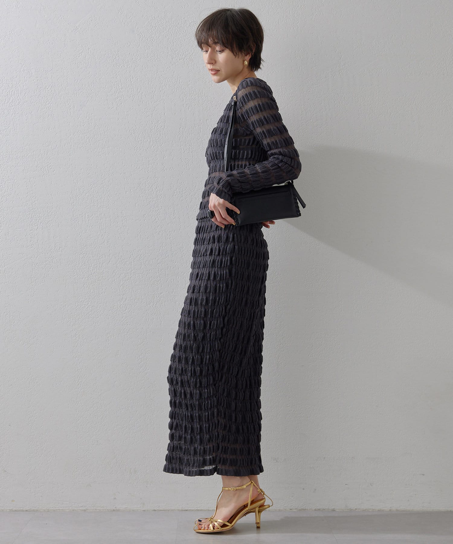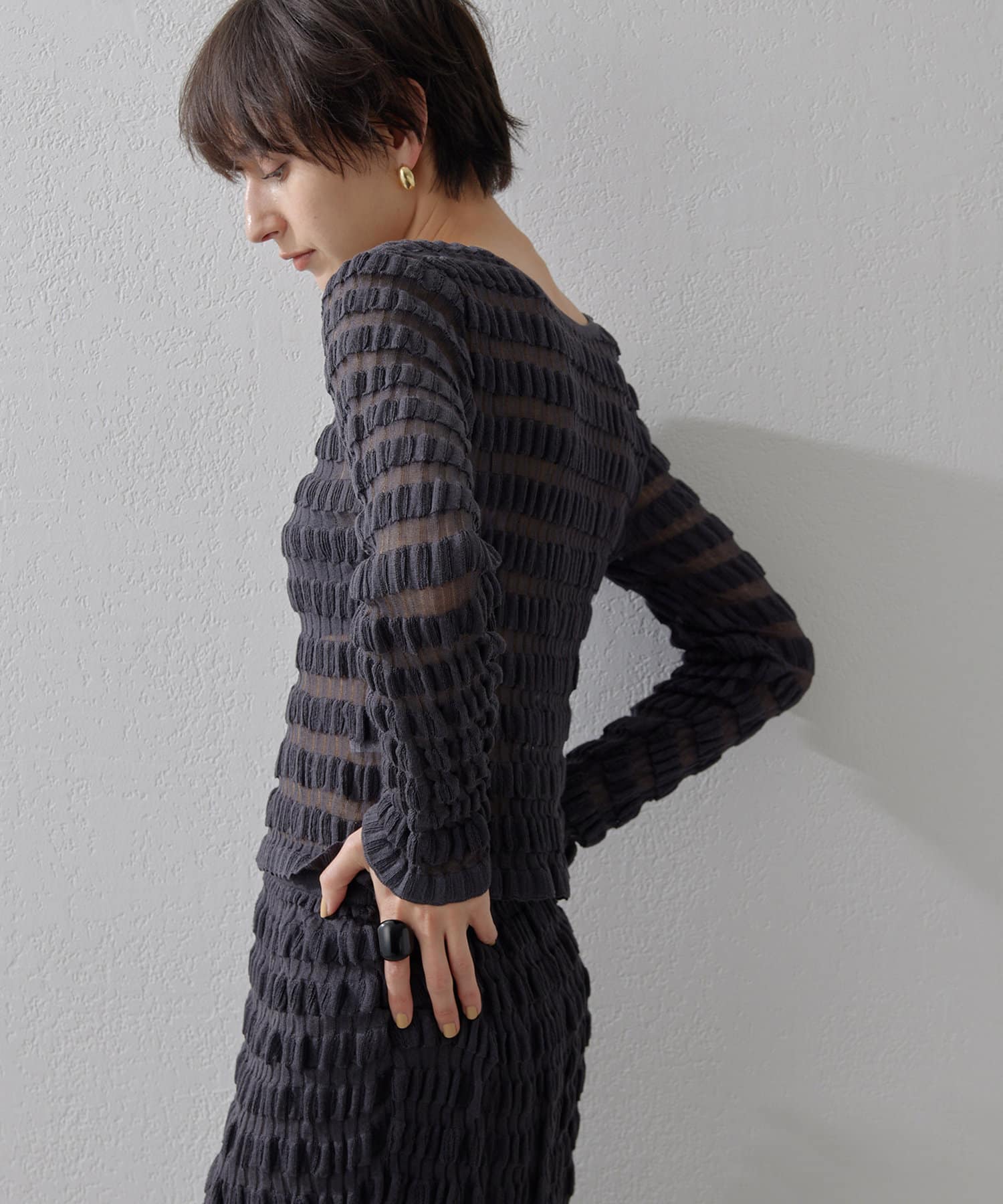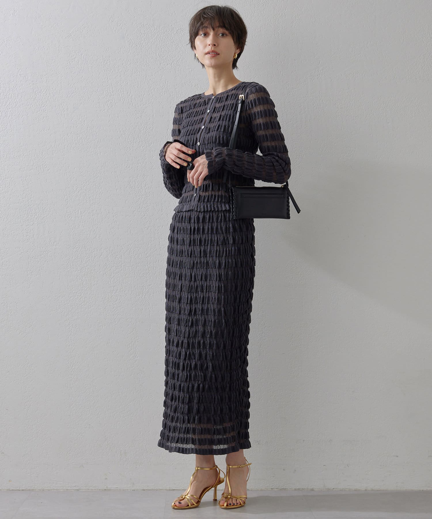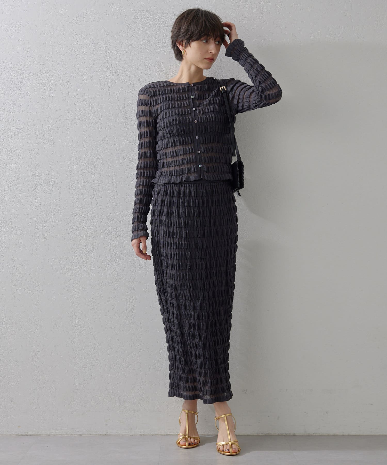 ■同素材のシャドーボーダーニットスカート(ブランド品番:WGZ1051101A0004)とのセットアップもおすすめ。