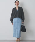 ■肩がずり落ちずにVネックのシャープ感をキープしてくれるネックライン。