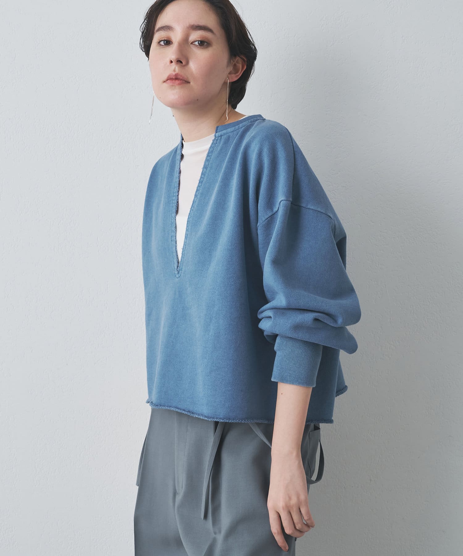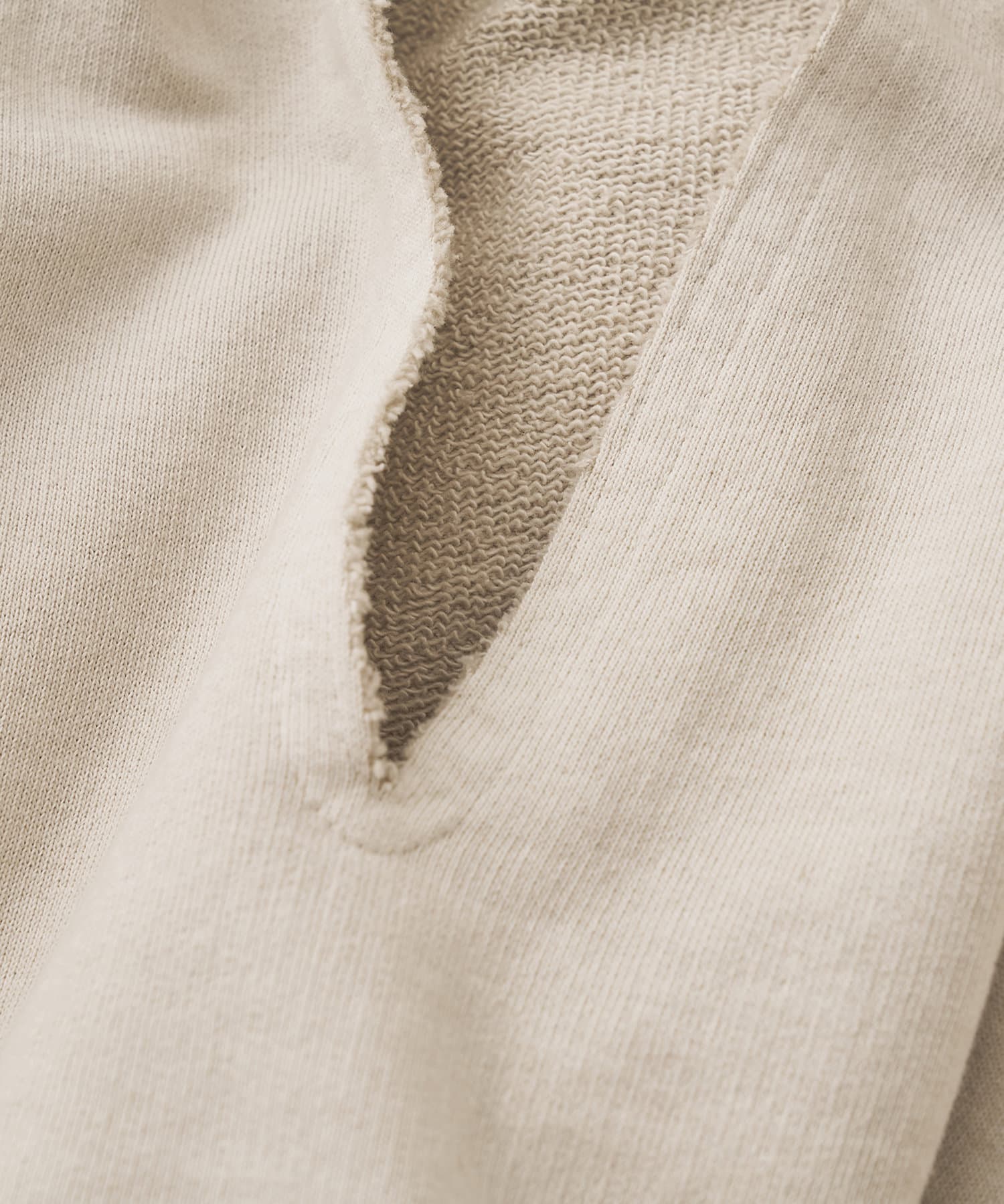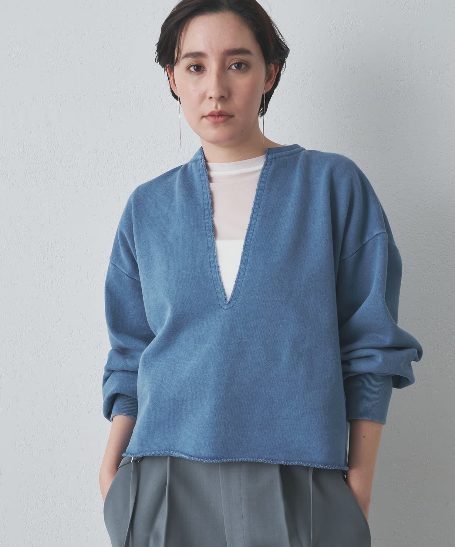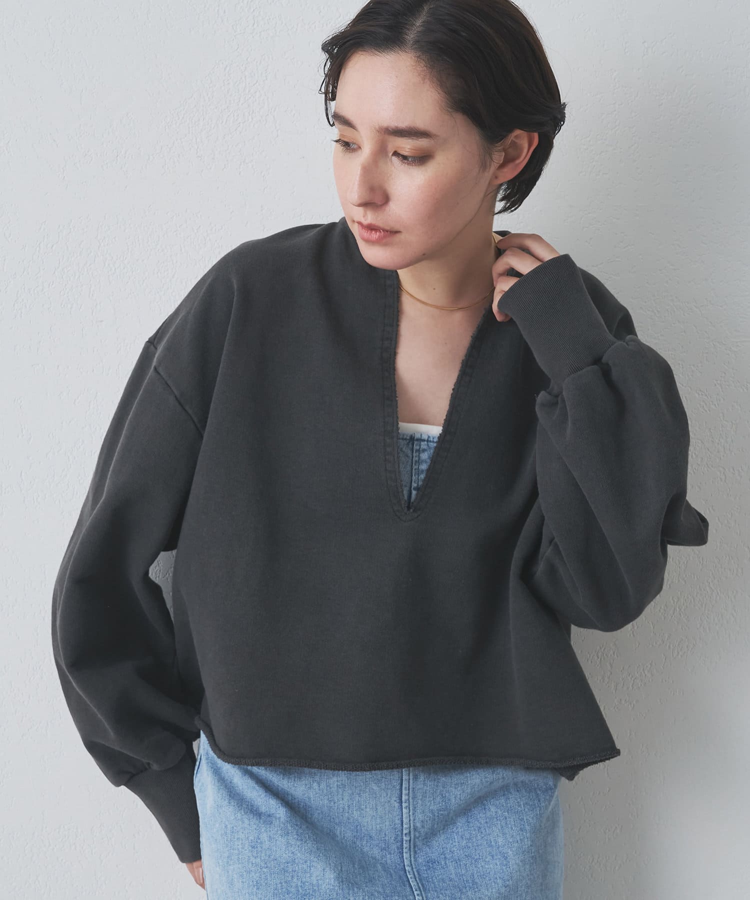 ヴィンテージライクにアップデートした、深Vネックスウェット