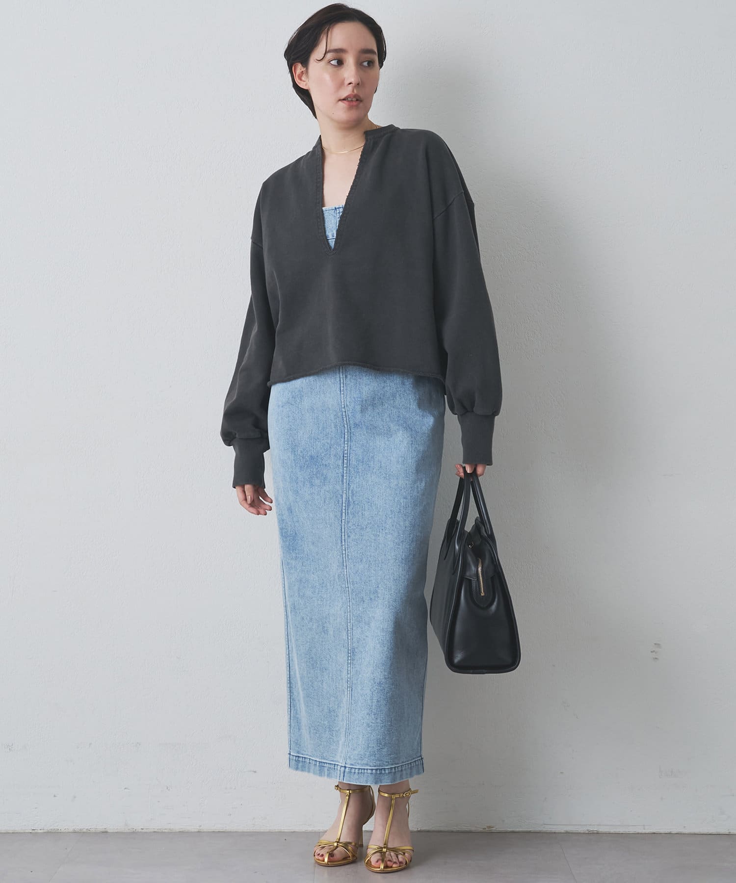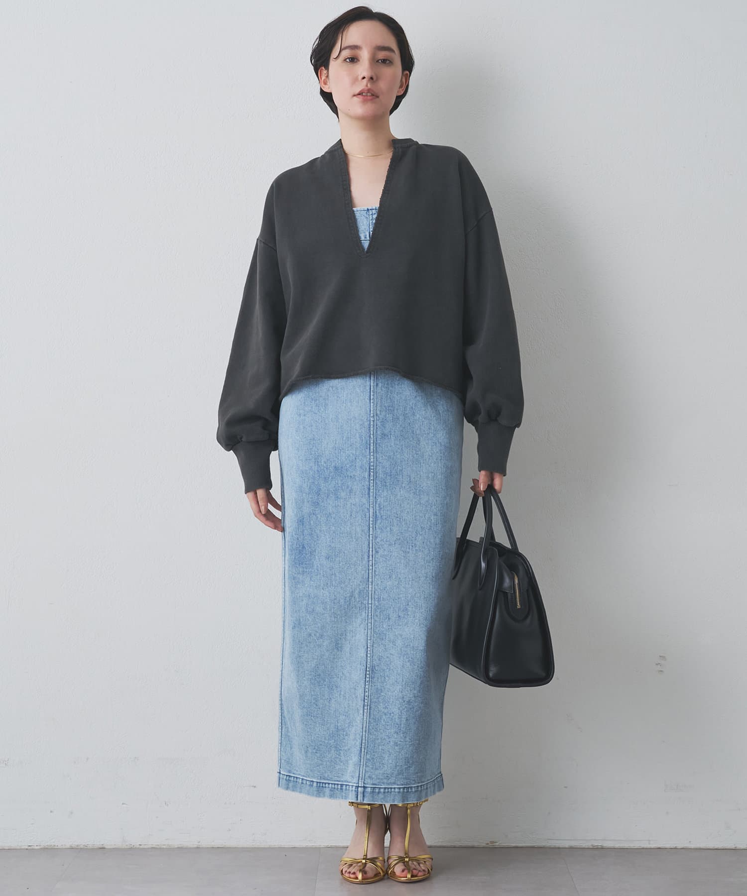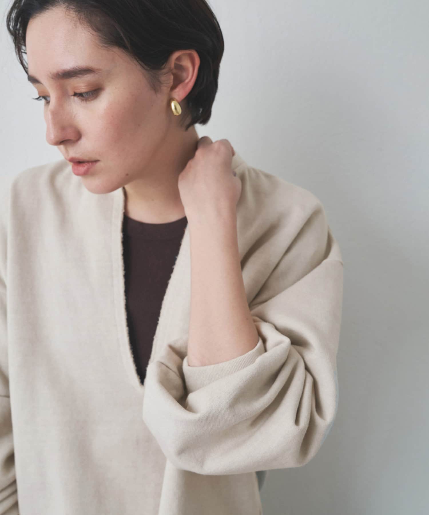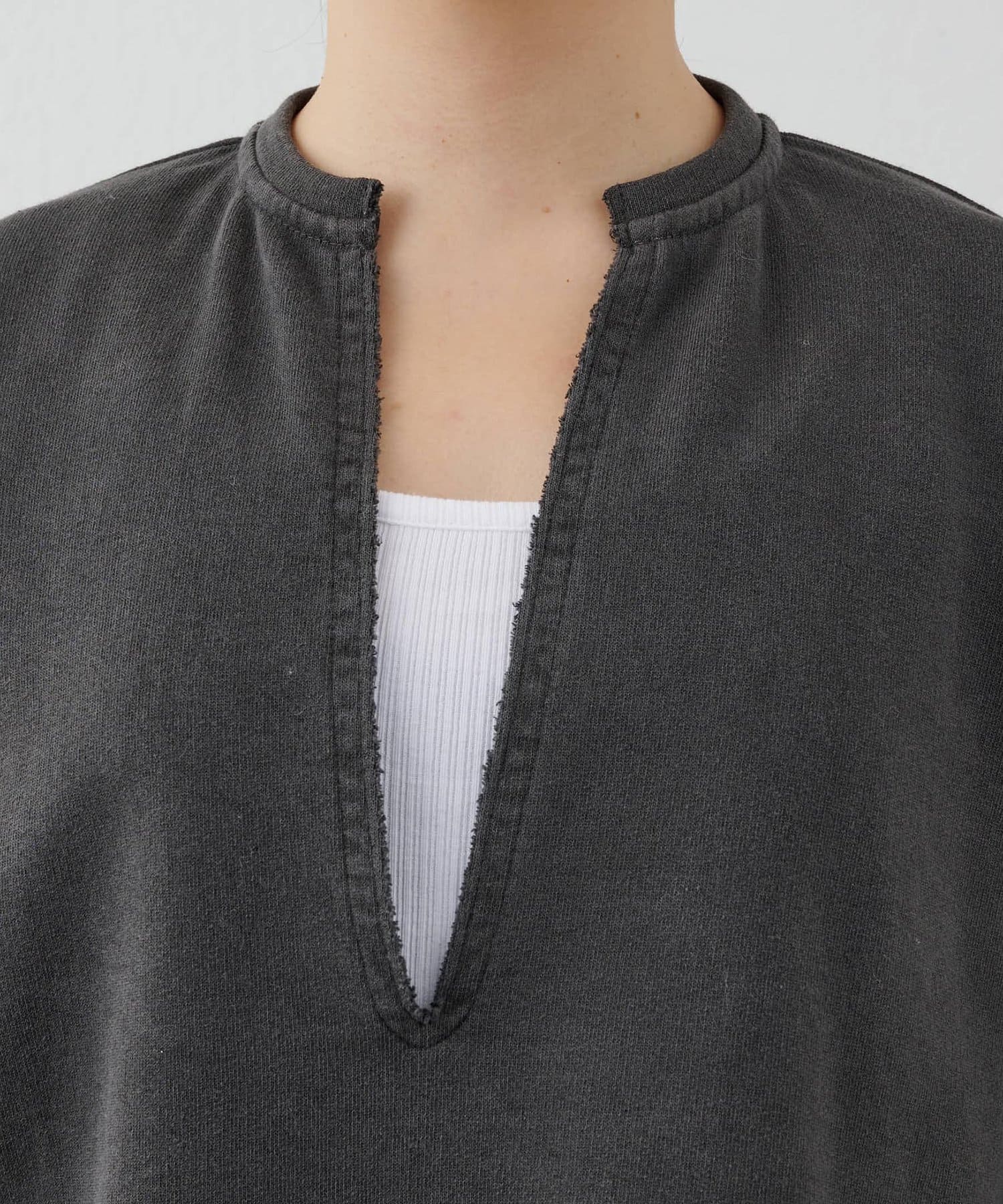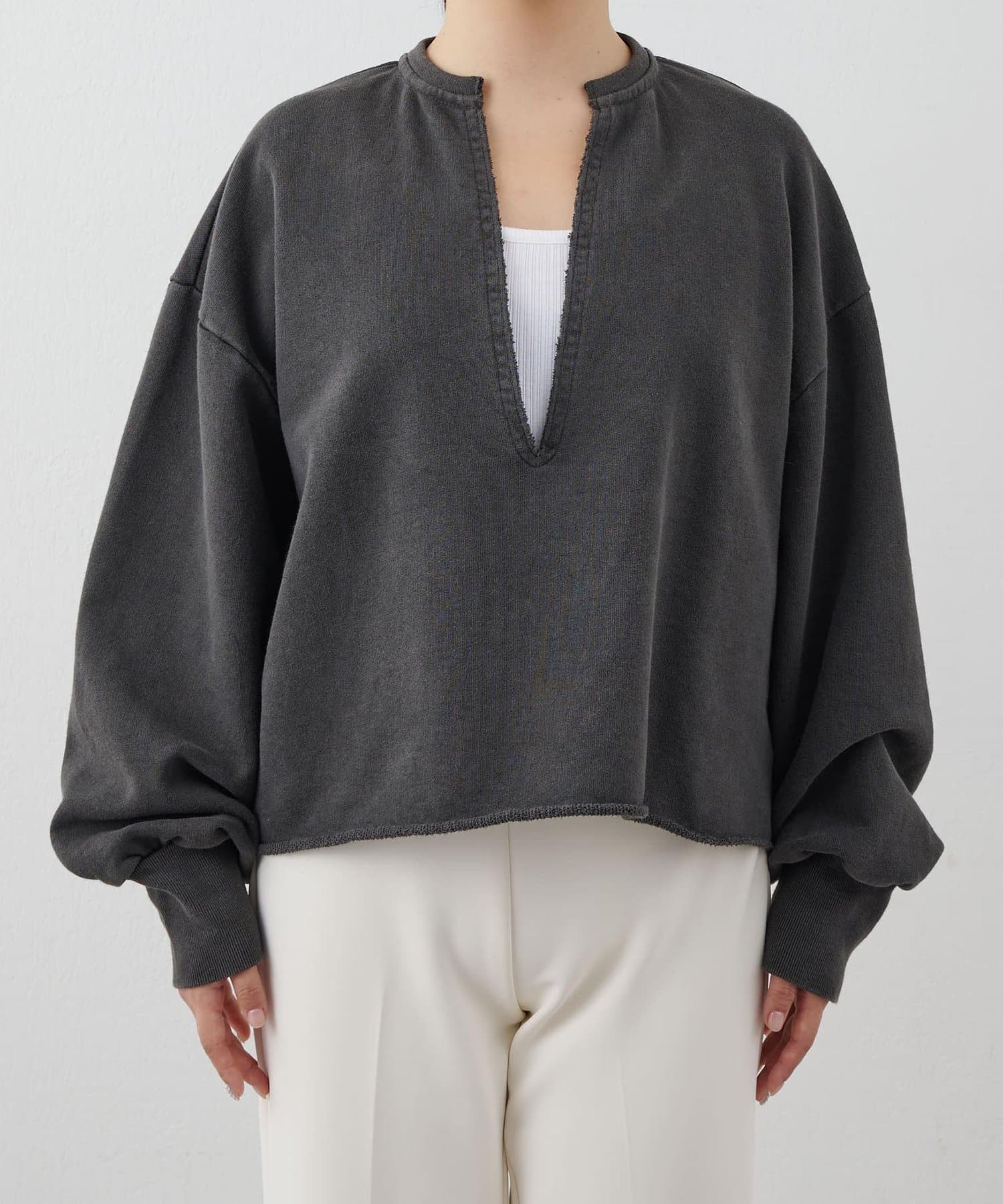 ヴィンテージライクにアップデートした、深Vネックスウェット