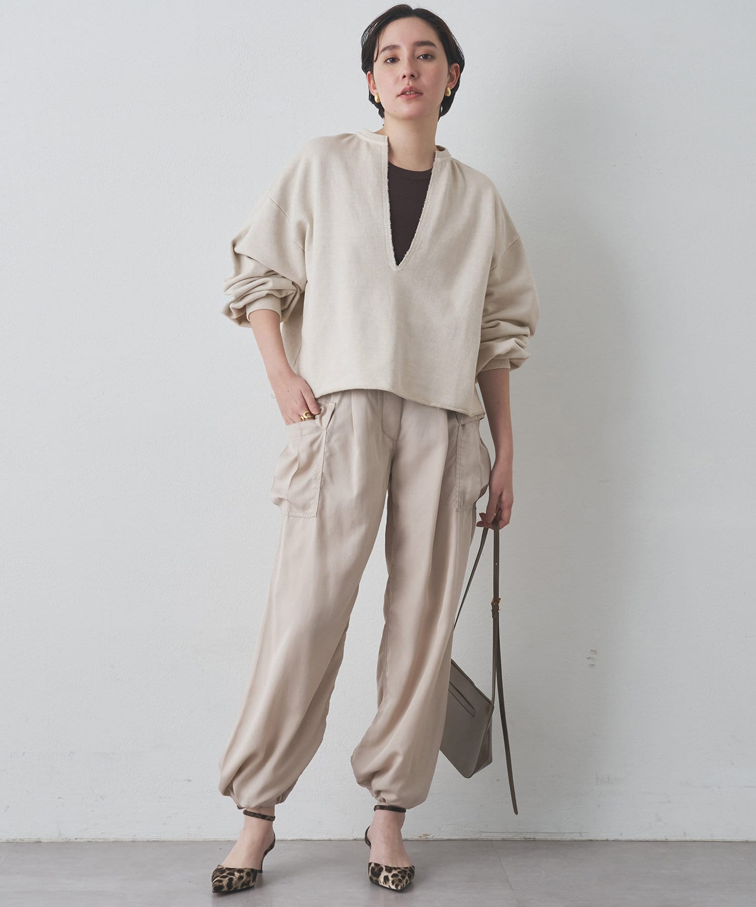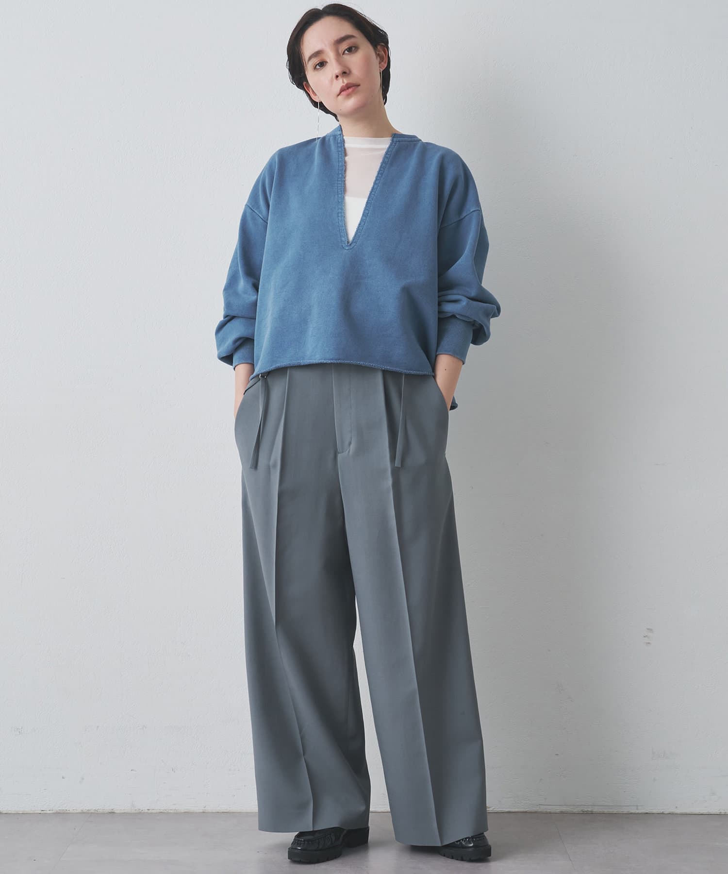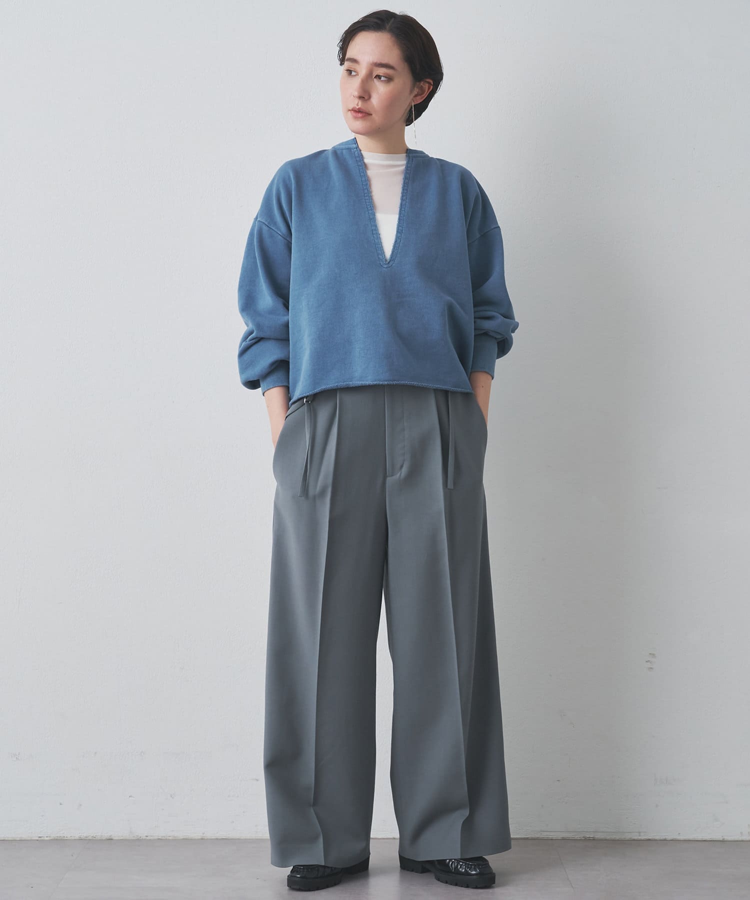 ■深めのVネックがポイントのリラクシーなスウェットプルオーバー。