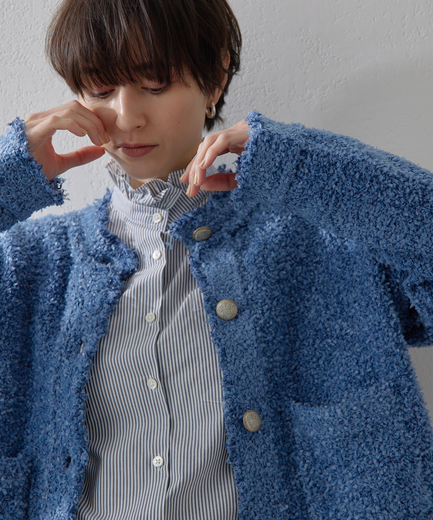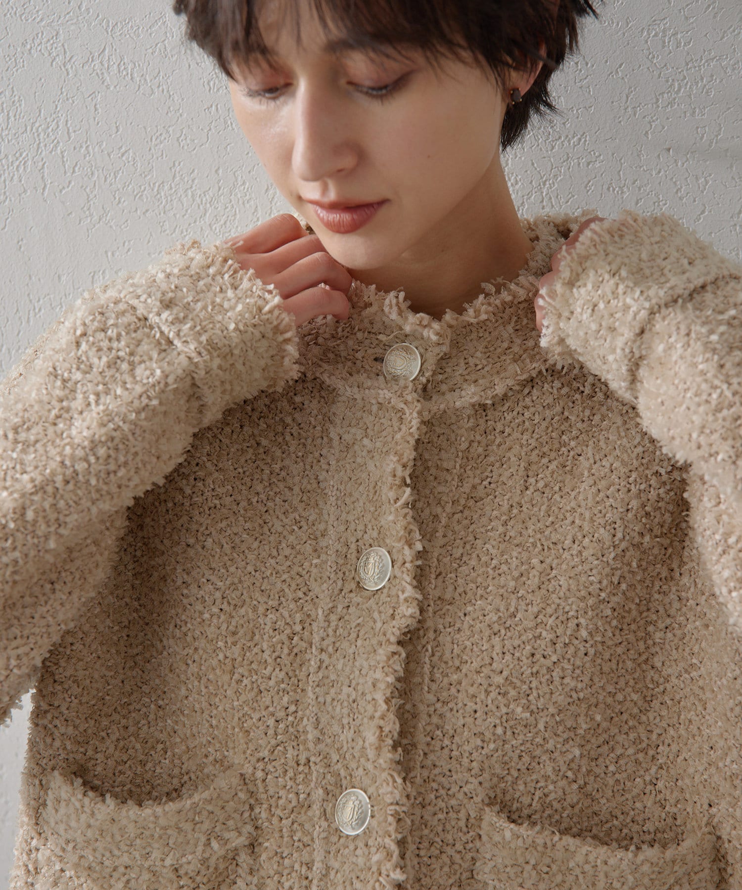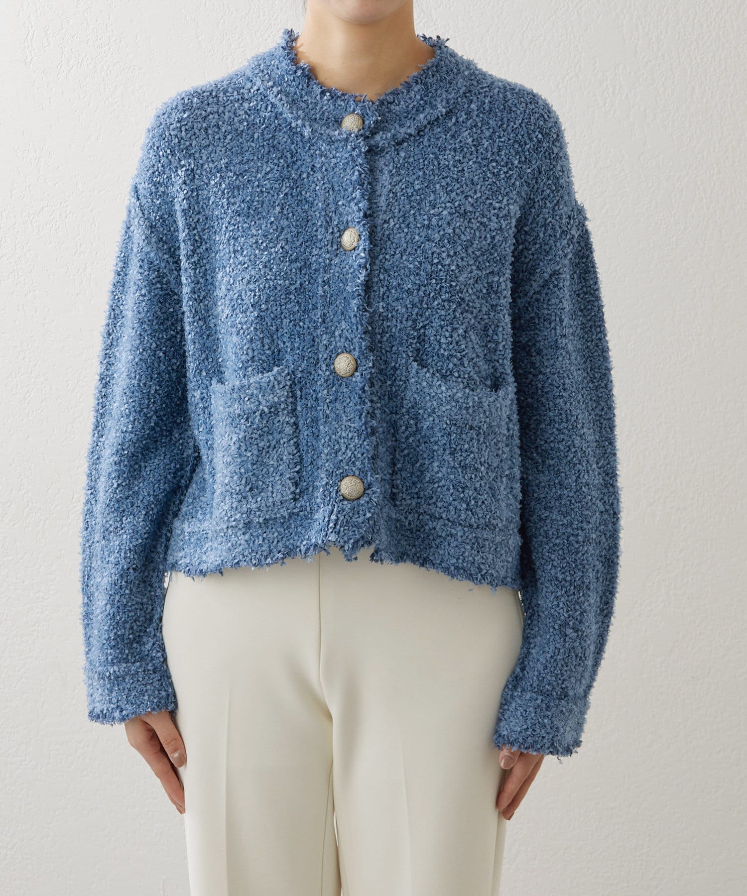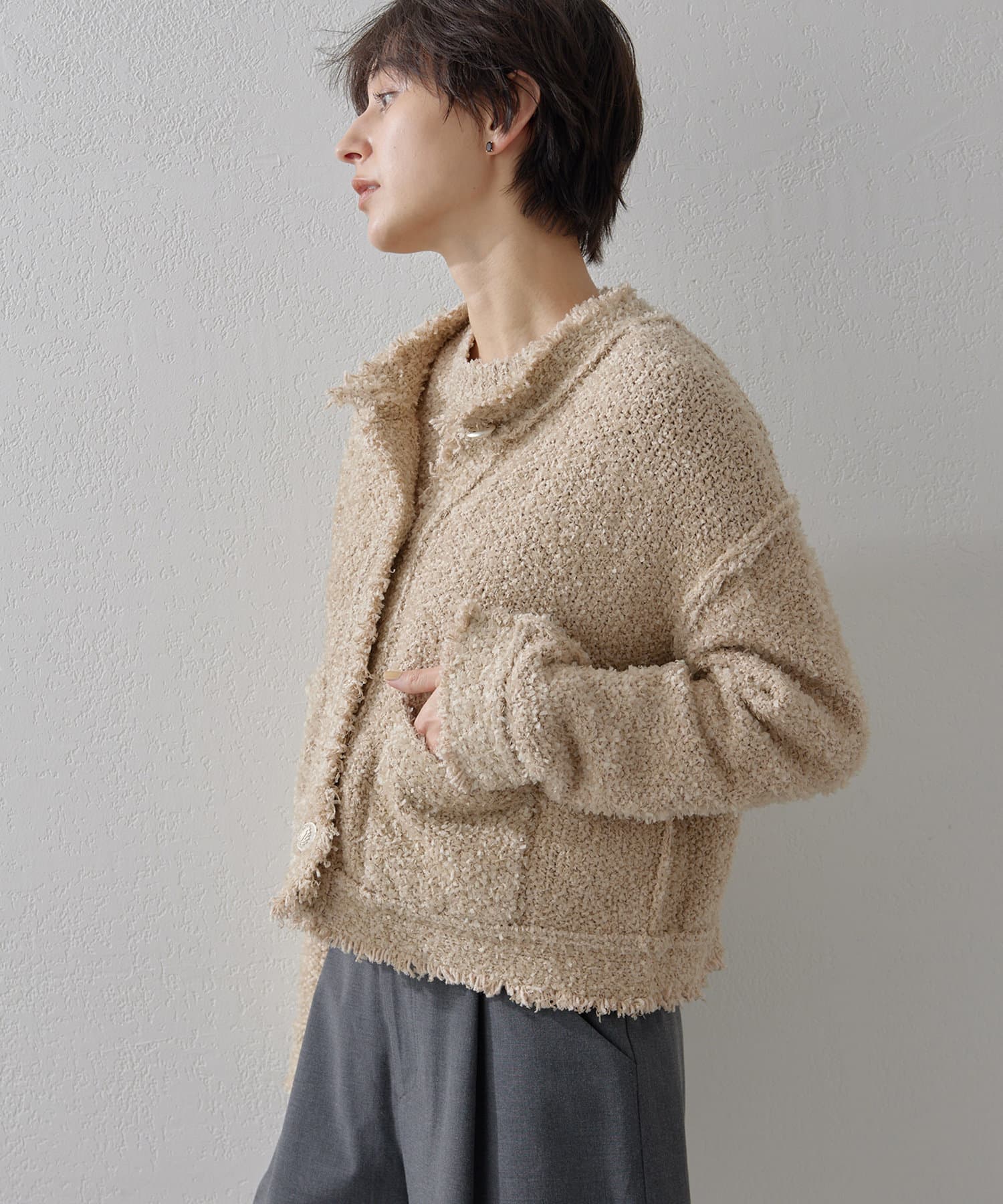 ■ニットならではのファンシーンヤーンを使用したニットジャケット。