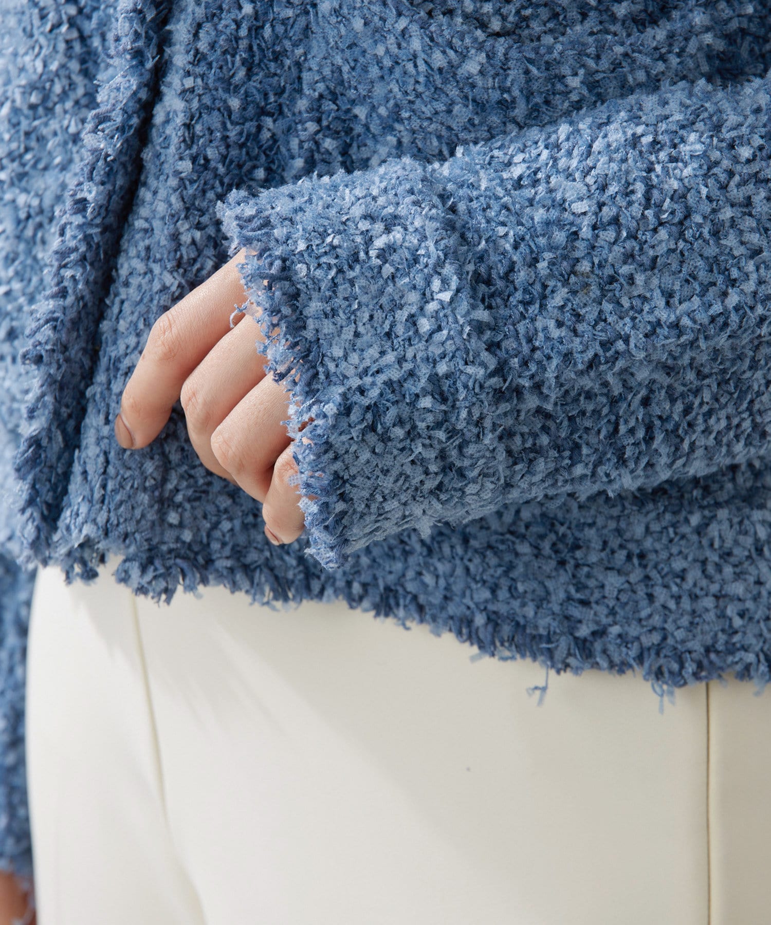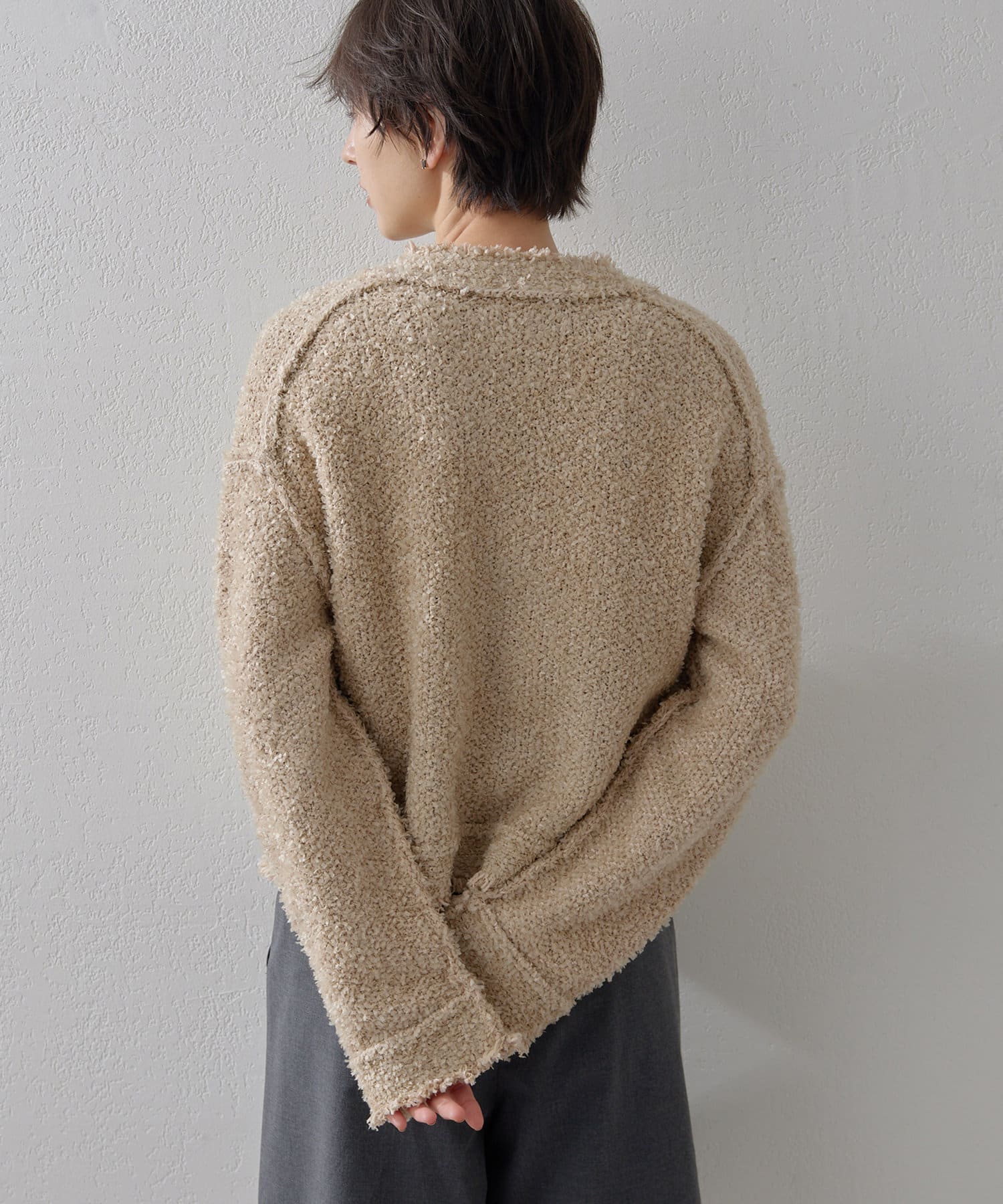 ■表情が出るように糸を組み合わせた編地にこだわった一着。